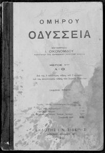 Παρουσίαση περιεχομένου: Σχολικό εγχειρίδιο για τις τρείς κατώτερες τάξεις Γυμνασίου και οι αντίστοιχες των λοιπών Σχολείων για το μάθημα των Αρχαίων Ελληνικών. Περιέχει τις ραψωδίες της Οδύσσειας και ερμηνευτικά, πραγματολογικά σχόλια, καθώς και γραμματικές παρατηρήσεις.