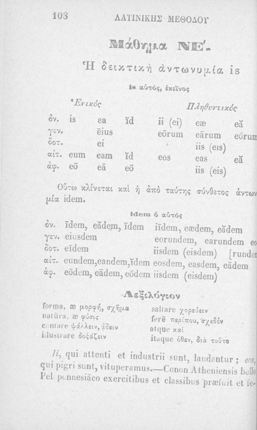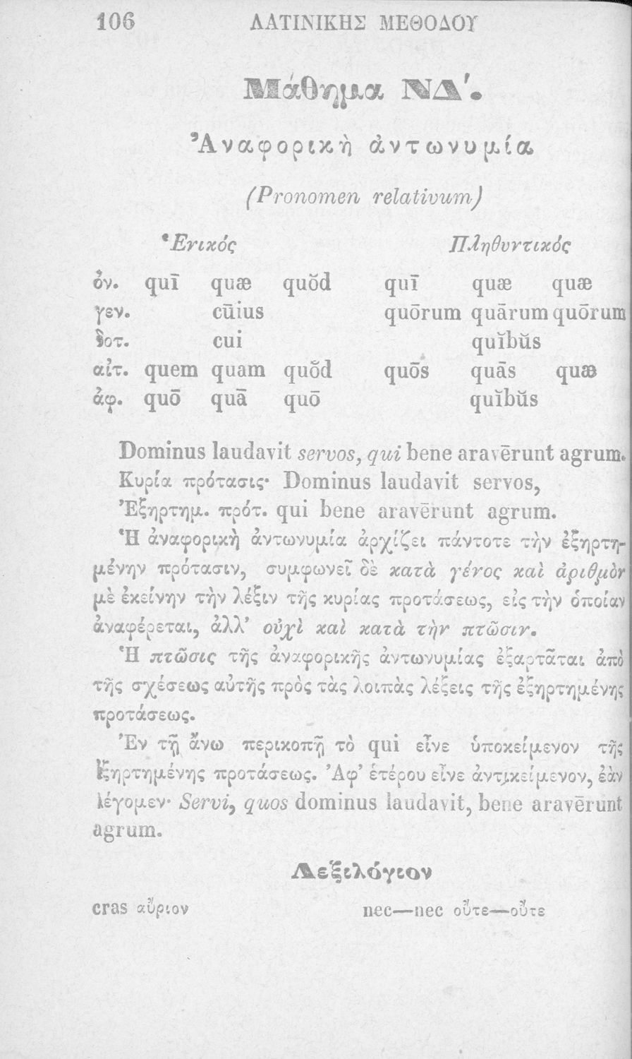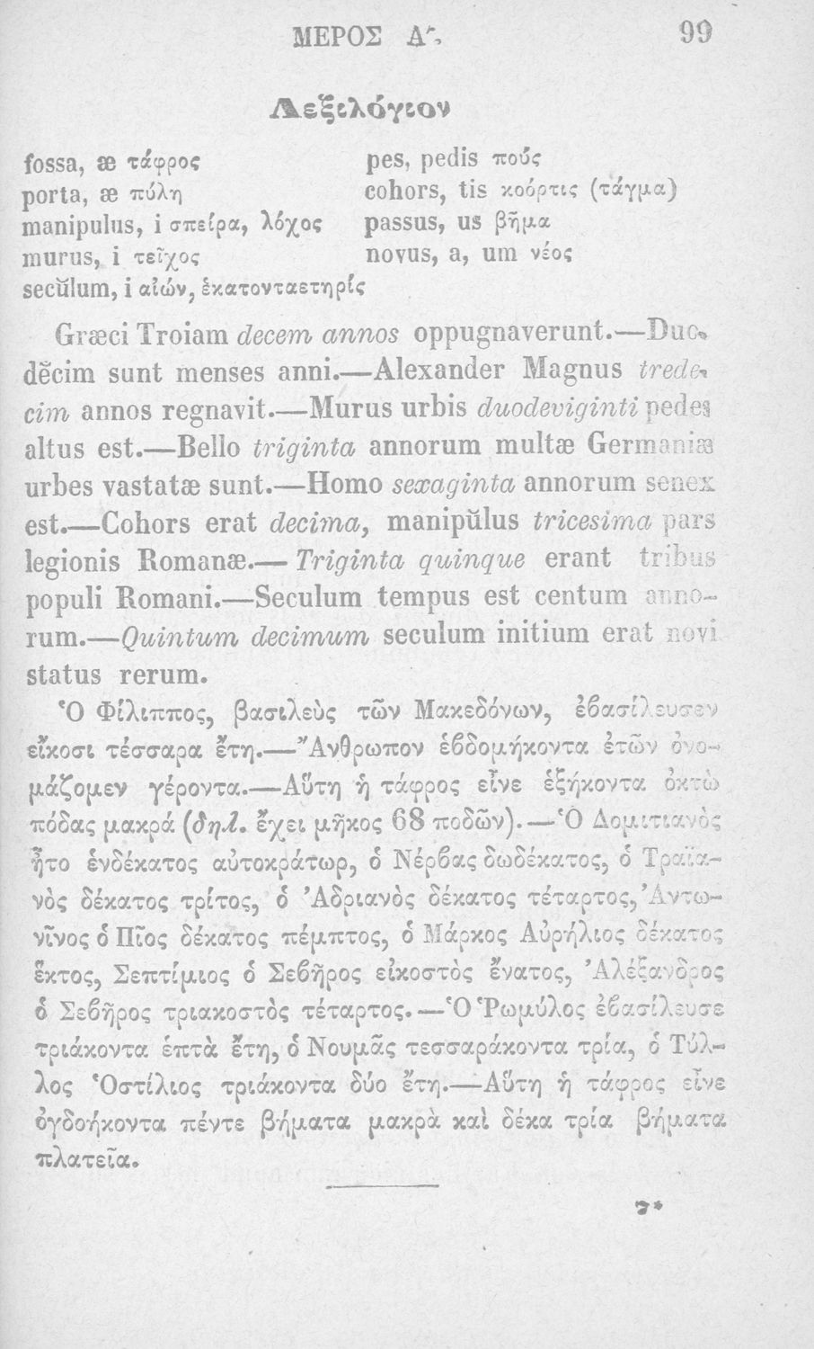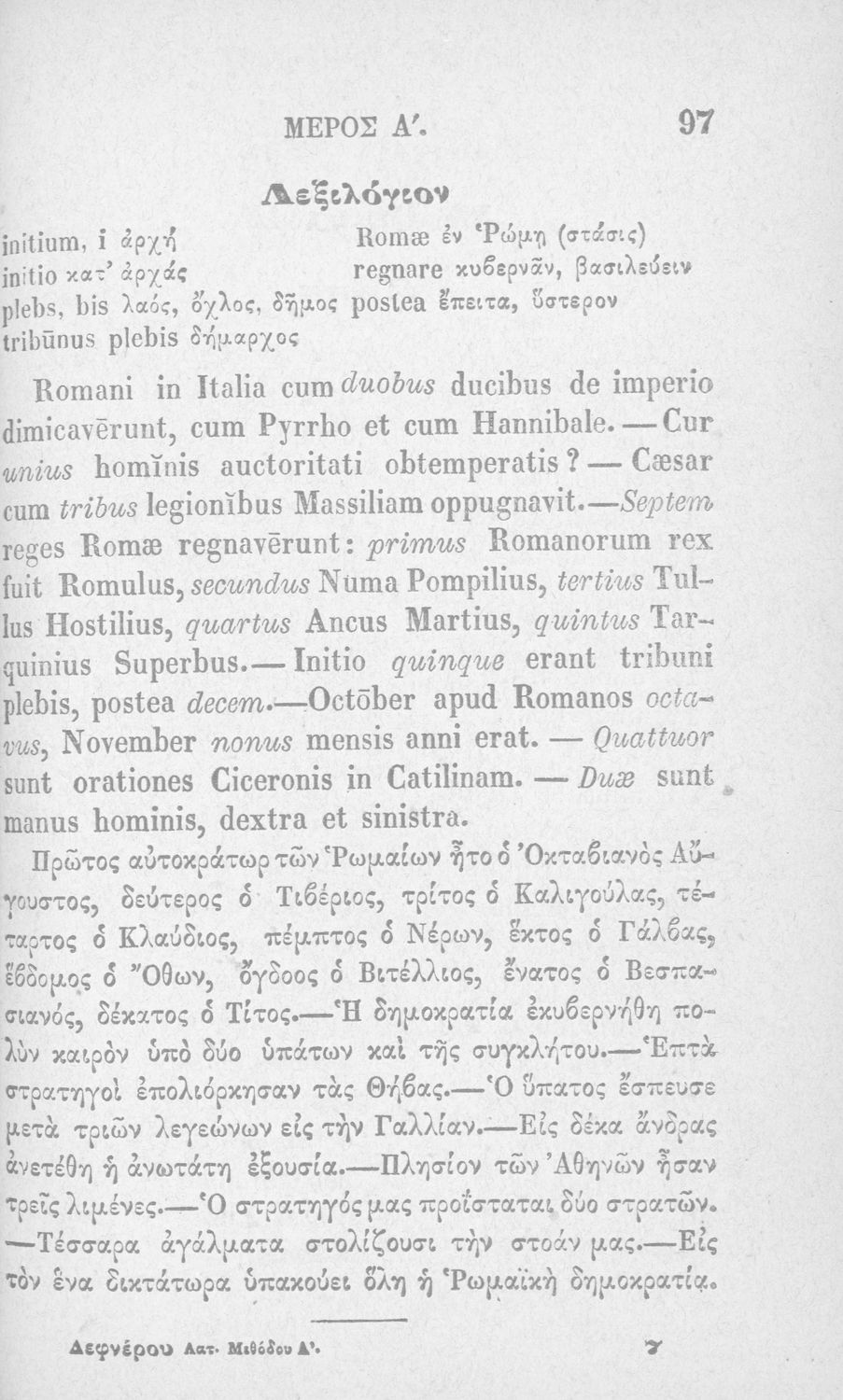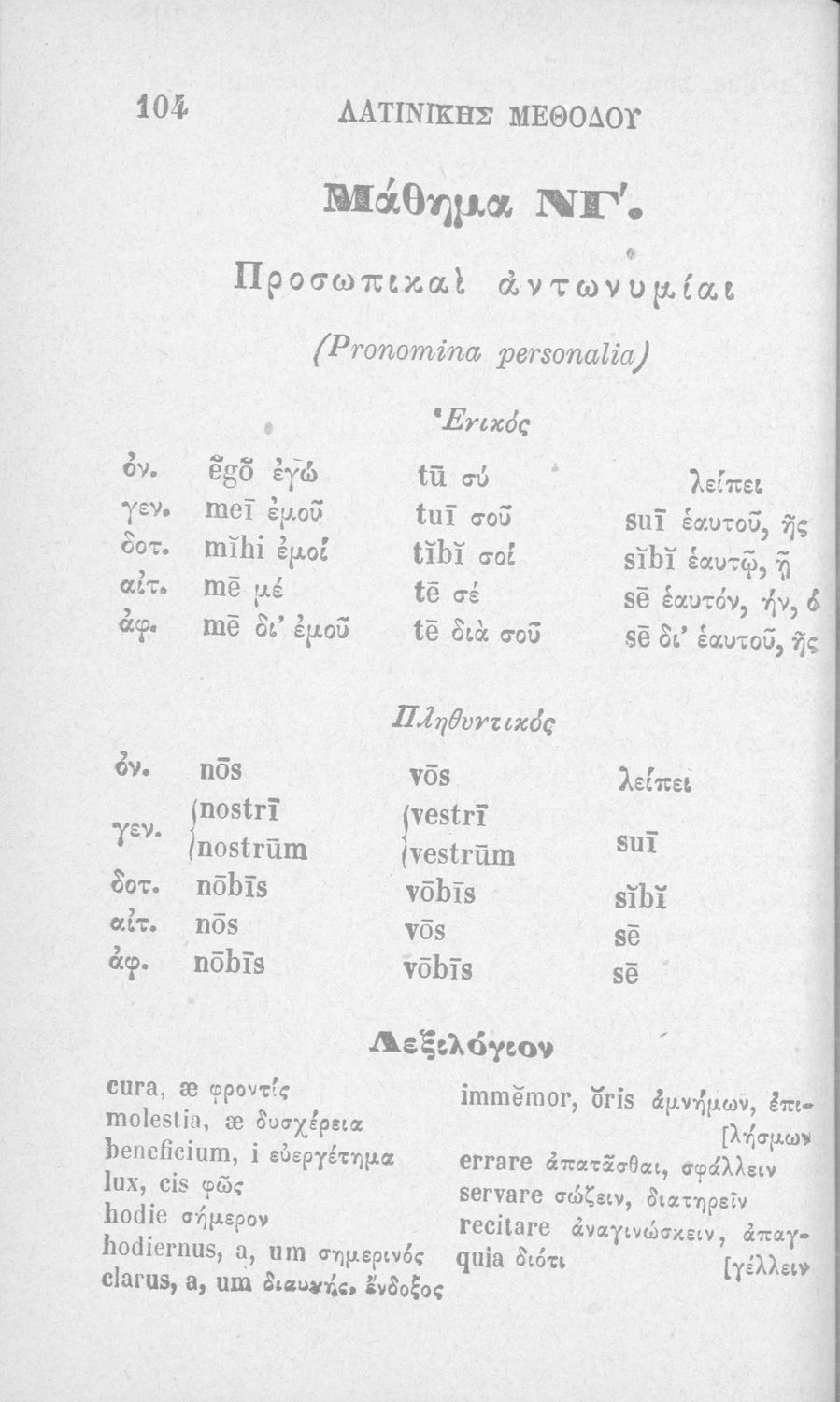 Σχολικό εγχειρίδιο Λατινικών που περιλαμβάνει γραμματική, συντακτικό, κείμενα και λεξιλόγιο.