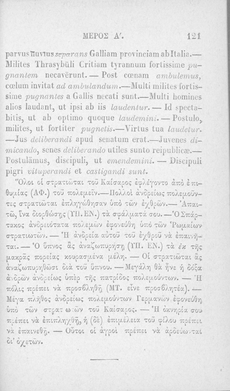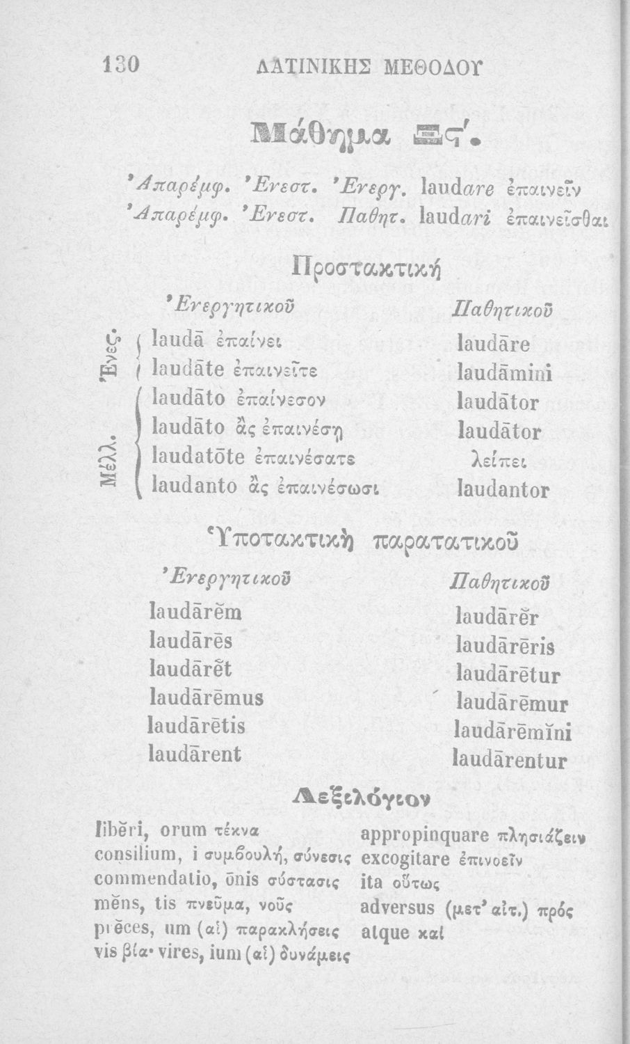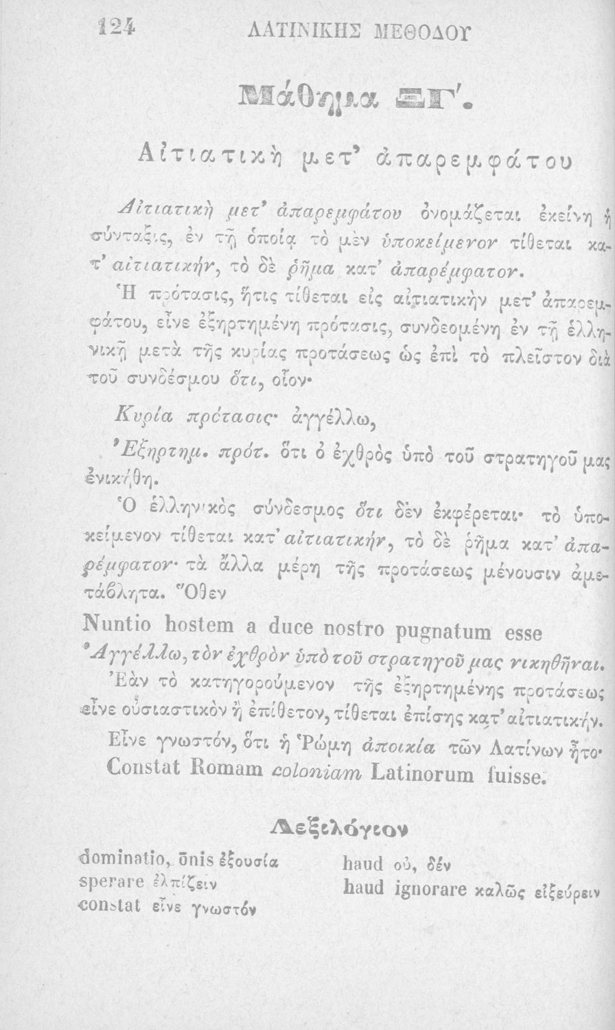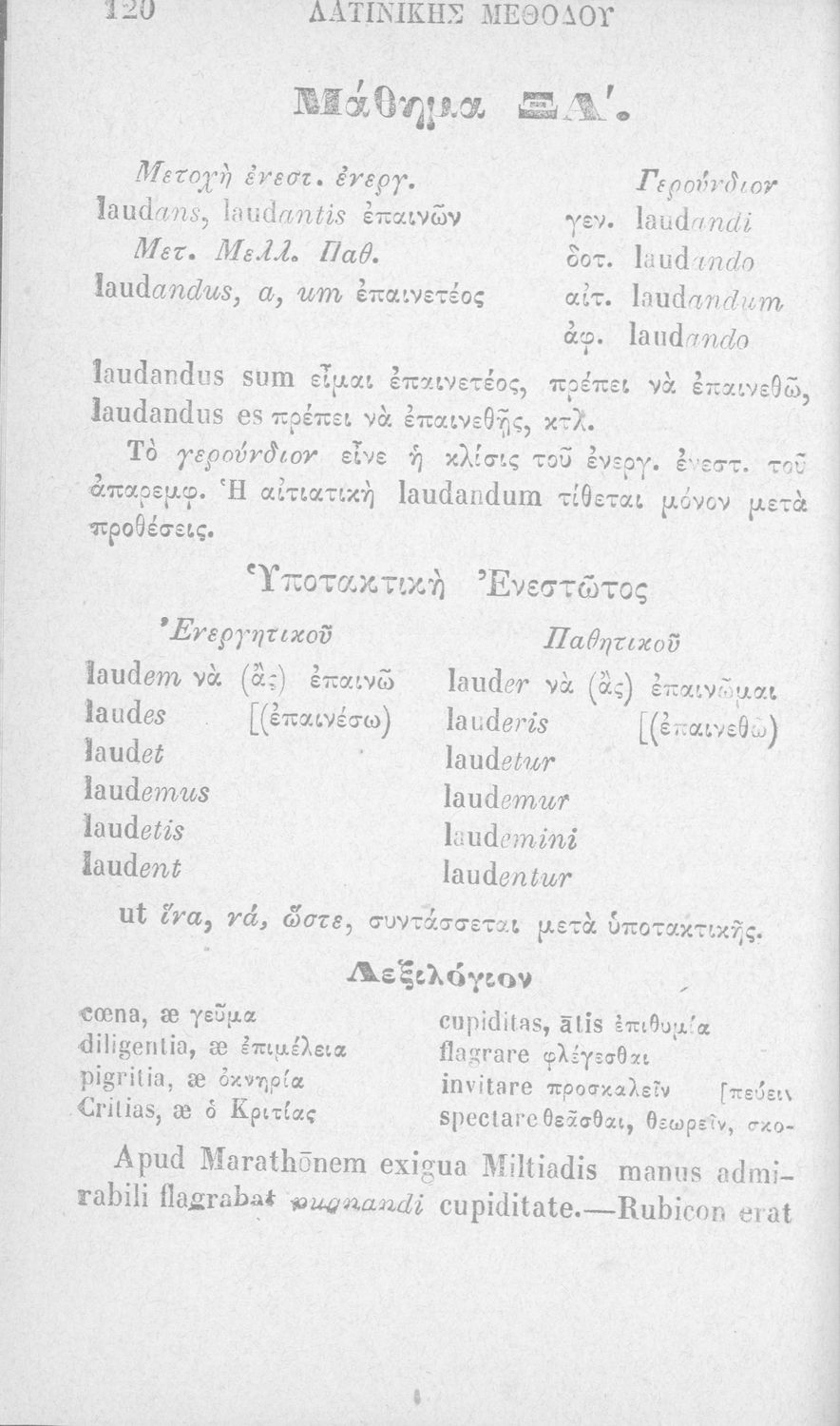Σχολικό εγχειρίδιο Λατινικών που περιλαμβάνει γραμματική, συντακτικό, κείμενα και λεξιλόγιο.