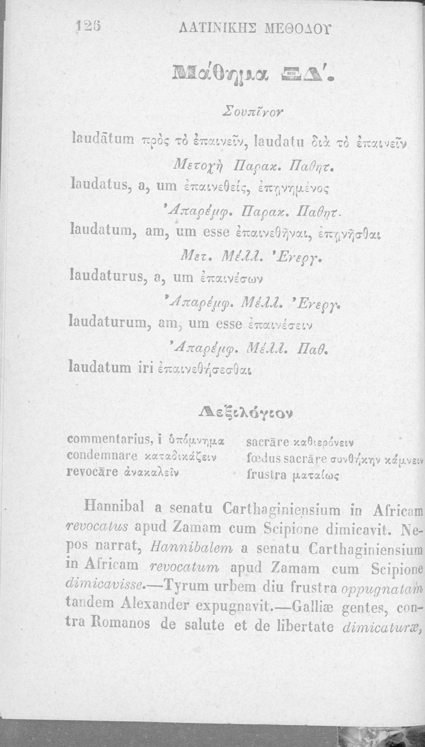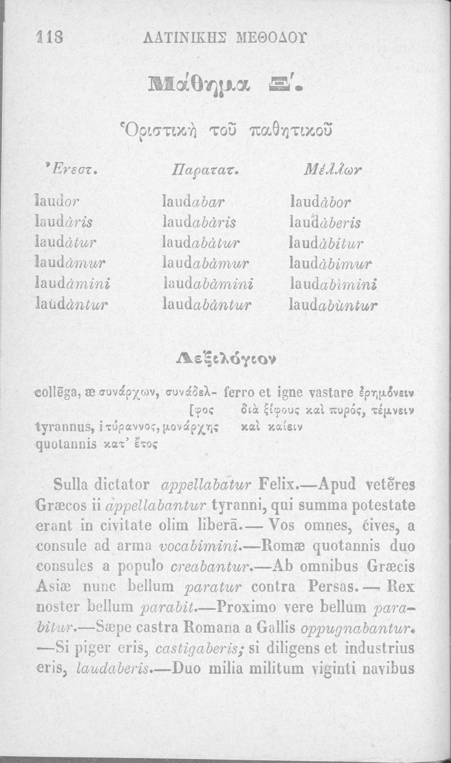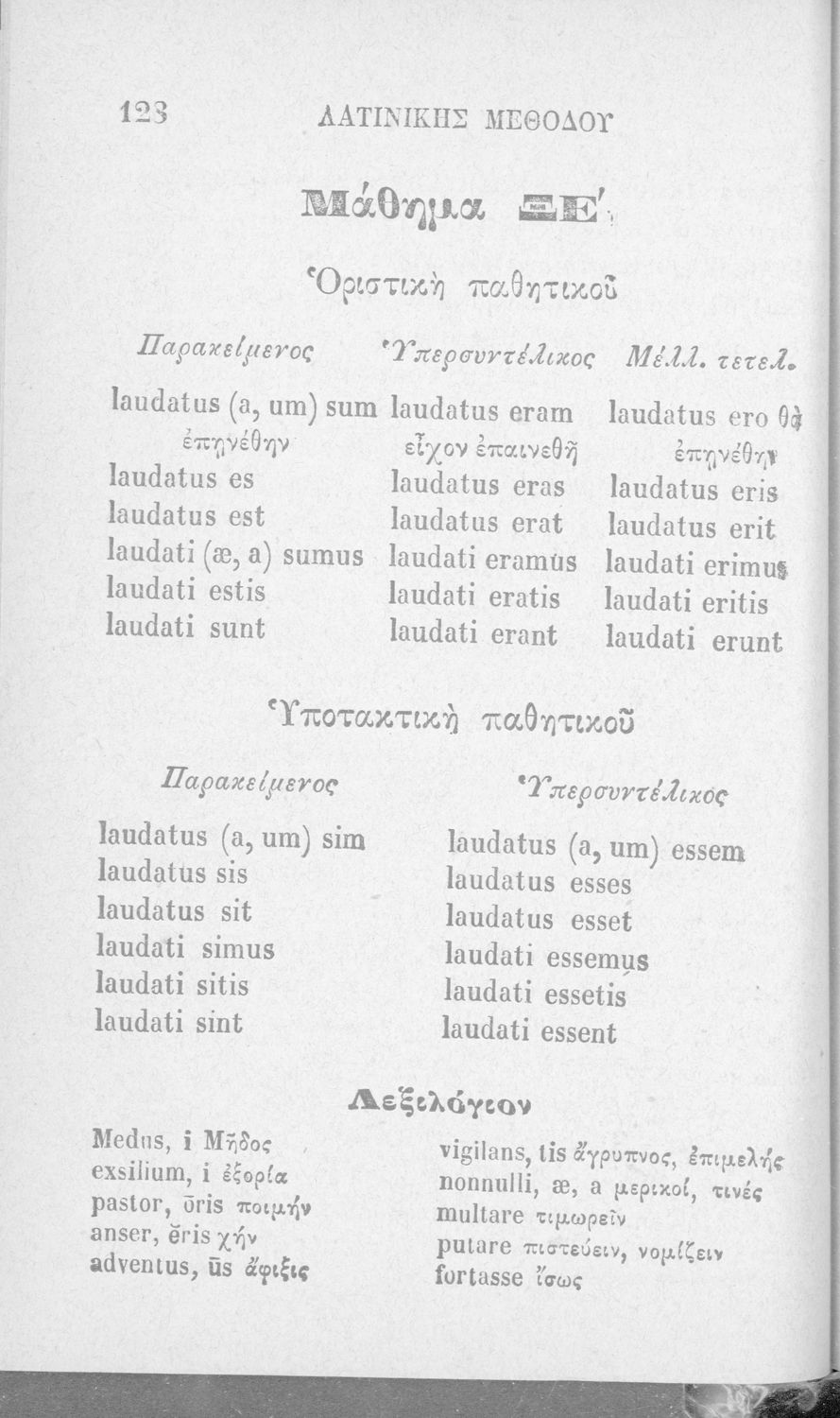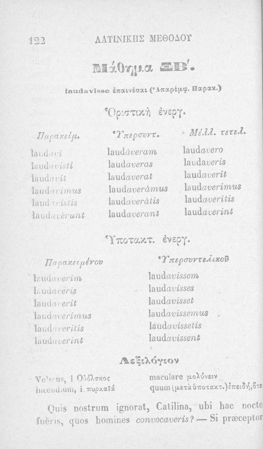 Σχολικό εγχειρίδιο Λατινικών που περιλαμβάνει γραμματική, συντακτικό, κείμενα και λεξιλόγιο.