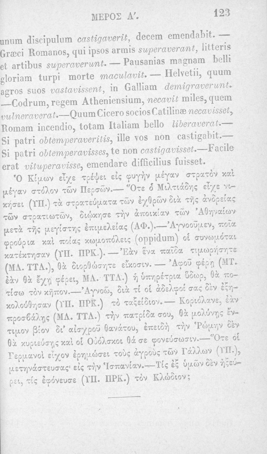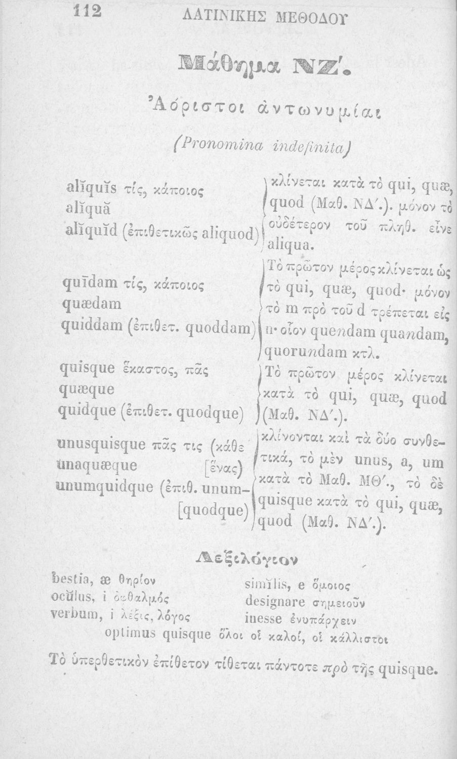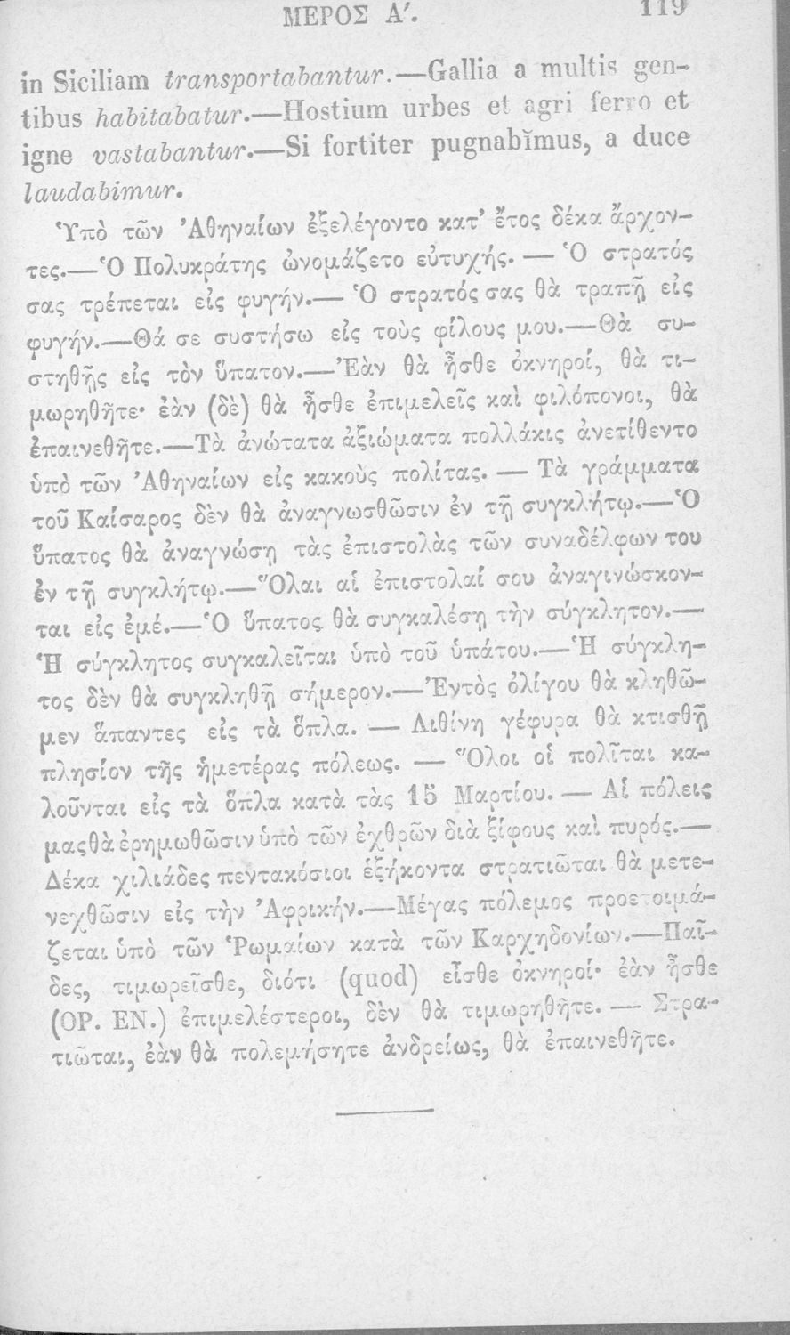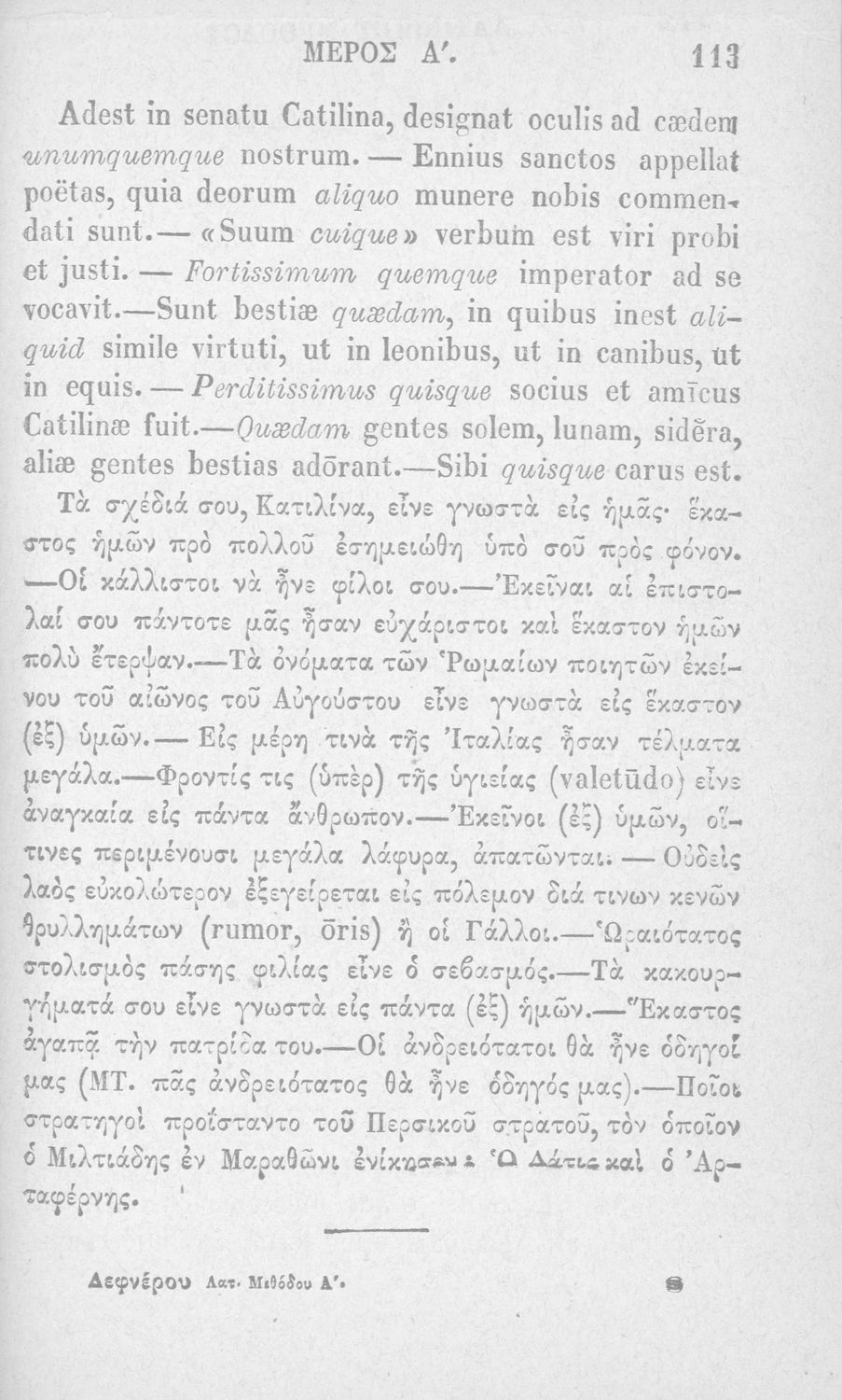 Σχολικό εγχειρίδιο Λατινικών που περιλαμβάνει γραμματική, συντακτικό, κείμενα και λεξιλόγιο.