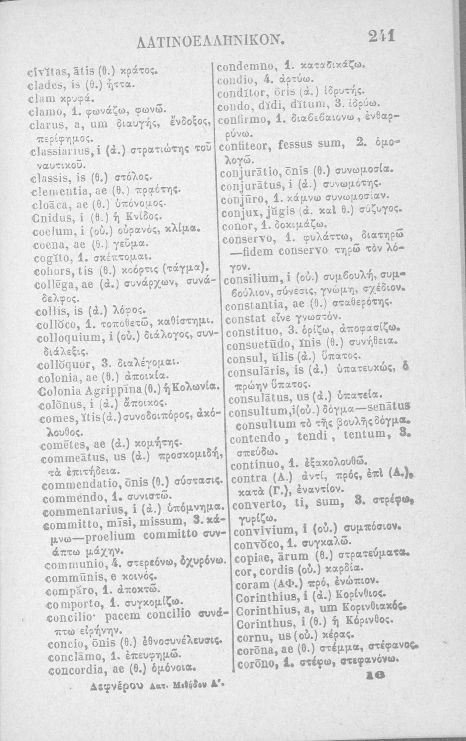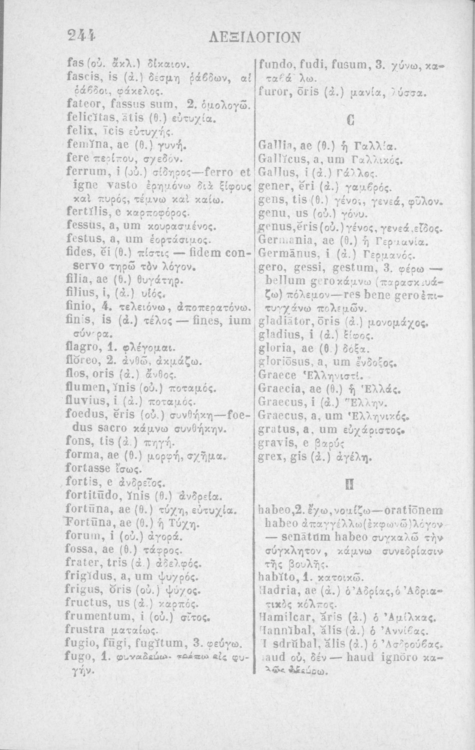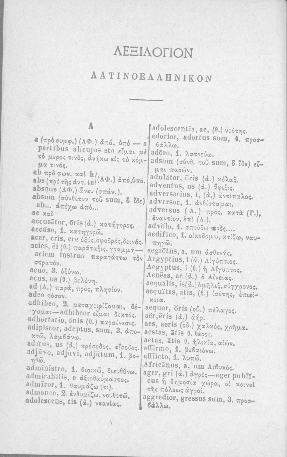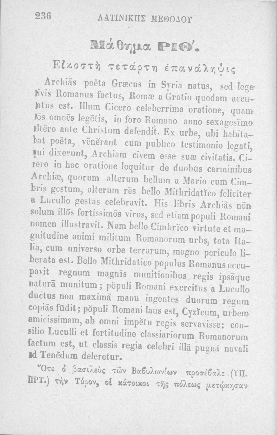 Σχολικό εγχειρίδιο Λατινικών που περιλαμβάνει γραμματική, συντακτικό, κείμενα και λεξιλόγιο.