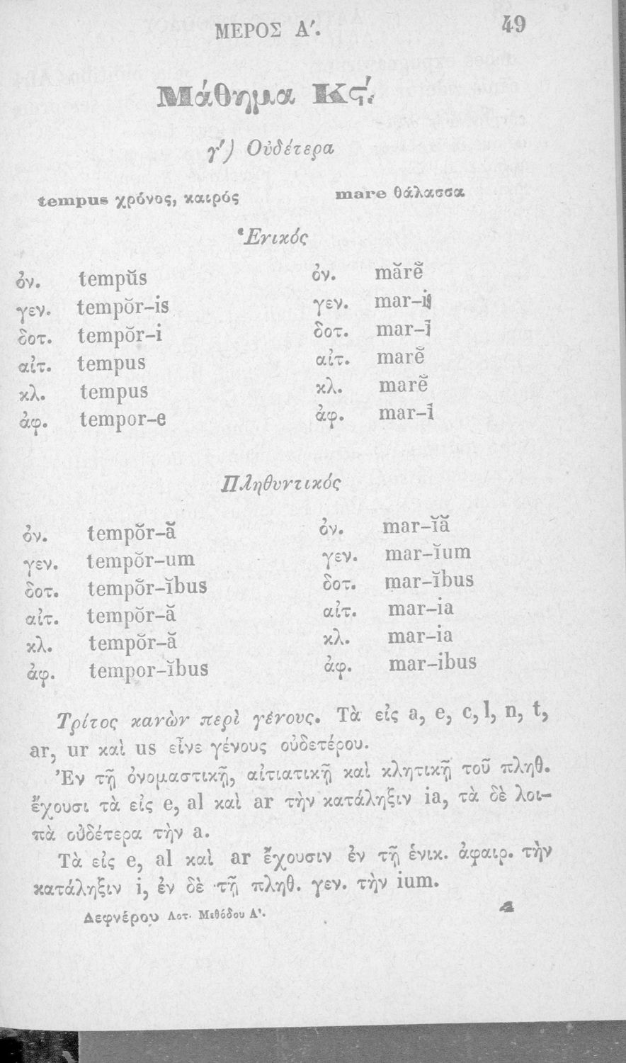Σχολικό εγχειρίδιο Λατινικών που περιλαμβάνει γραμματική, συντακτικό, κείμενα και λεξιλόγιο.