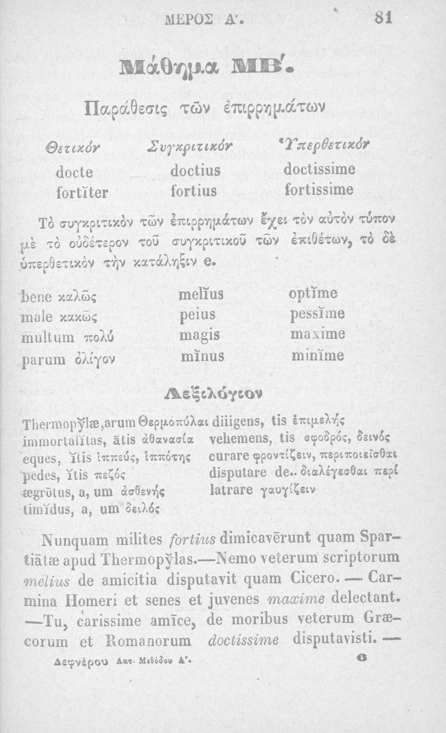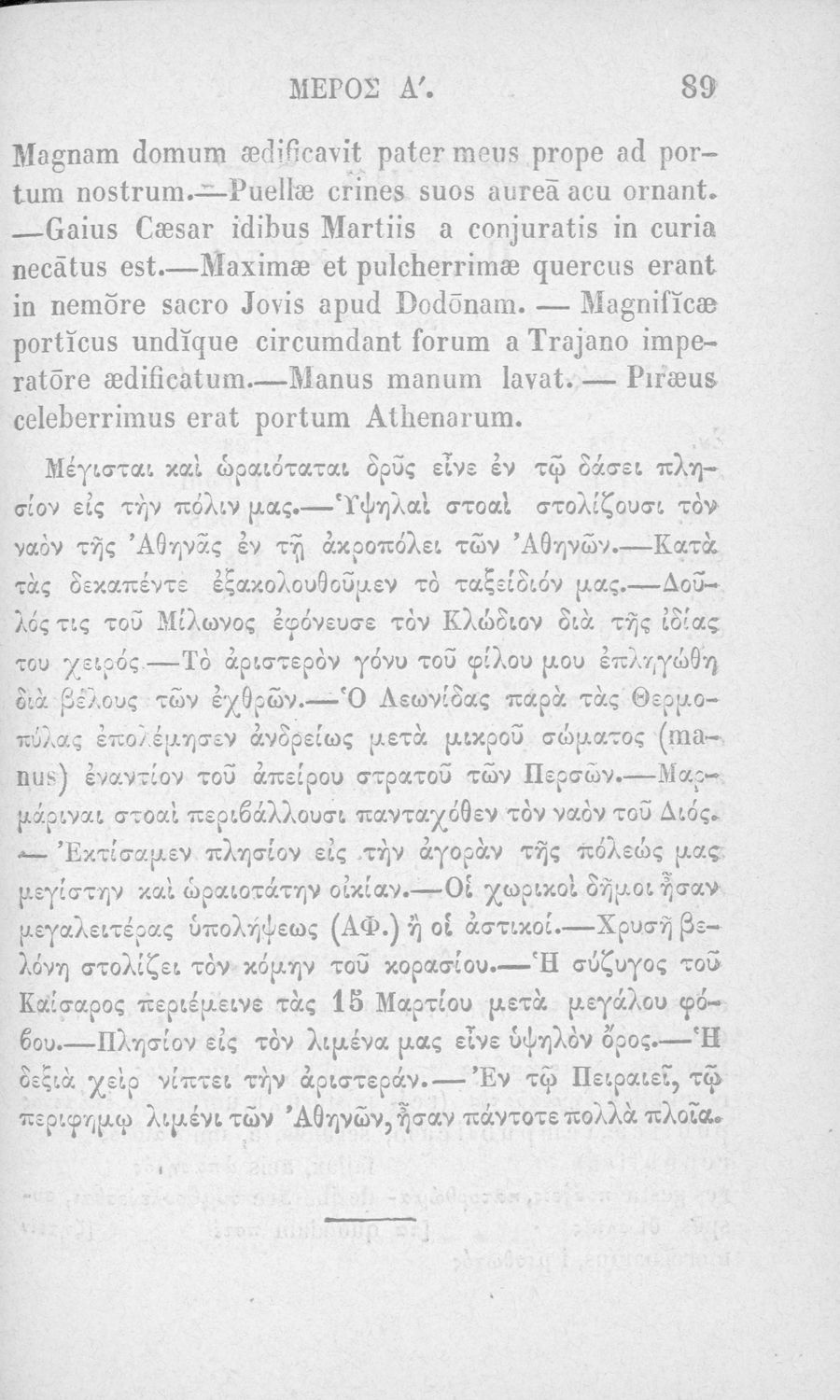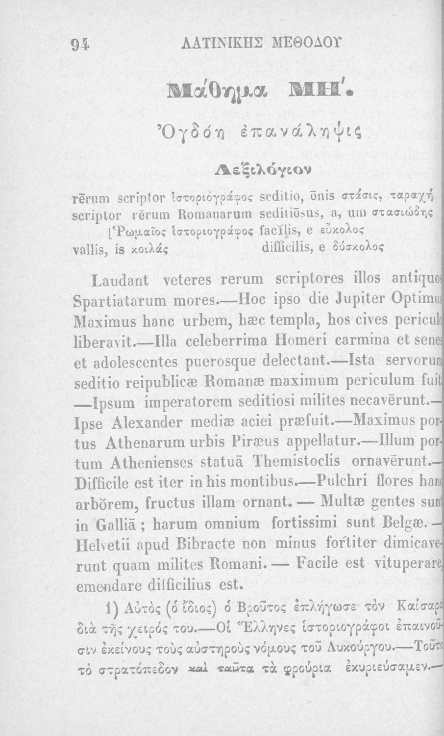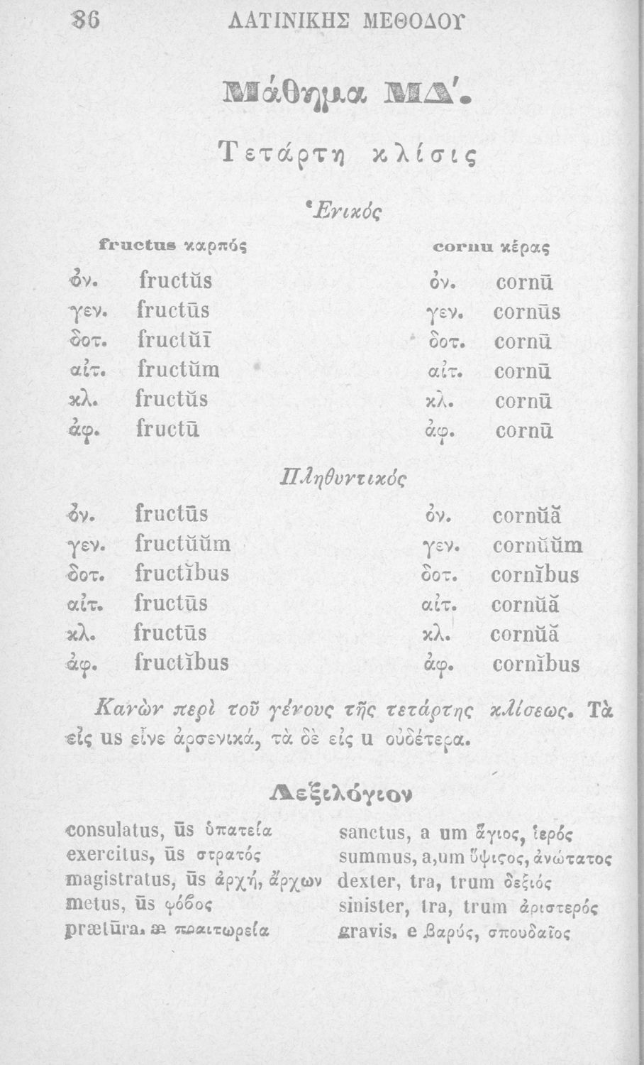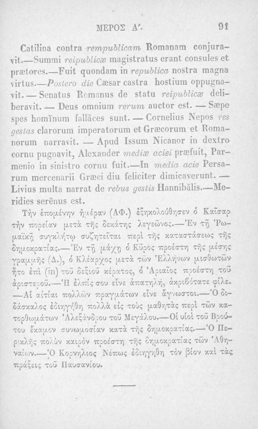 Σχολικό εγχειρίδιο Λατινικών που περιλαμβάνει γραμματική, συντακτικό, κείμενα και λεξιλόγιο.