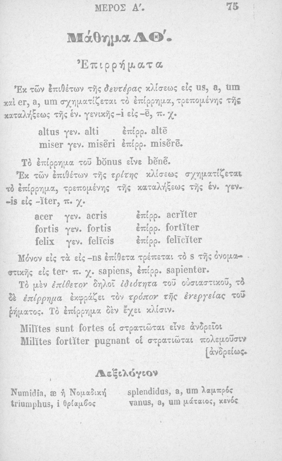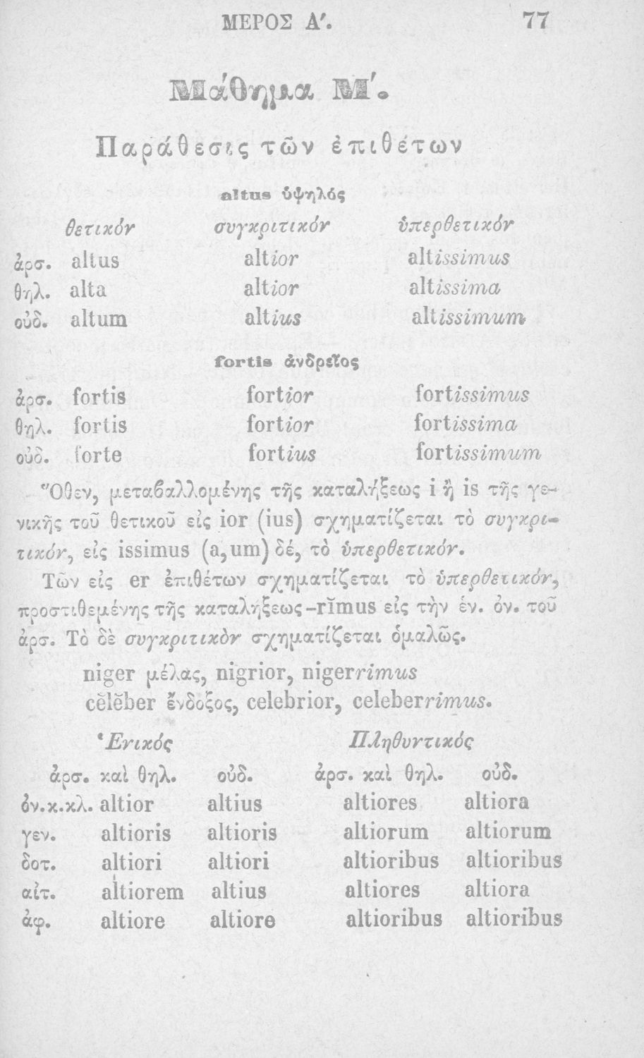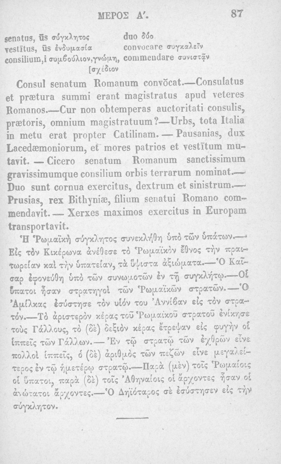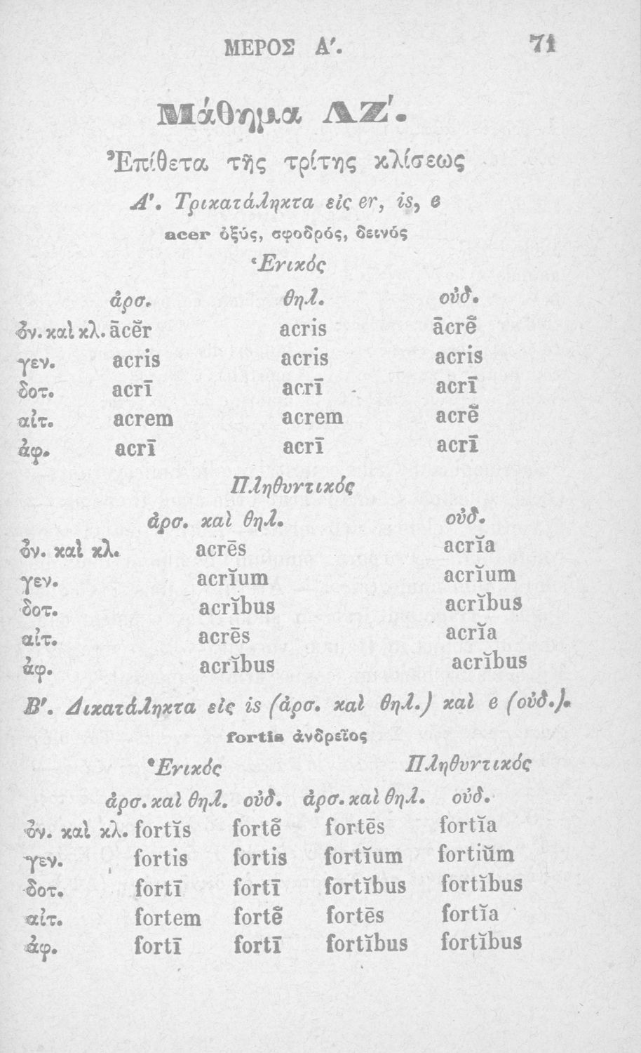 Σχολικό εγχειρίδιο Λατινικών που περιλαμβάνει γραμματική, συντακτικό, κείμενα και λεξιλόγιο.