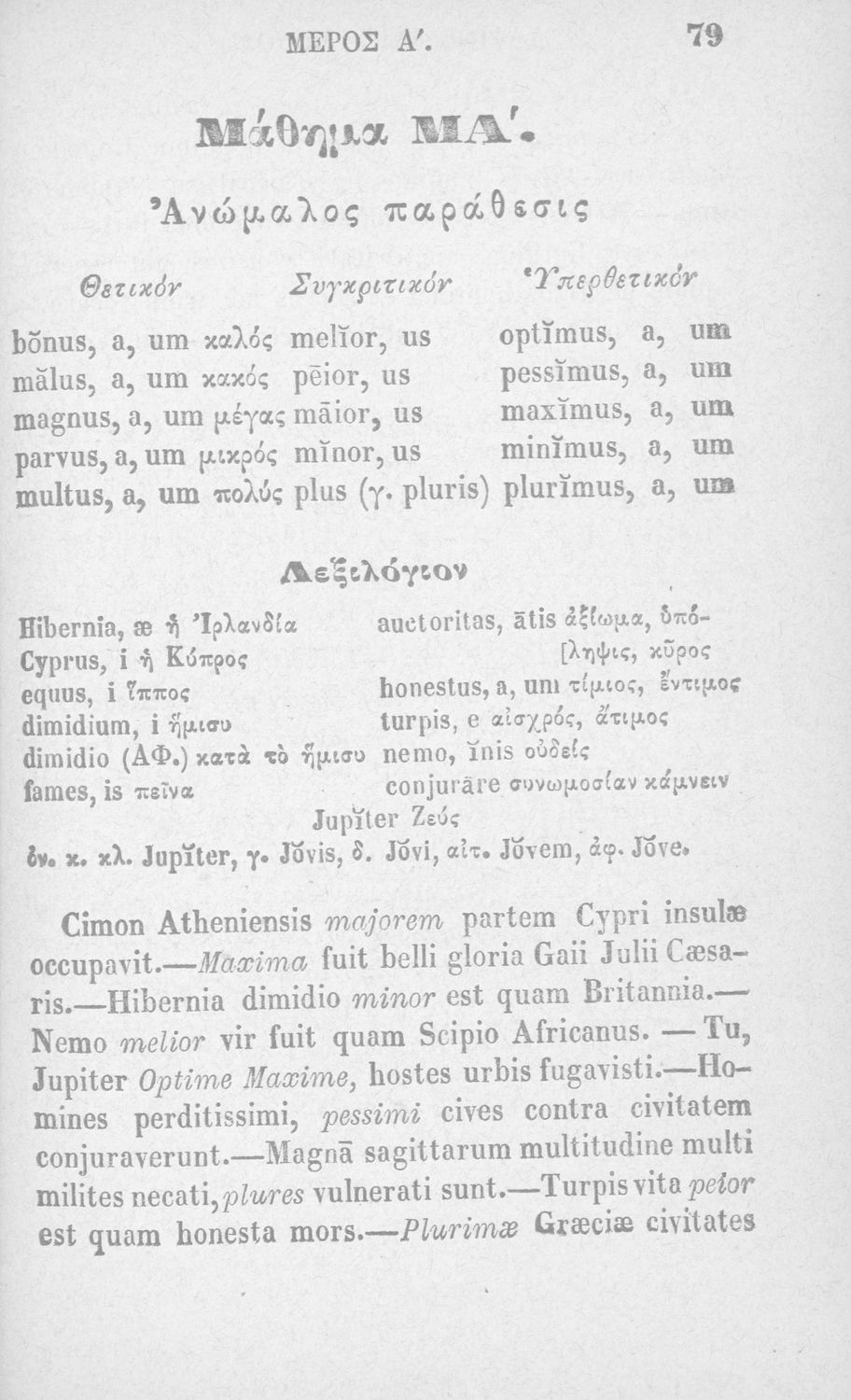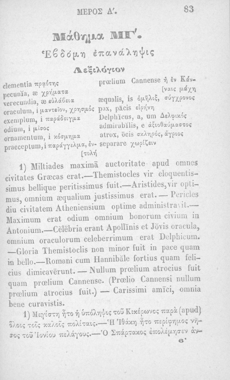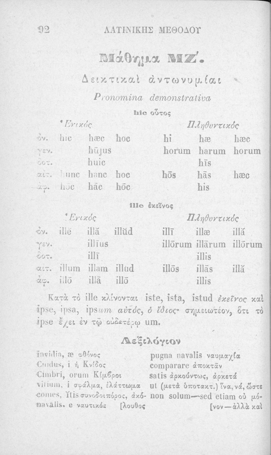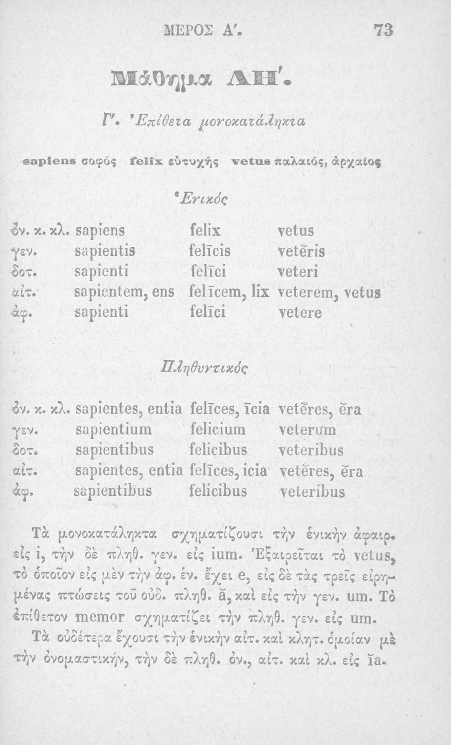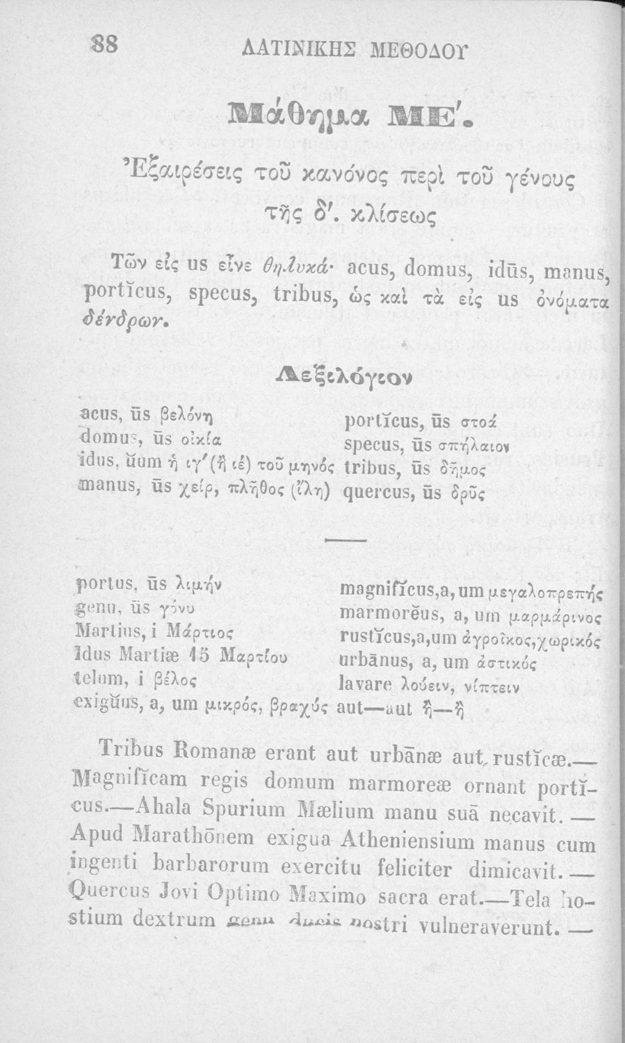Σχολικό εγχειρίδιο Λατινικών που περιλαμβάνει γραμματική, συντακτικό, κείμενα και λεξιλόγιο.