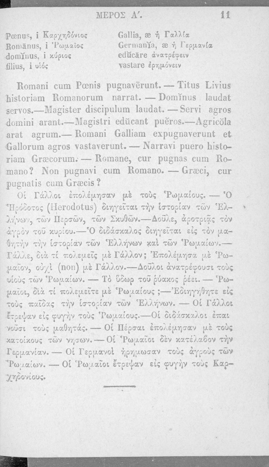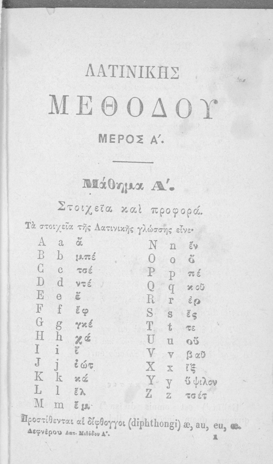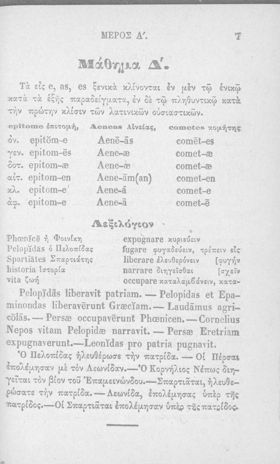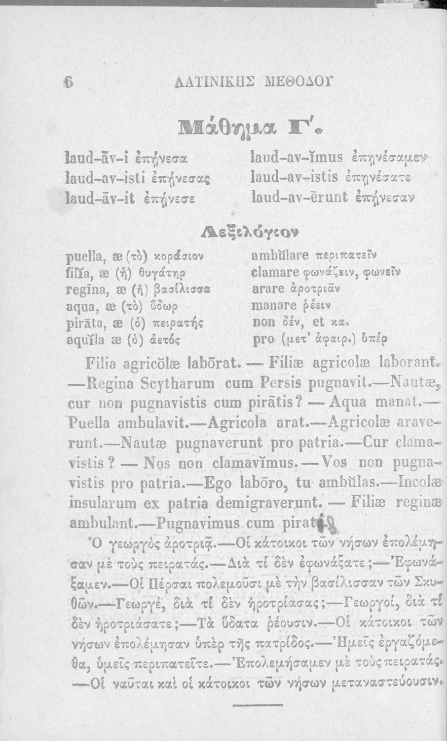 Σχολικό εγχειρίδιο Λατινικών που περιλαμβάνει γραμματική, συντακτικό, κείμενα και λεξιλόγιο.