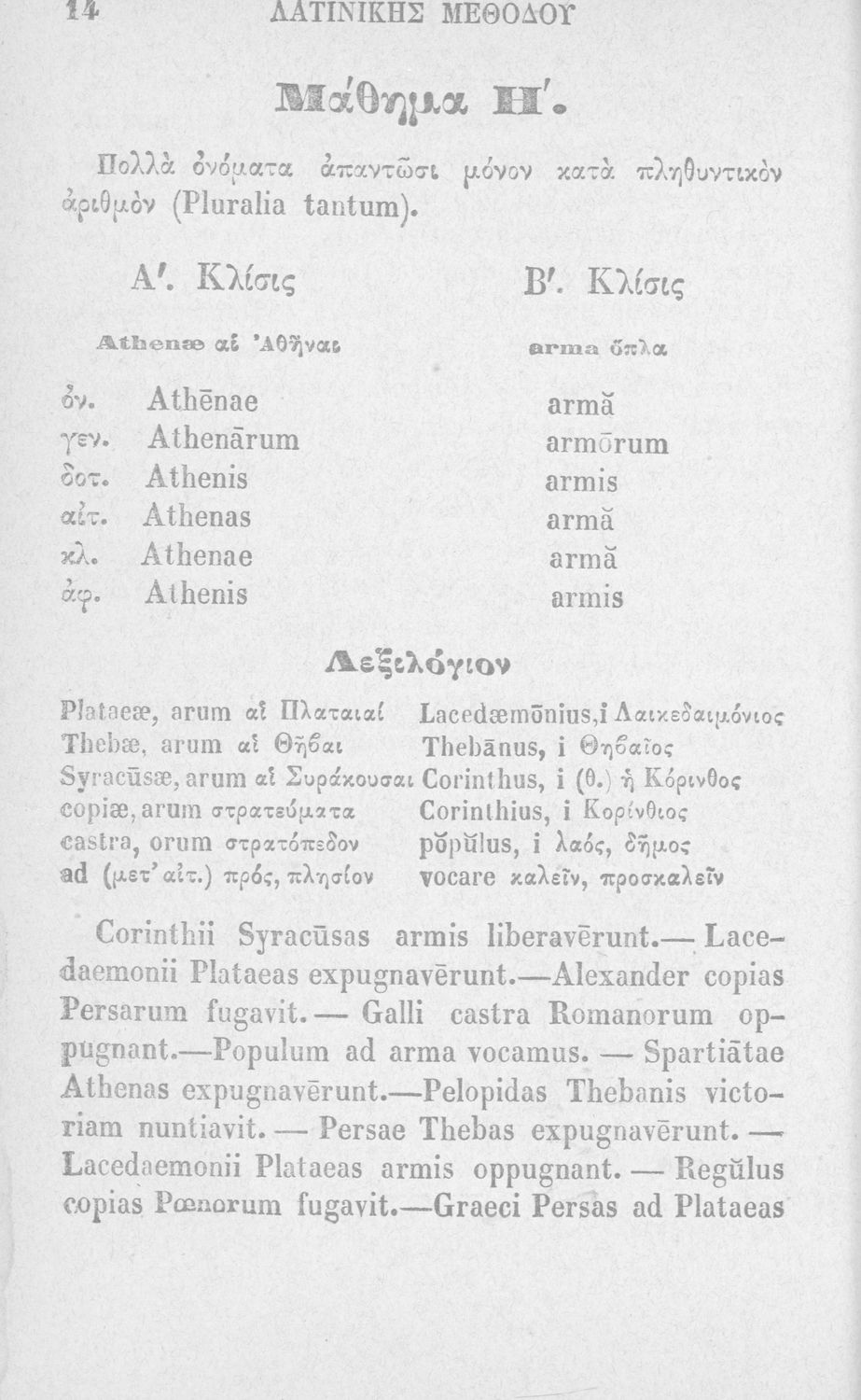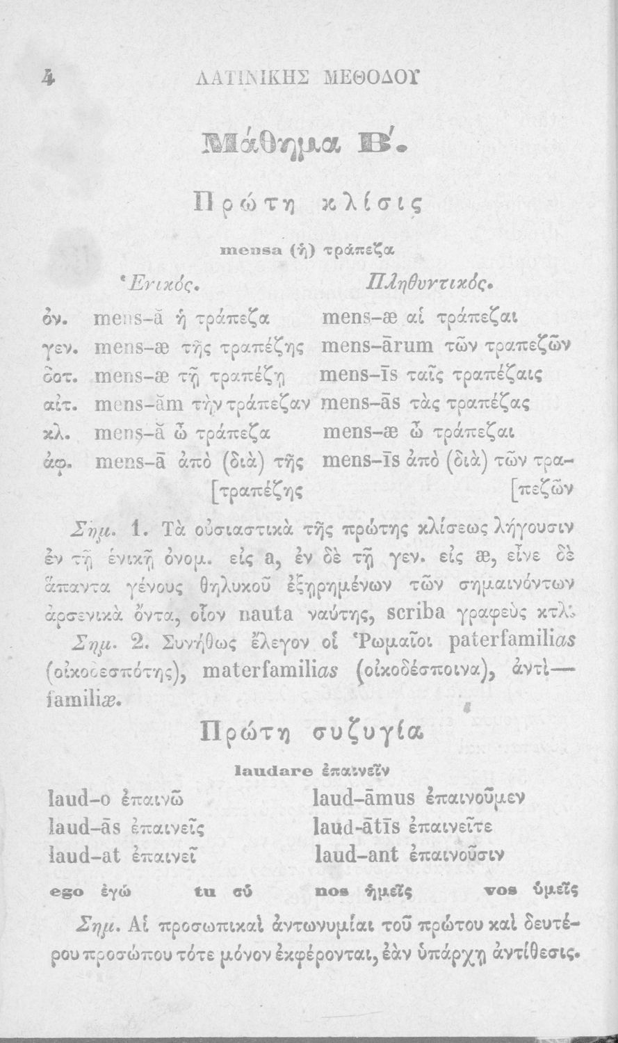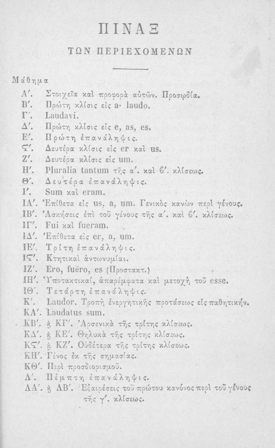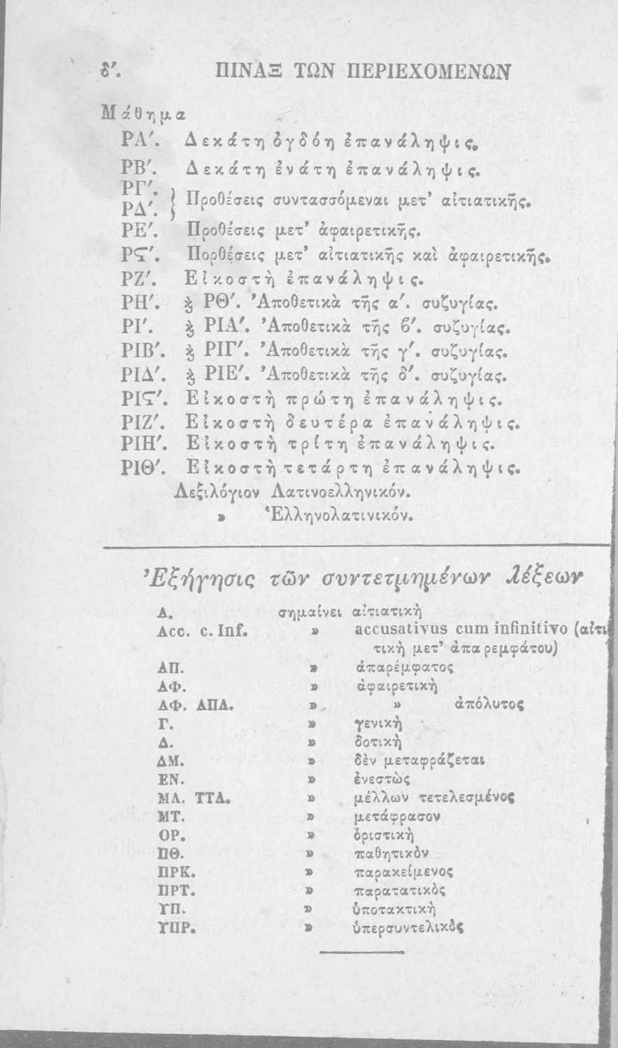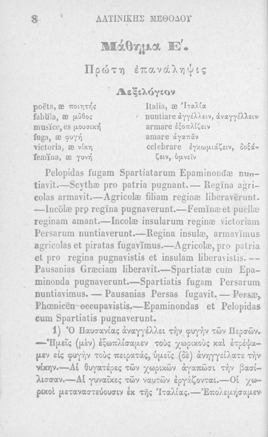 Σχολικό εγχειρίδιο Λατινικών που περιλαμβάνει γραμματική, συντακτικό, κείμενα και λεξιλόγιο.