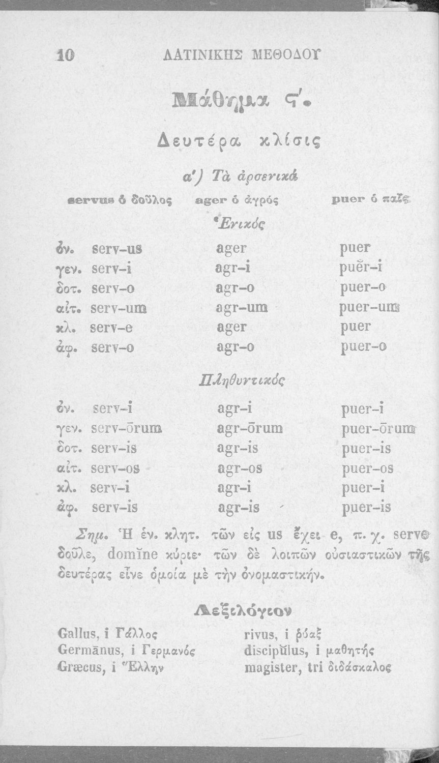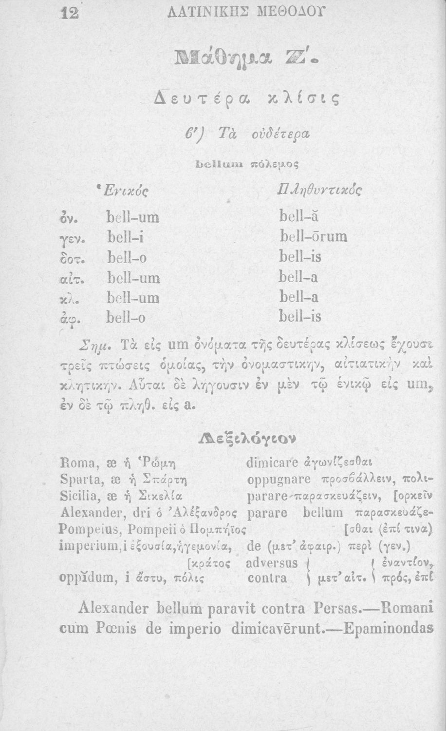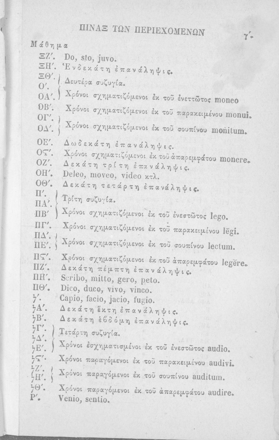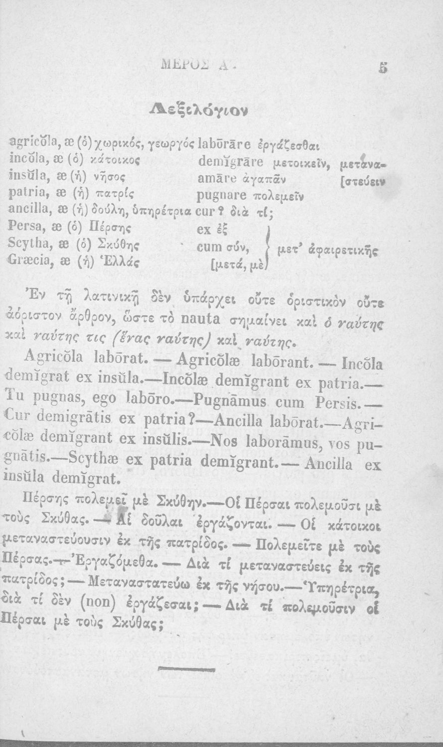 Σχολικό εγχειρίδιο Λατινικών που περιλαμβάνει γραμματική, συντακτικό, κείμενα και λεξιλόγιο.