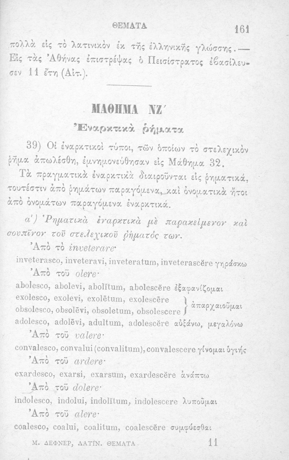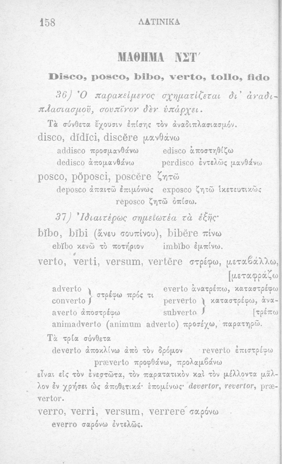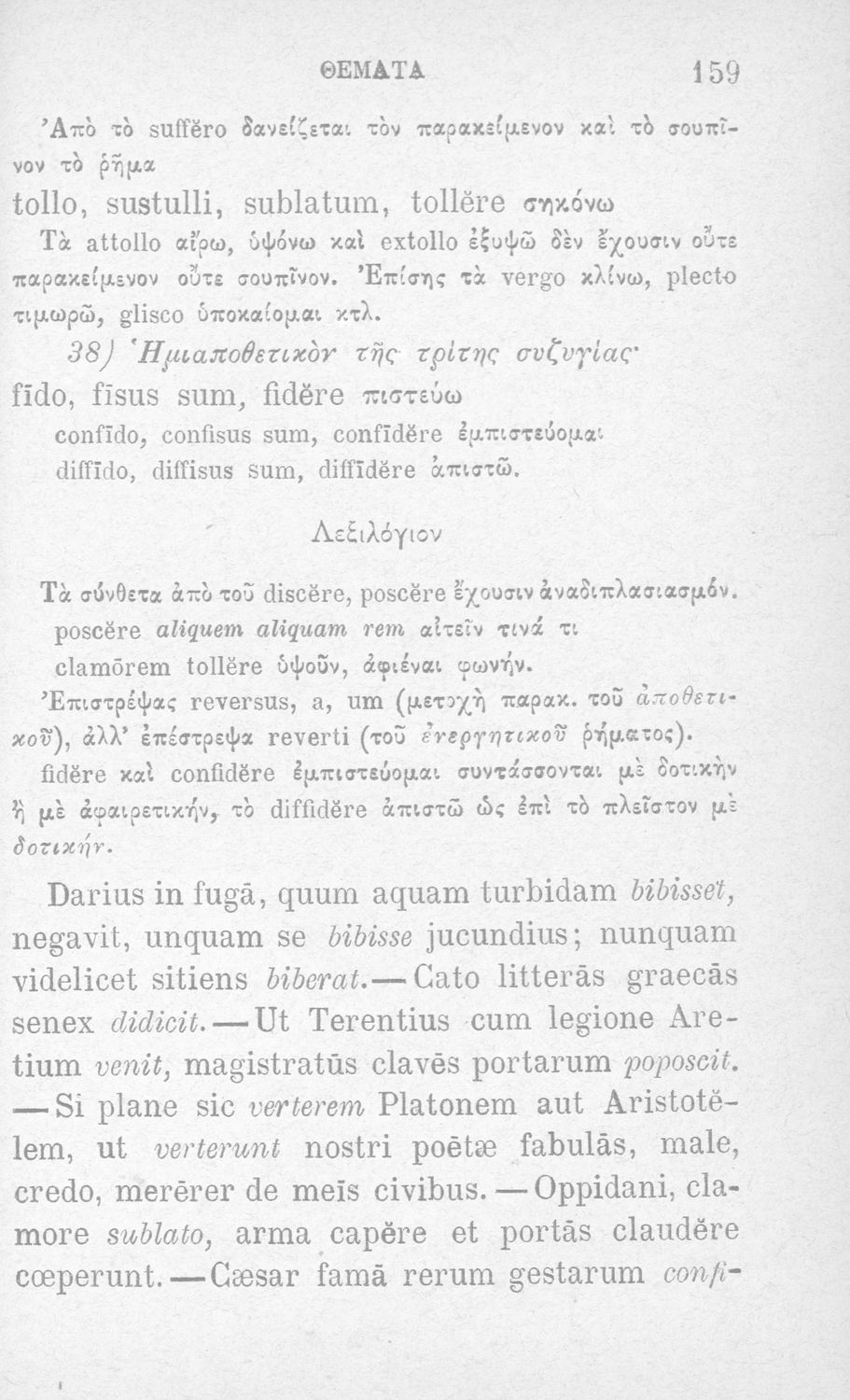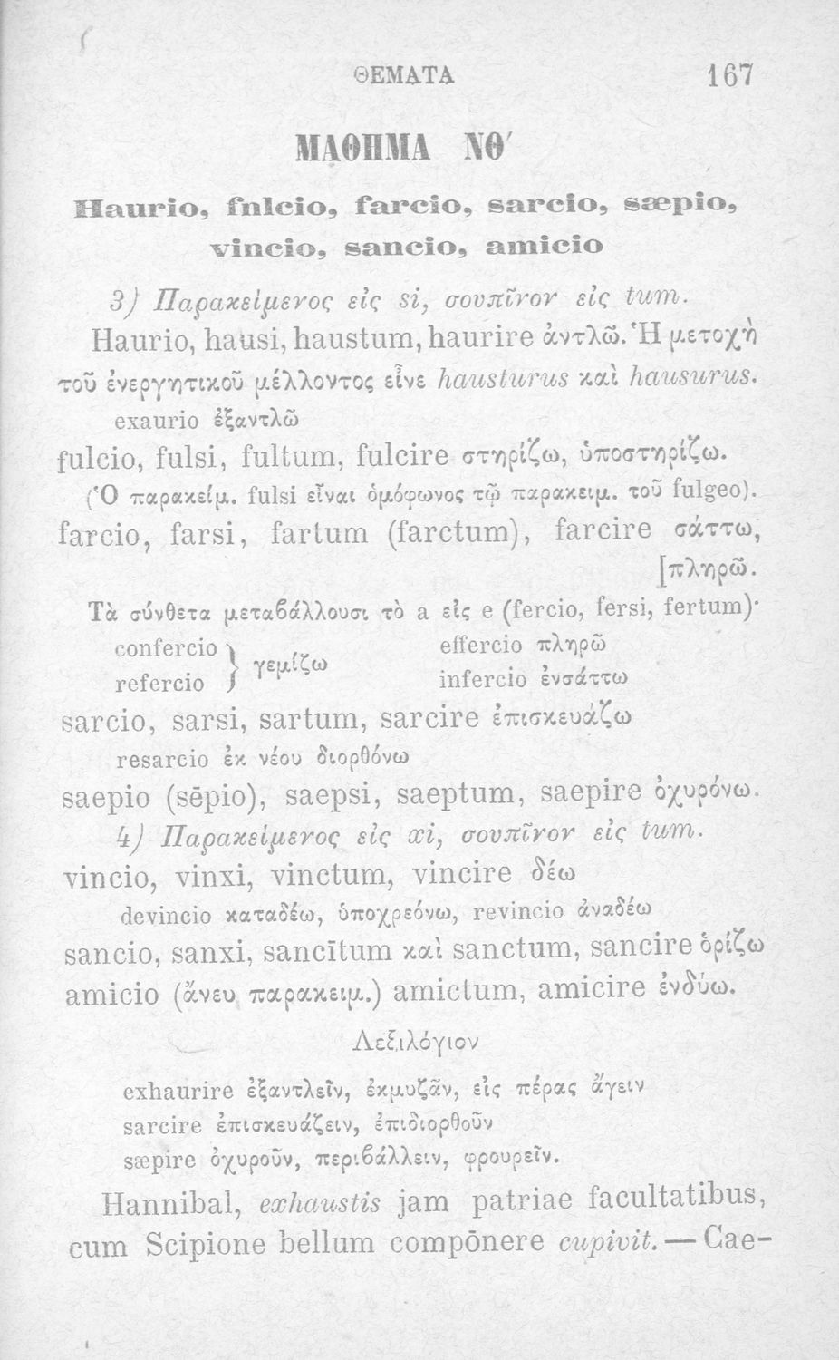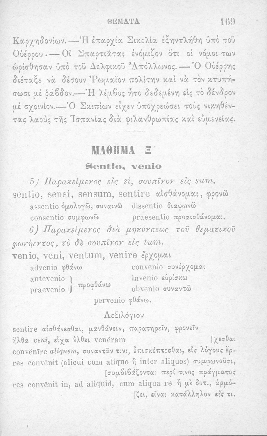 Σχολικό εγχειρίδιο Λατινικών Α΄, Β΄, Γ' Γυμνασίου που περιλαμβάνει γραμματική και συντακτικό και είναι χωρισμένο σε φθογγολογικό, τυπολογικό και ετυμολογικό μέρος.