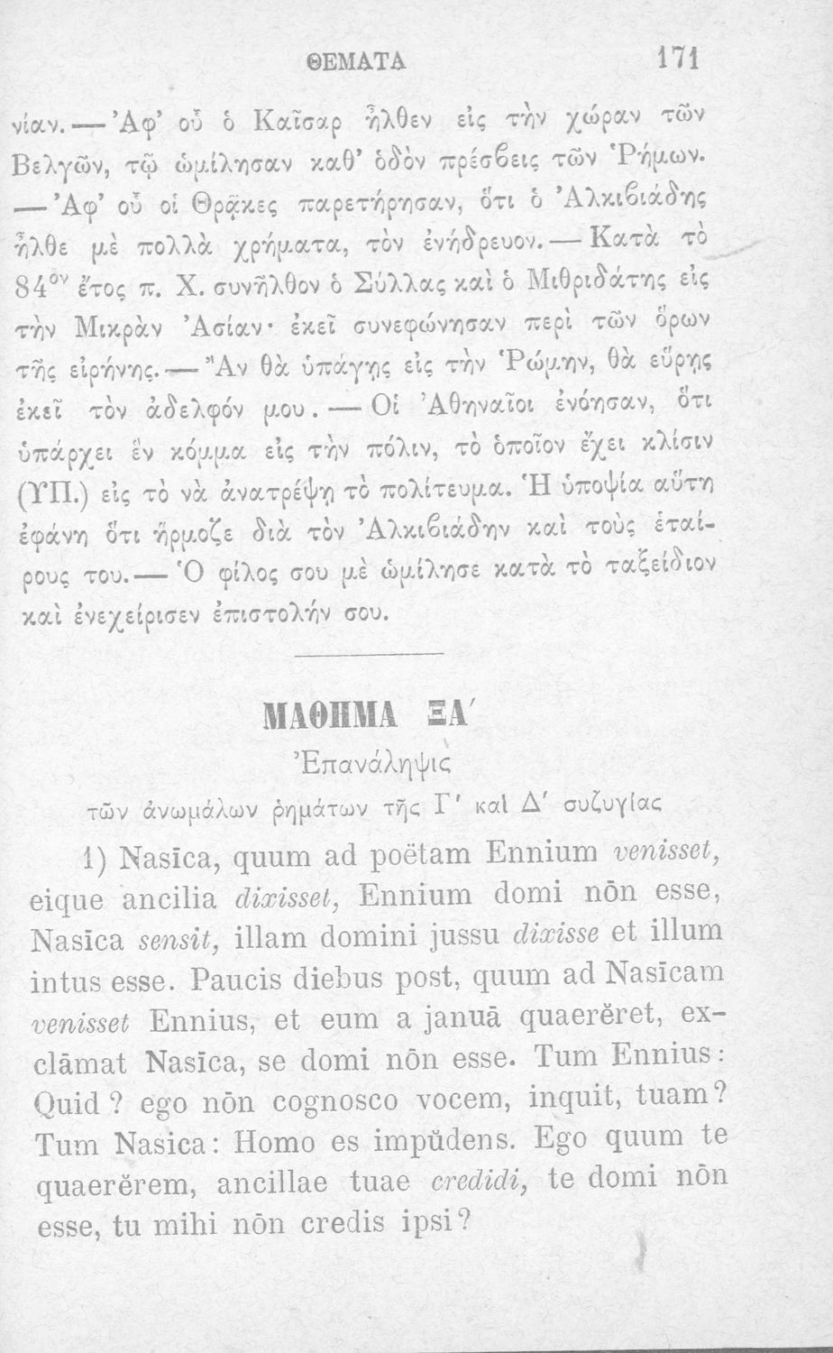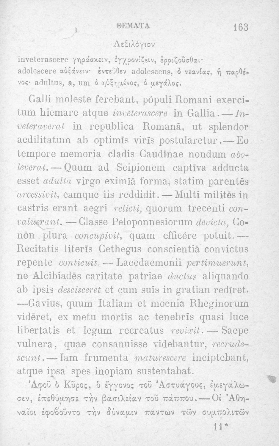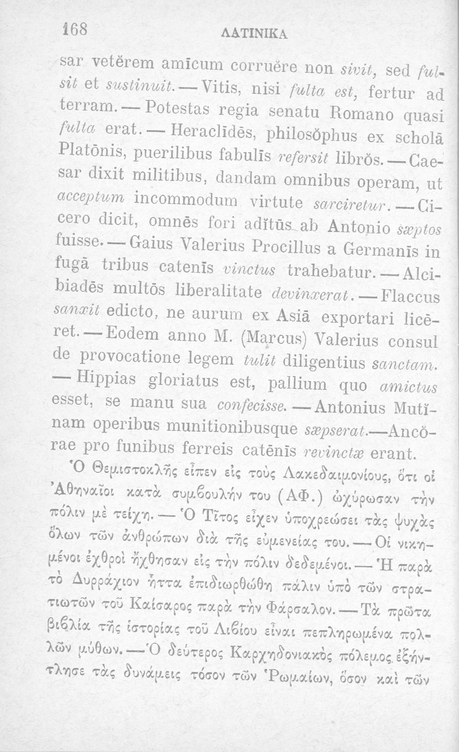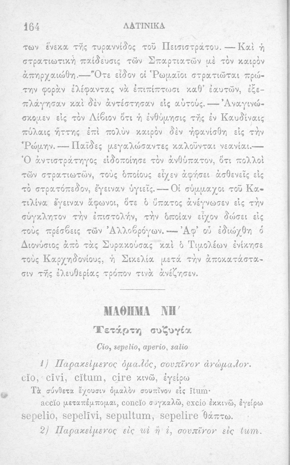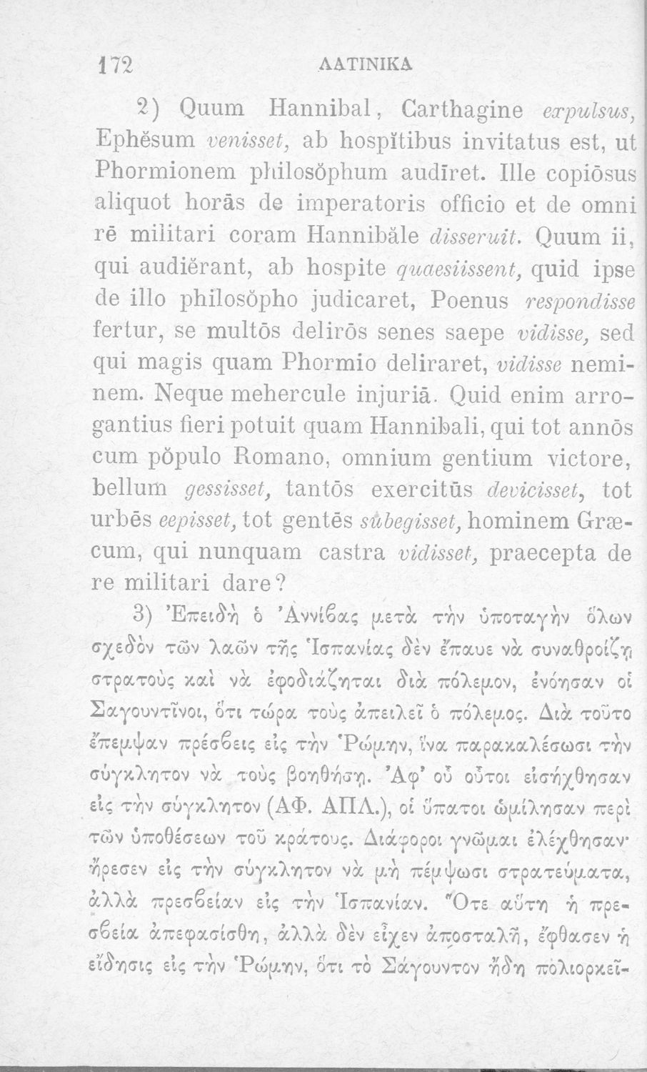 Σχολικό εγχειρίδιο Λατινικών που περιλαμβάνει γραμματική, συντακτικό, κείμενα και λεξιλόγιο.