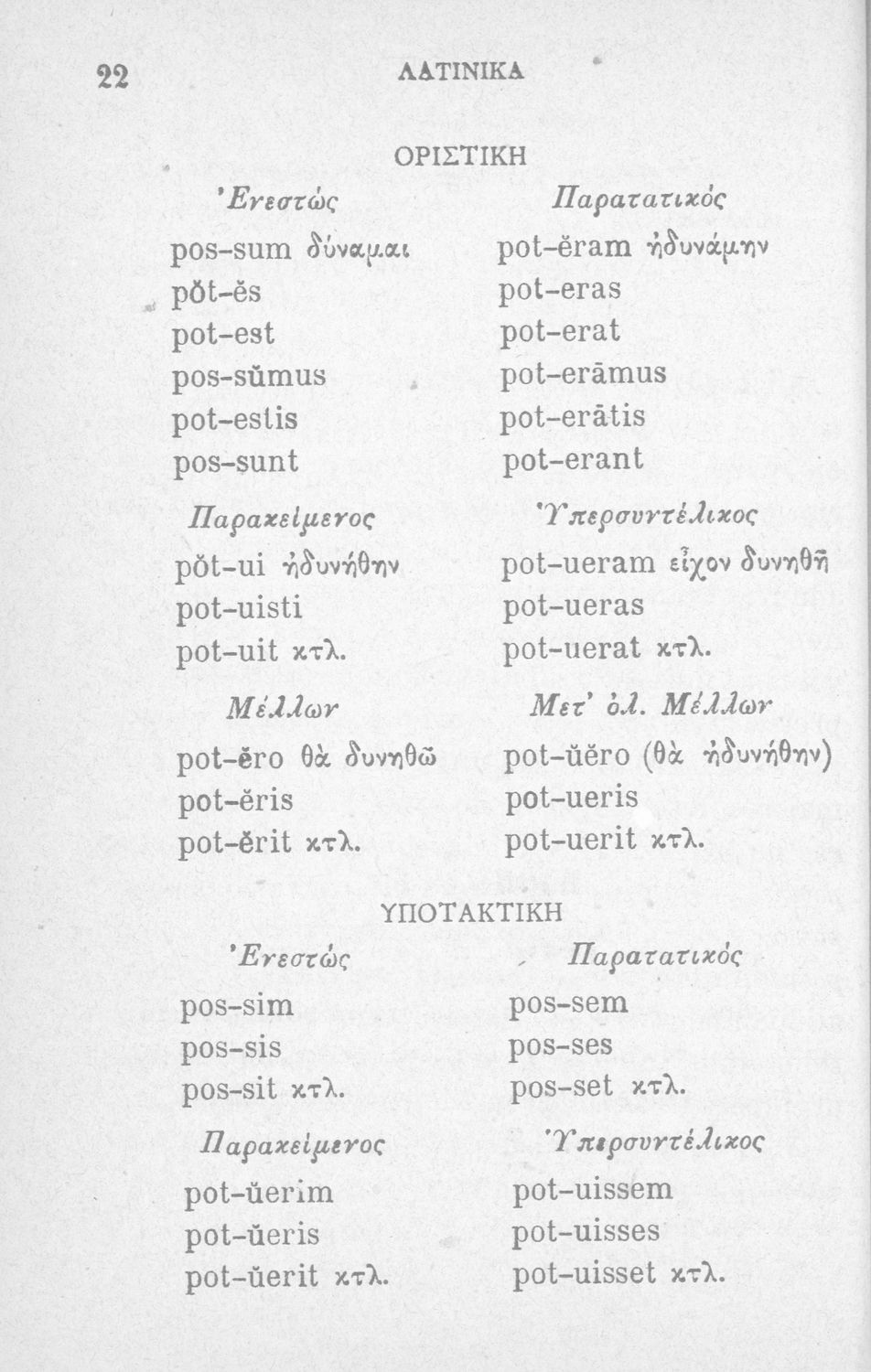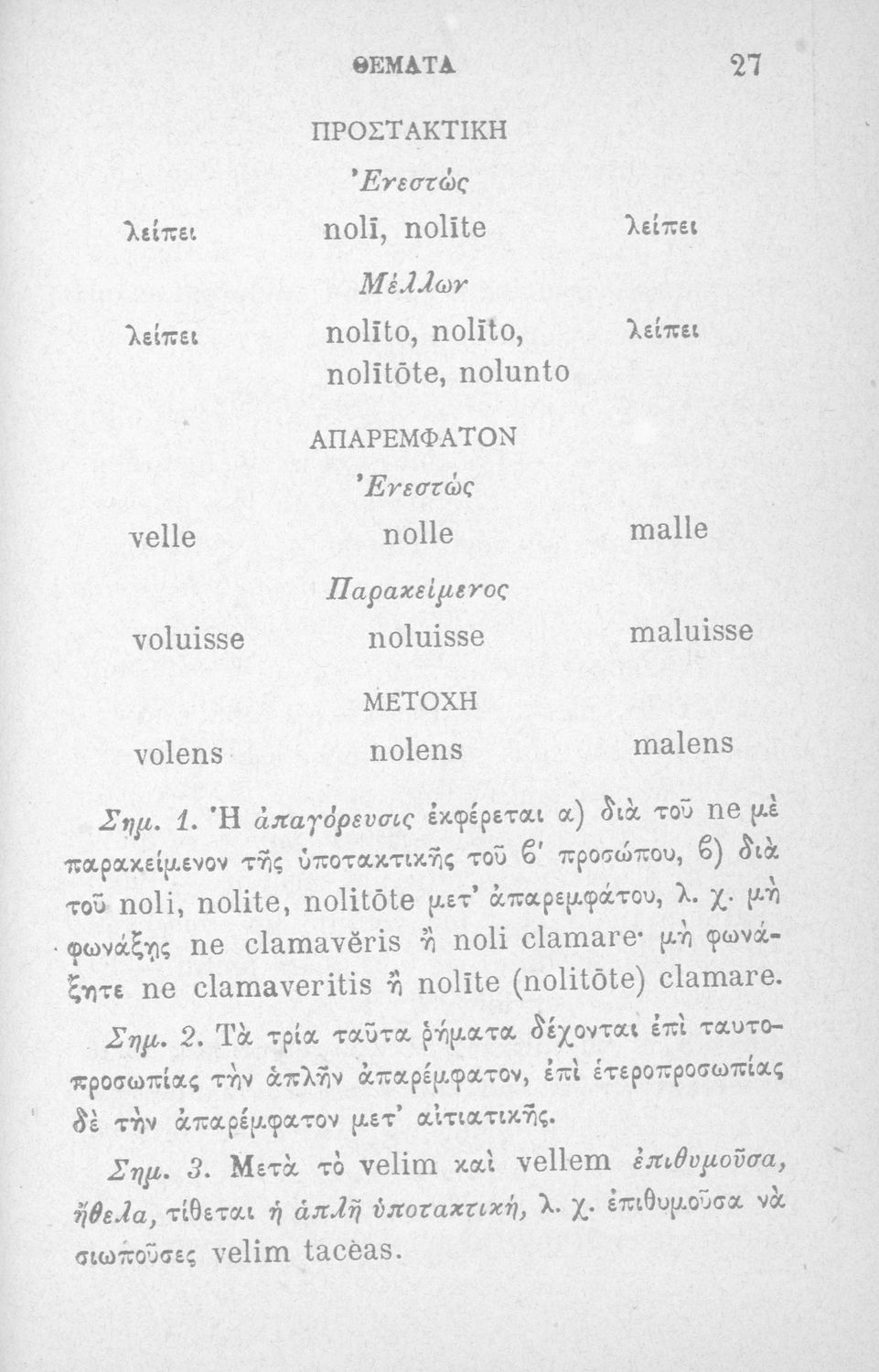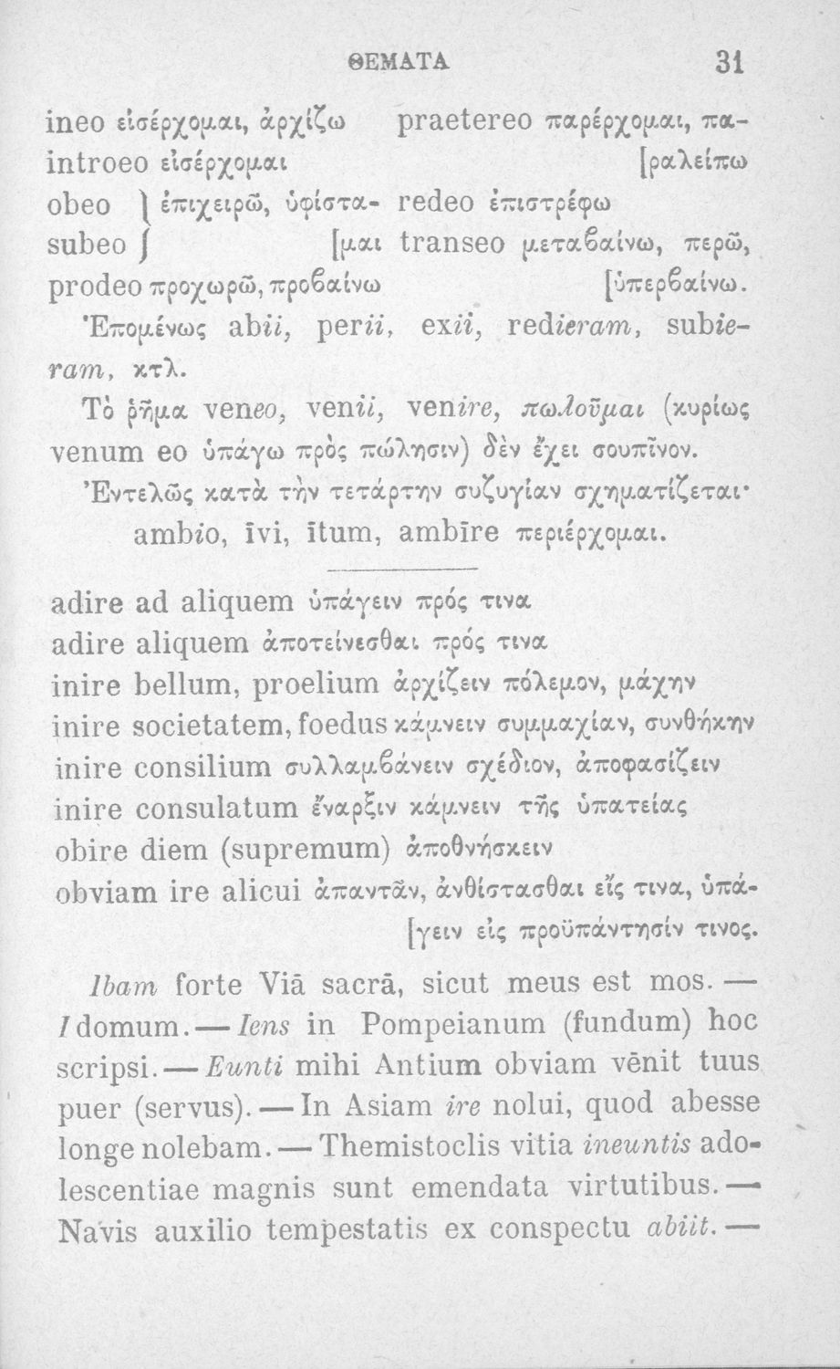 Σχολικό εγχειρίδιο Λατινικών Α΄, Β΄, Γ' Γυμνασίου που περιλαμβάνει γραμματική και συντακτικό και είναι χωρισμένο σε φθογγολογικό, τυπολογικό και ετυμολογικό μέρος.