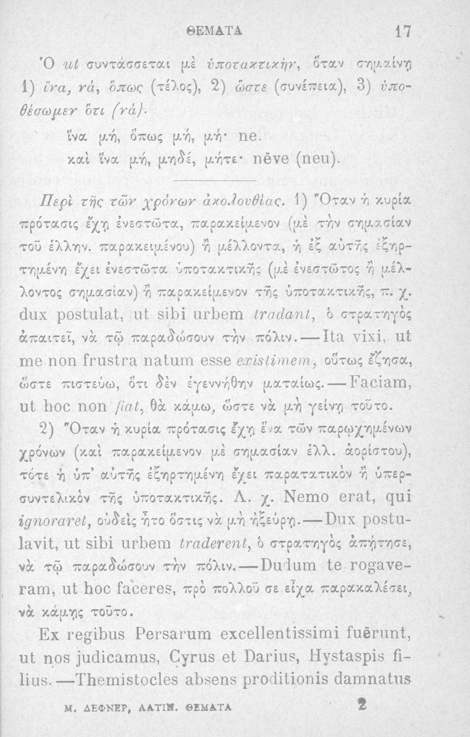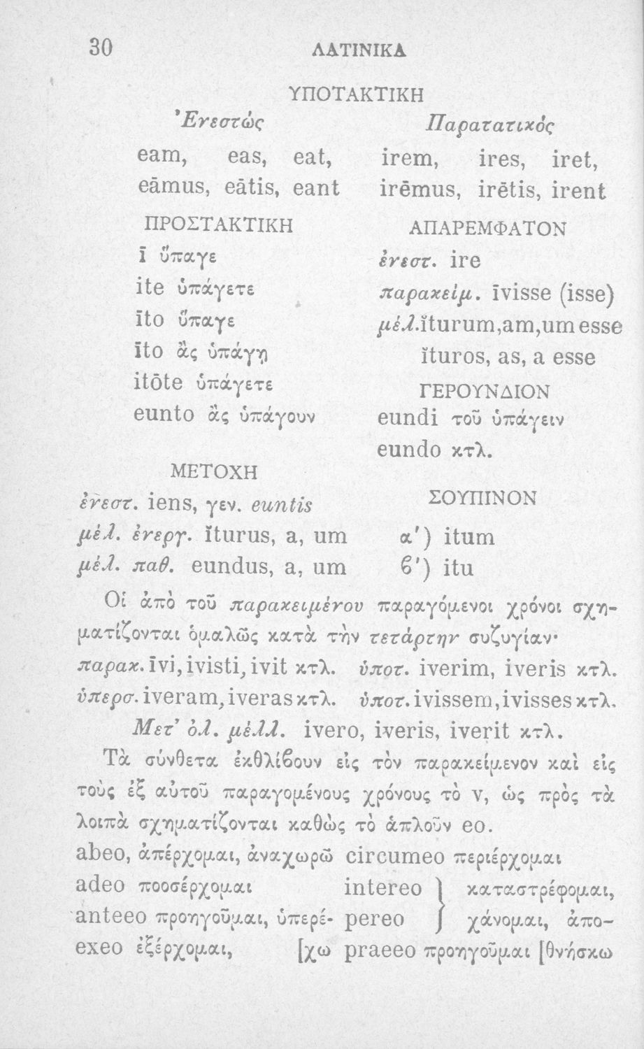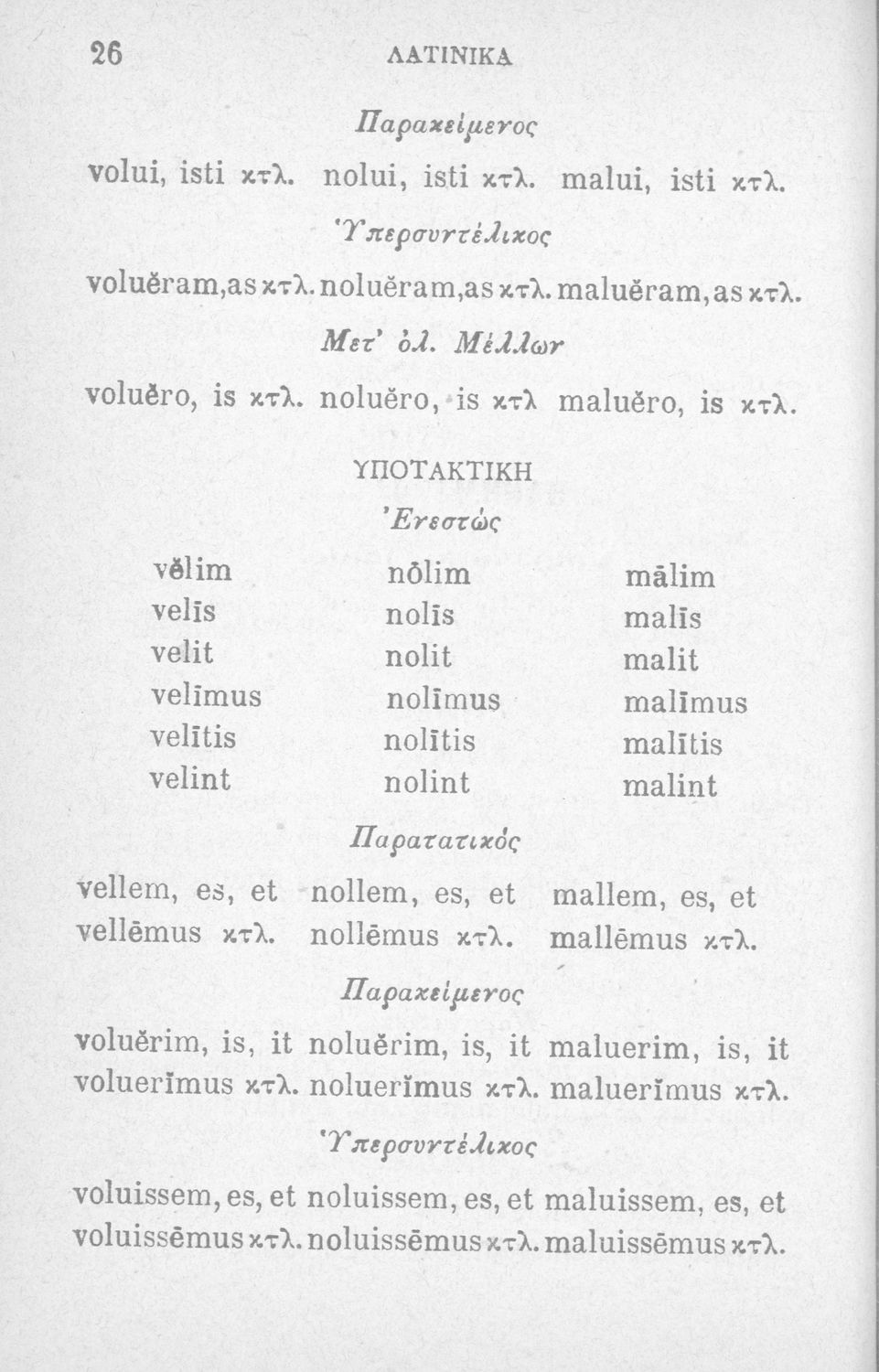 Σχολικό εγχειρίδιο Λατινικών Α΄, Β΄, Γ' Γυμνασίου που περιλαμβάνει γραμματική και συντακτικό και είναι χωρισμένο σε φθογγολογικό, τυπολογικό και ετυμολογικό μέρος.