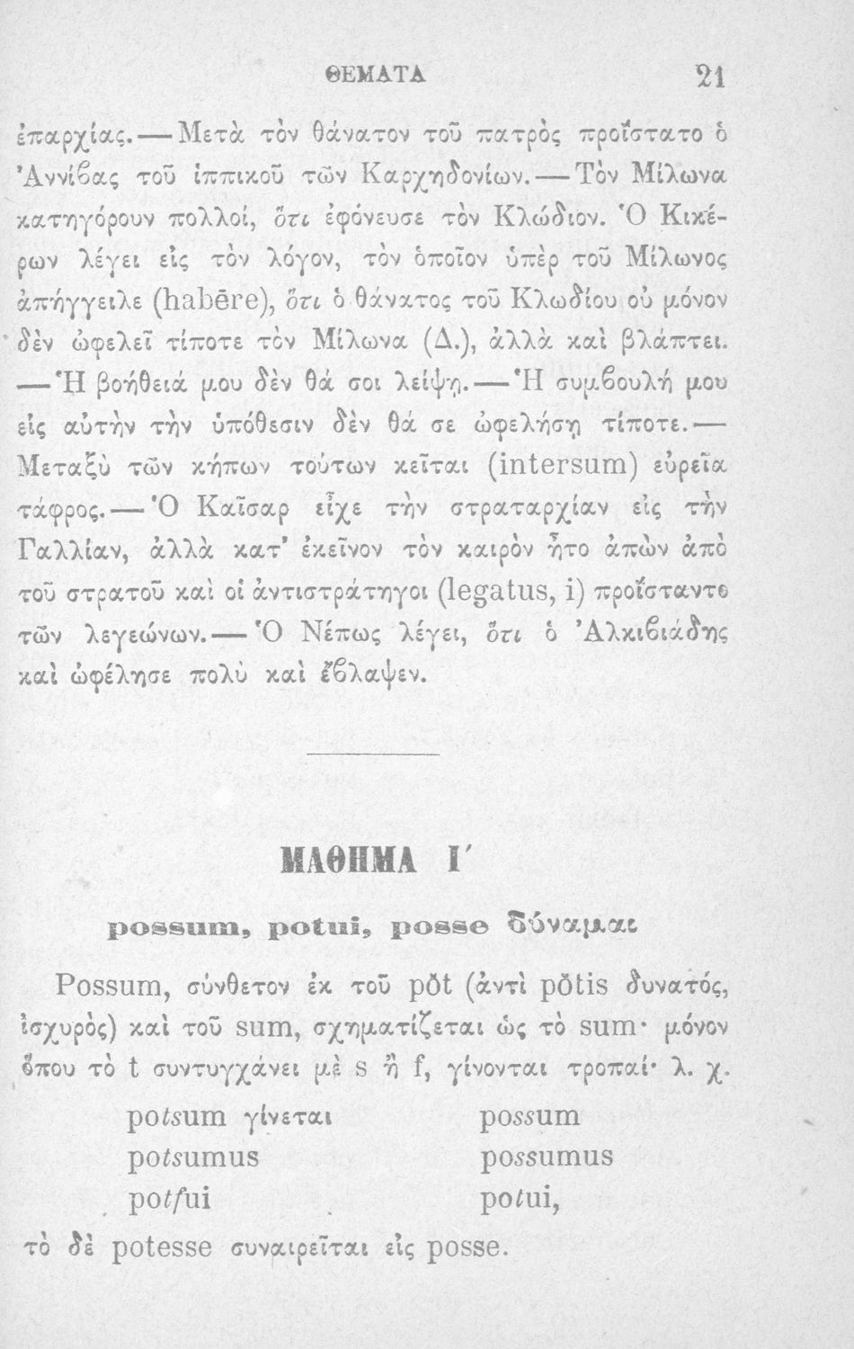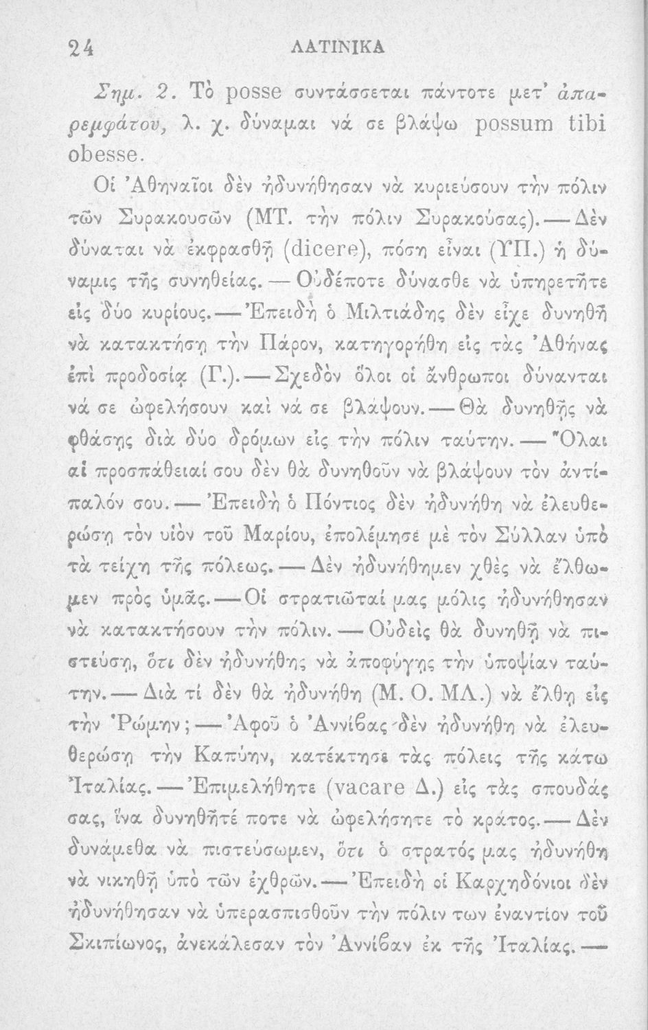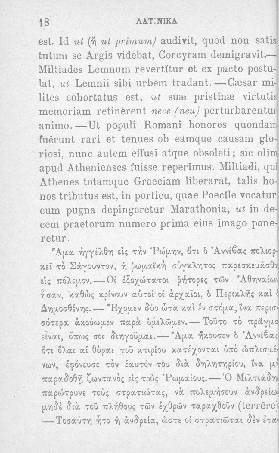 Σχολικό εγχειρίδιο Λατινικών που περιλαμβάνει γραμματική, συντακτικό, κείμενα και λεξιλόγιο.