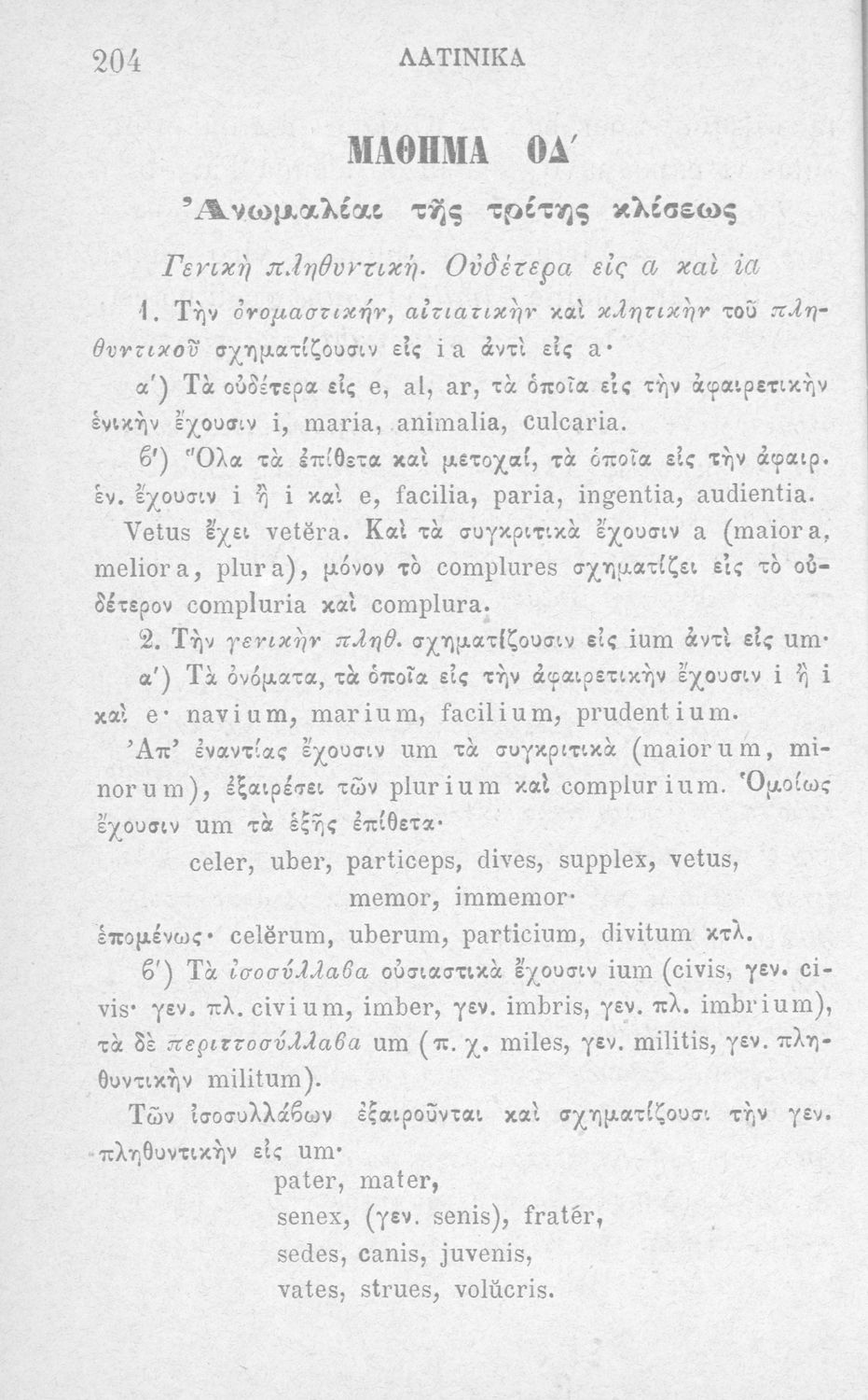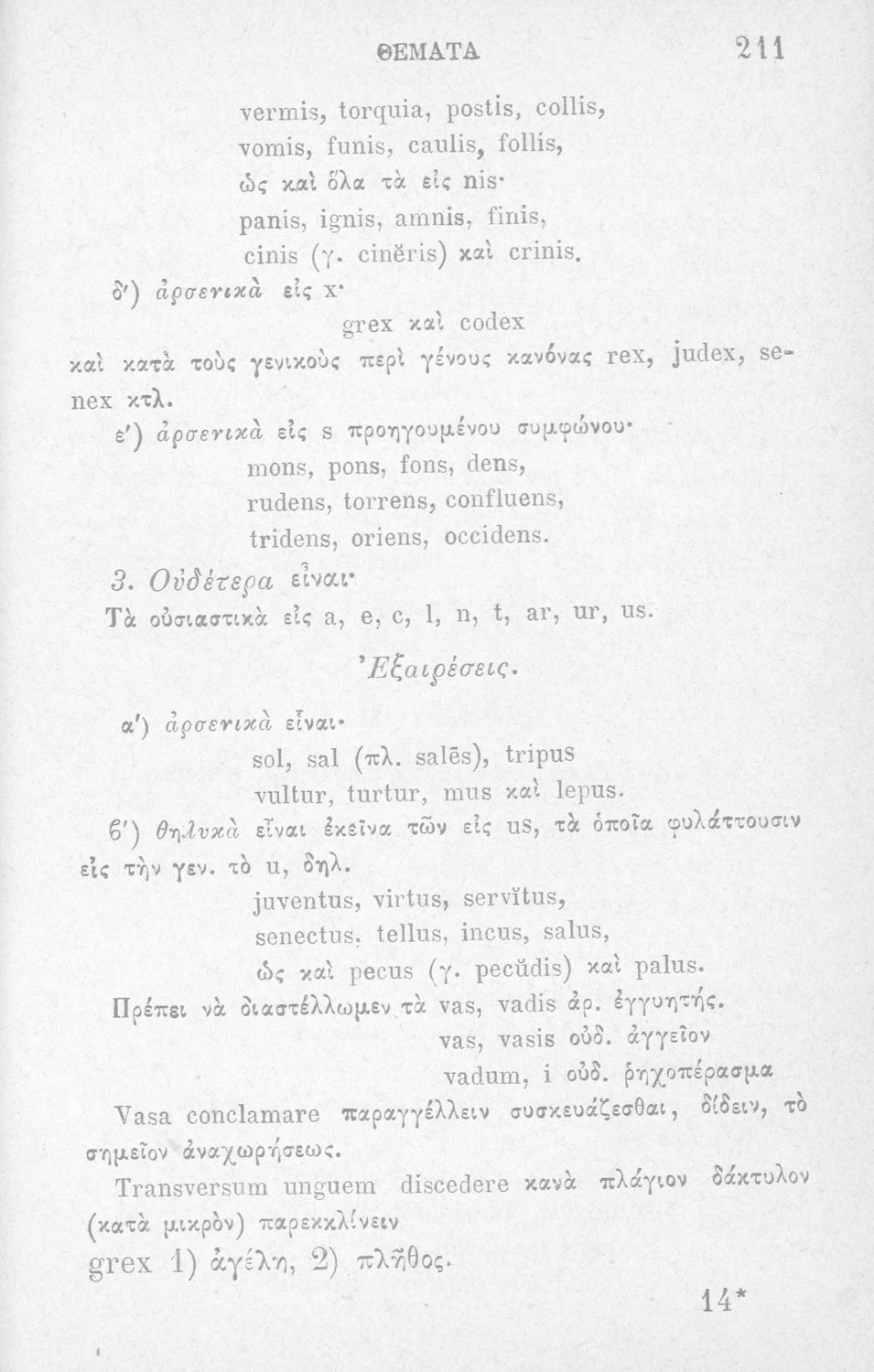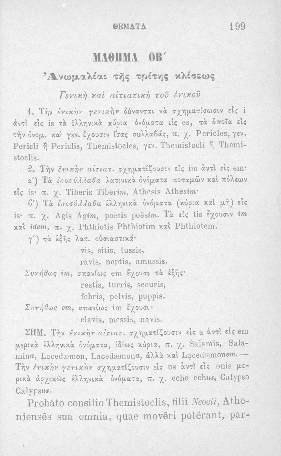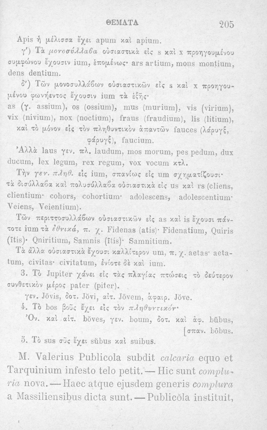 Σχολικό εγχειρίδιο Λατινικών Α΄, Β΄, Γ' Γυμνασίου που περιλαμβάνει γραμματική και συντακτικό και είναι χωρισμένο σε φθογγολογικό, τυπολογικό και ετυμολογικό μέρος.