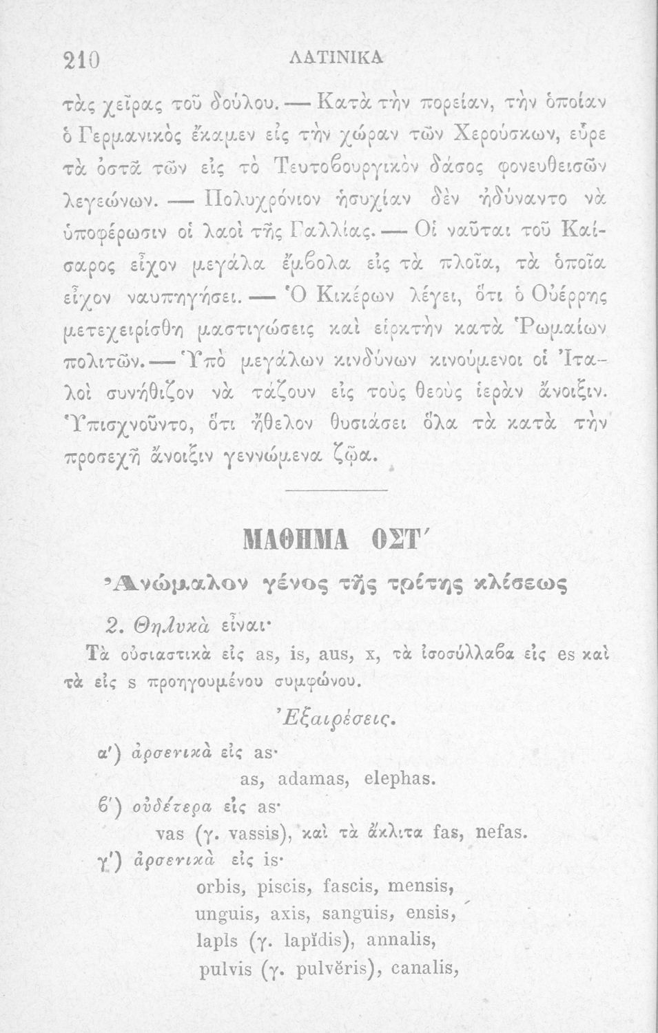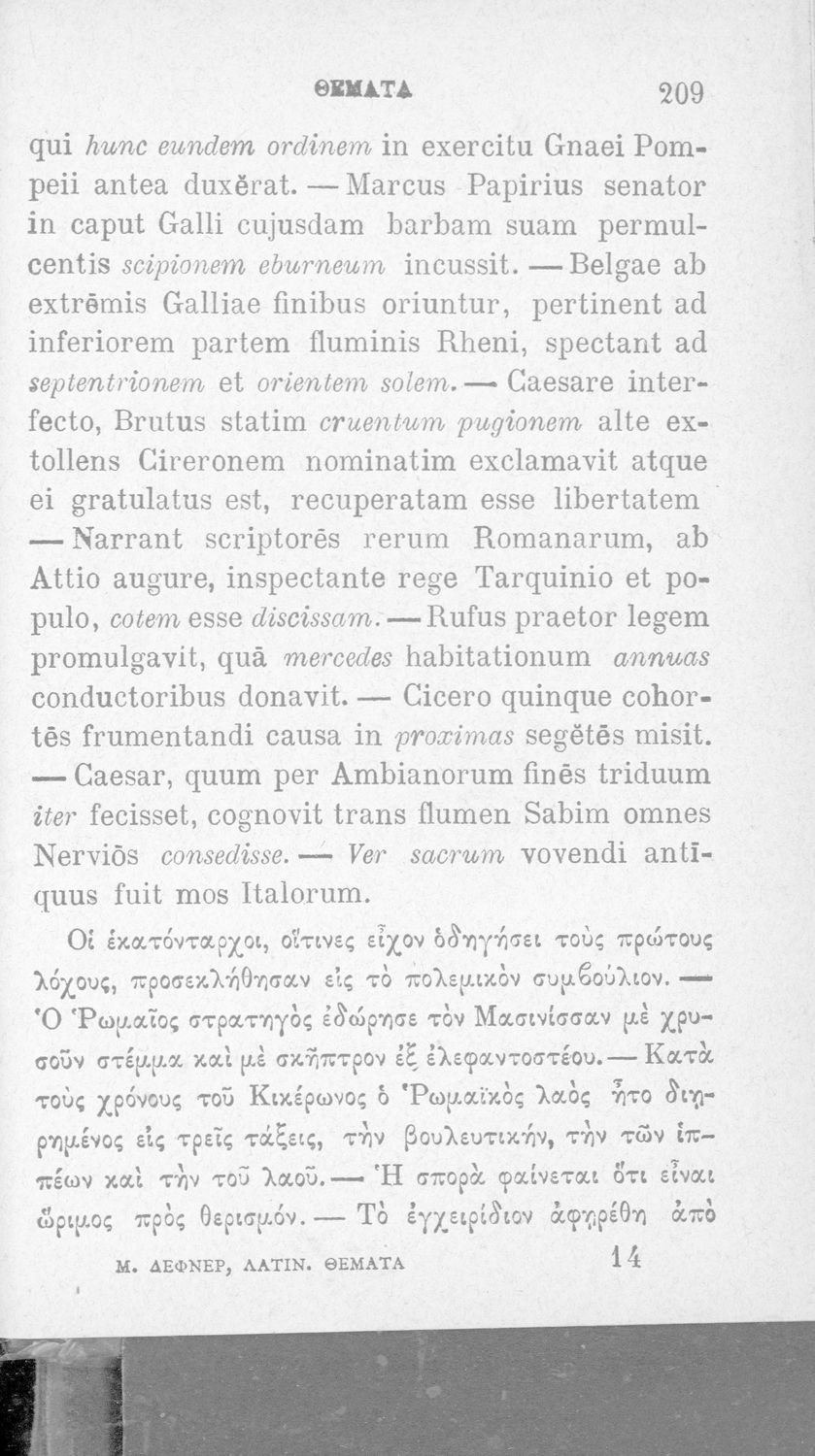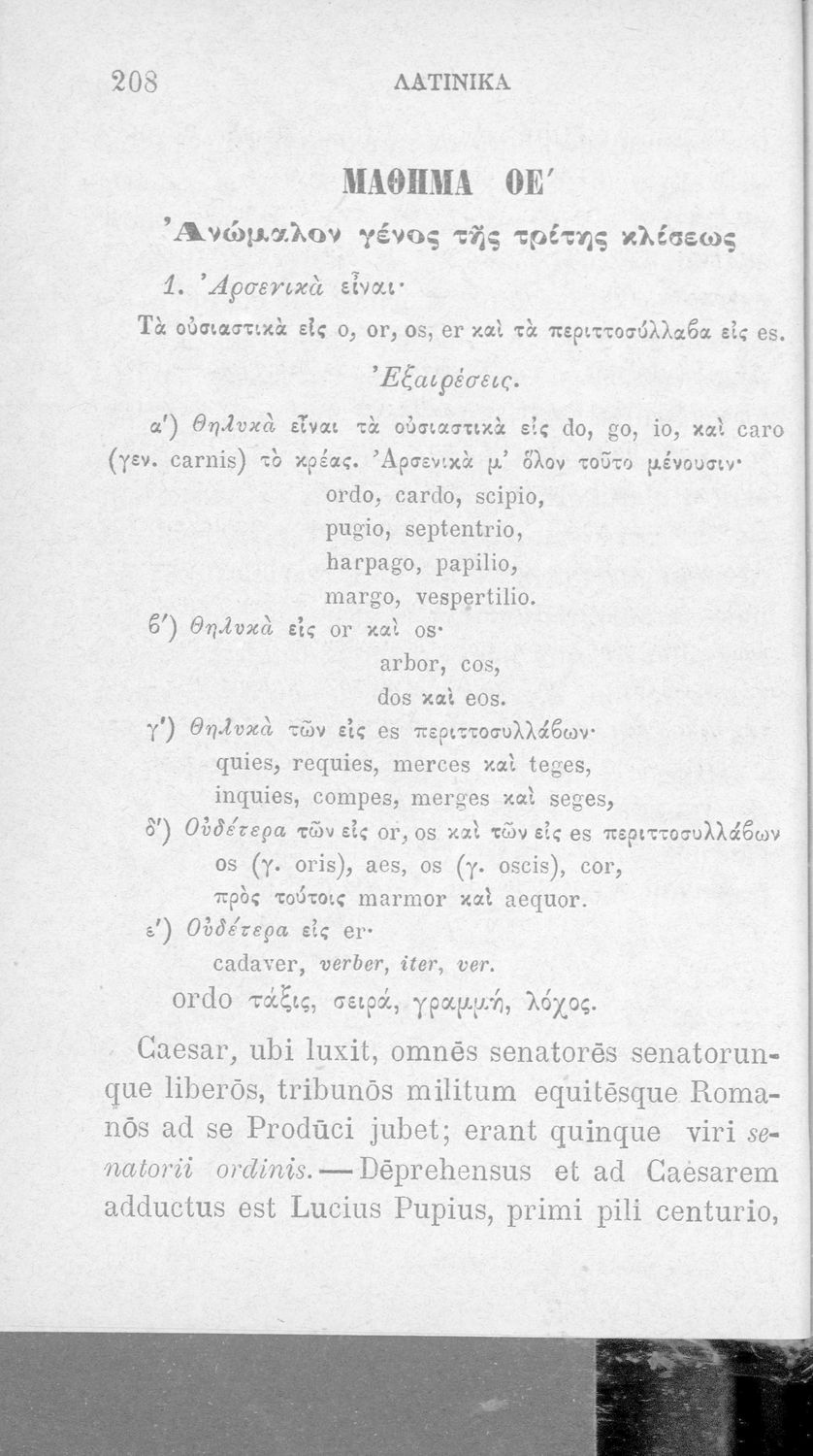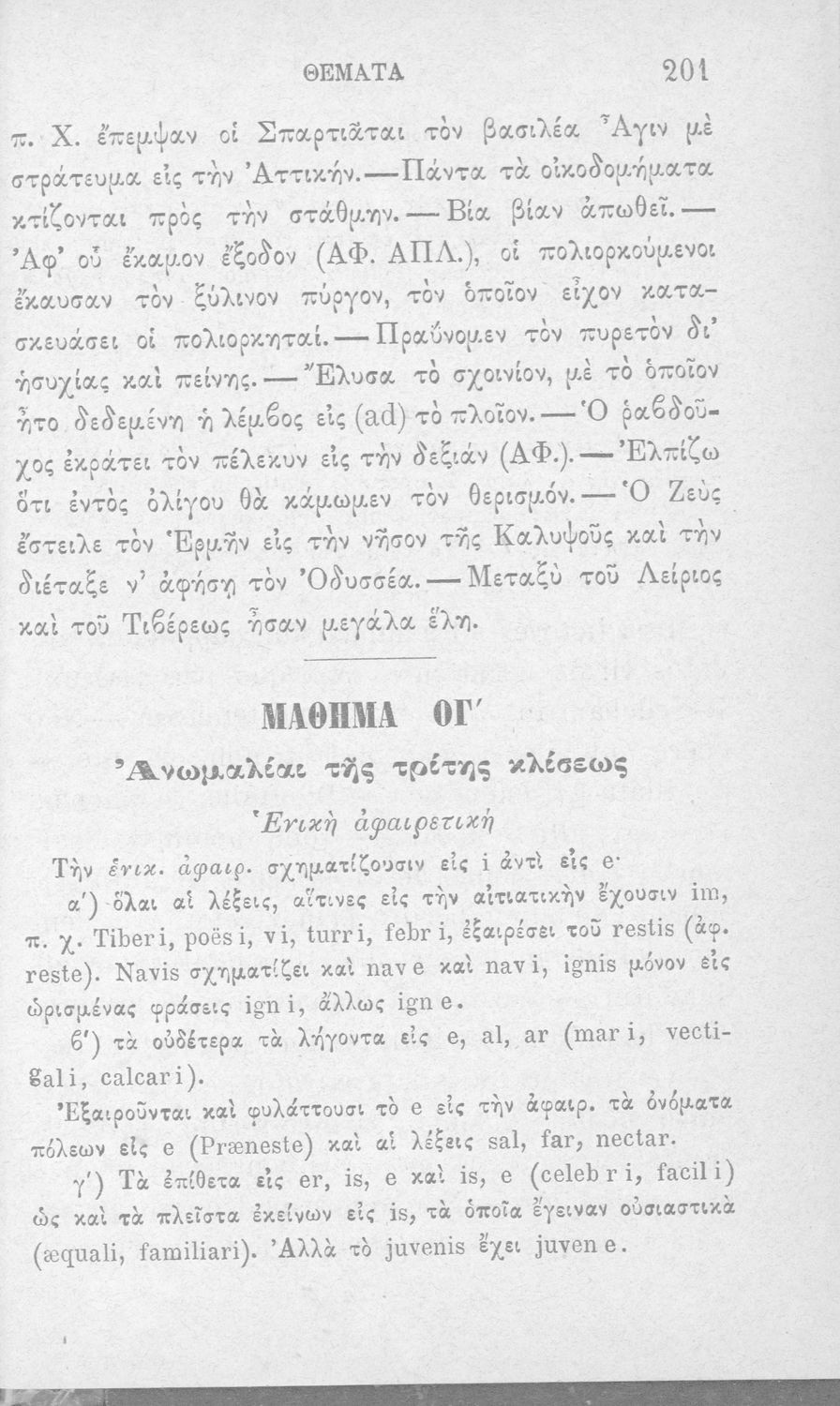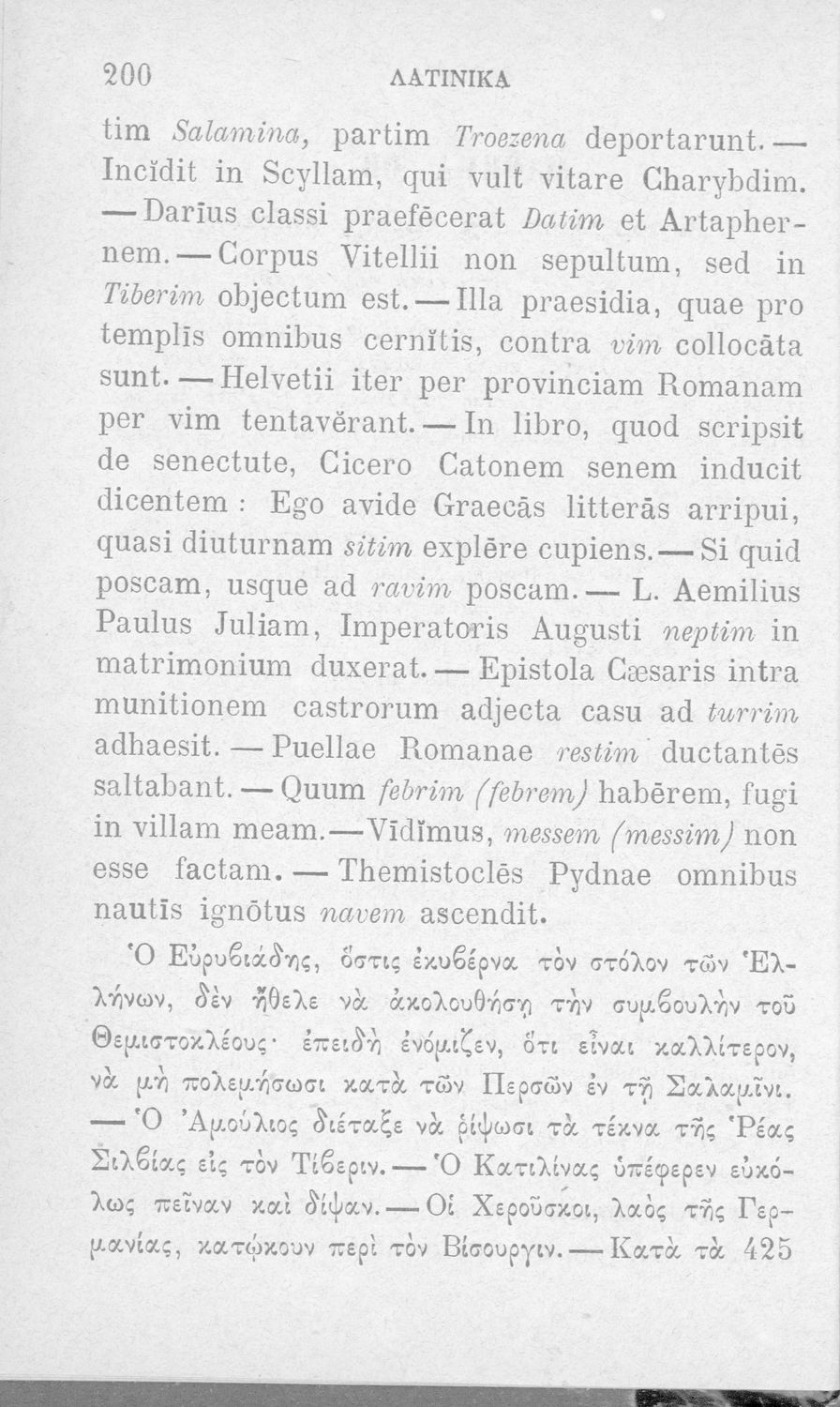 Σχολικό εγχειρίδιο Λατινικών που περιλαμβάνει γραμματική, συντακτικό, κείμενα και λεξιλόγιο.