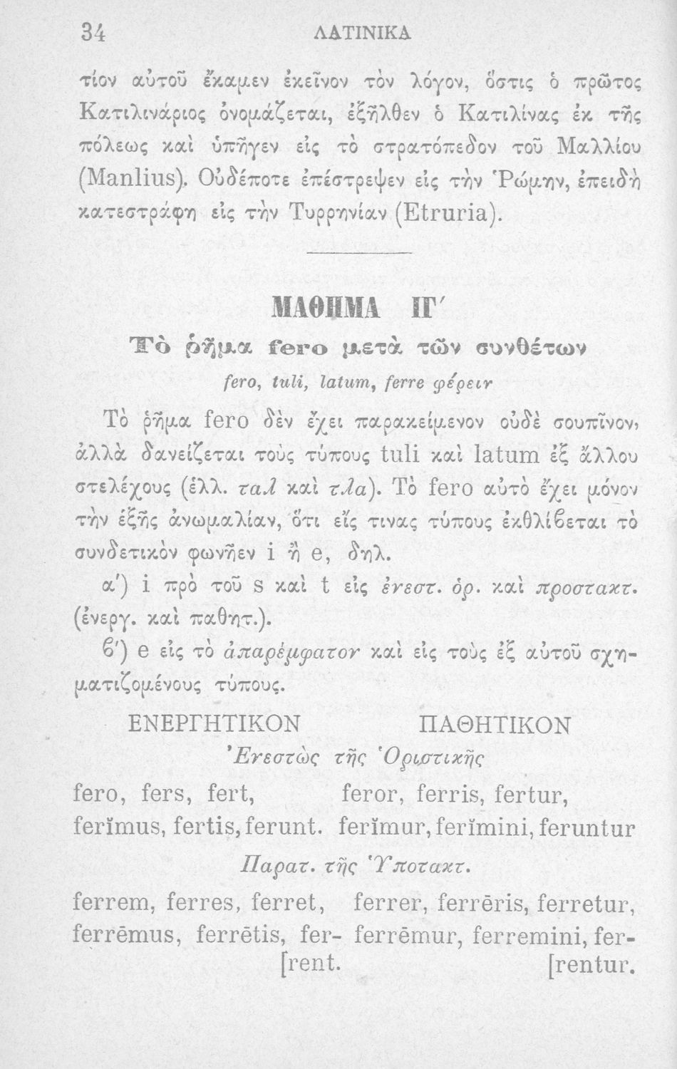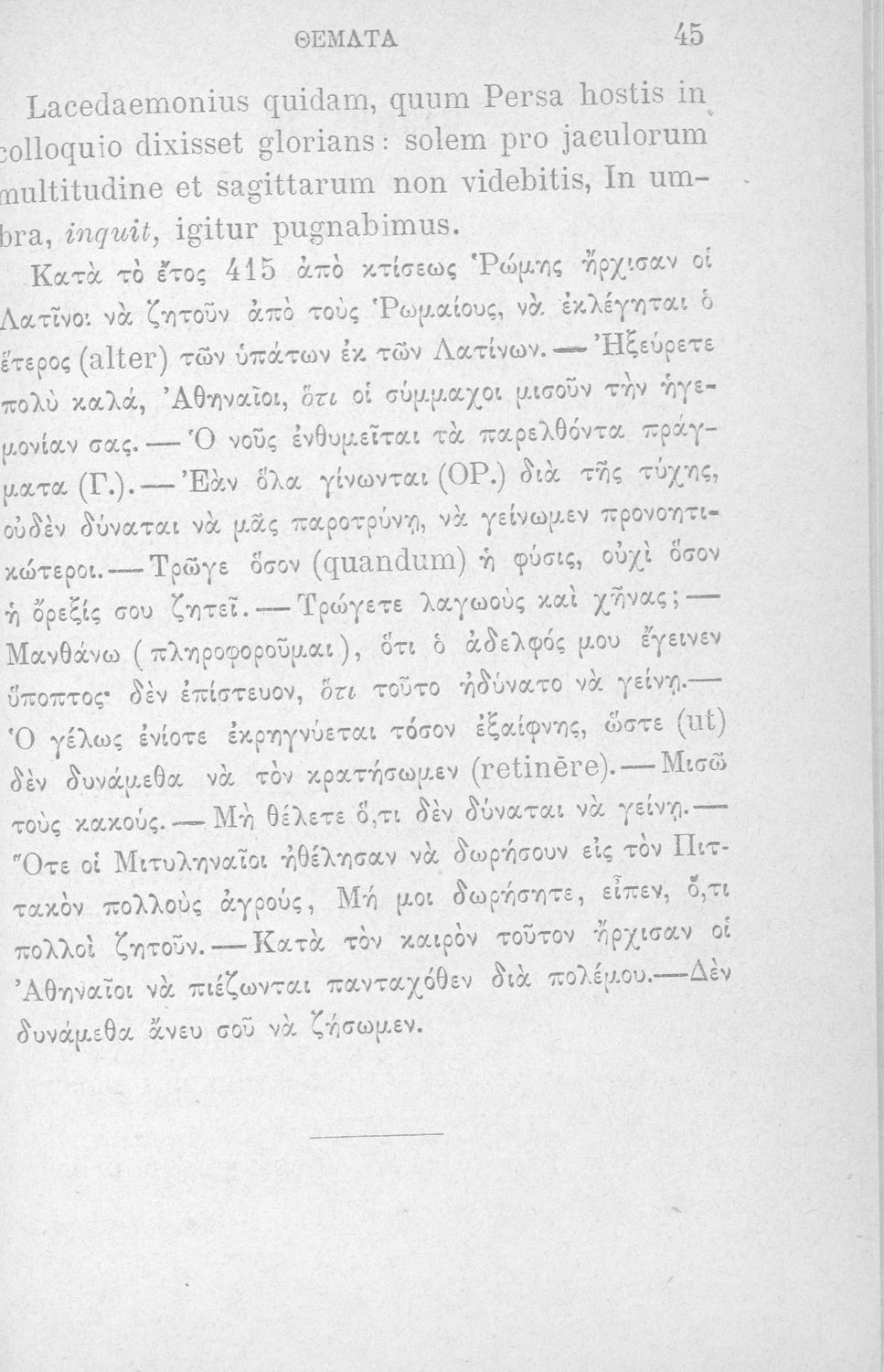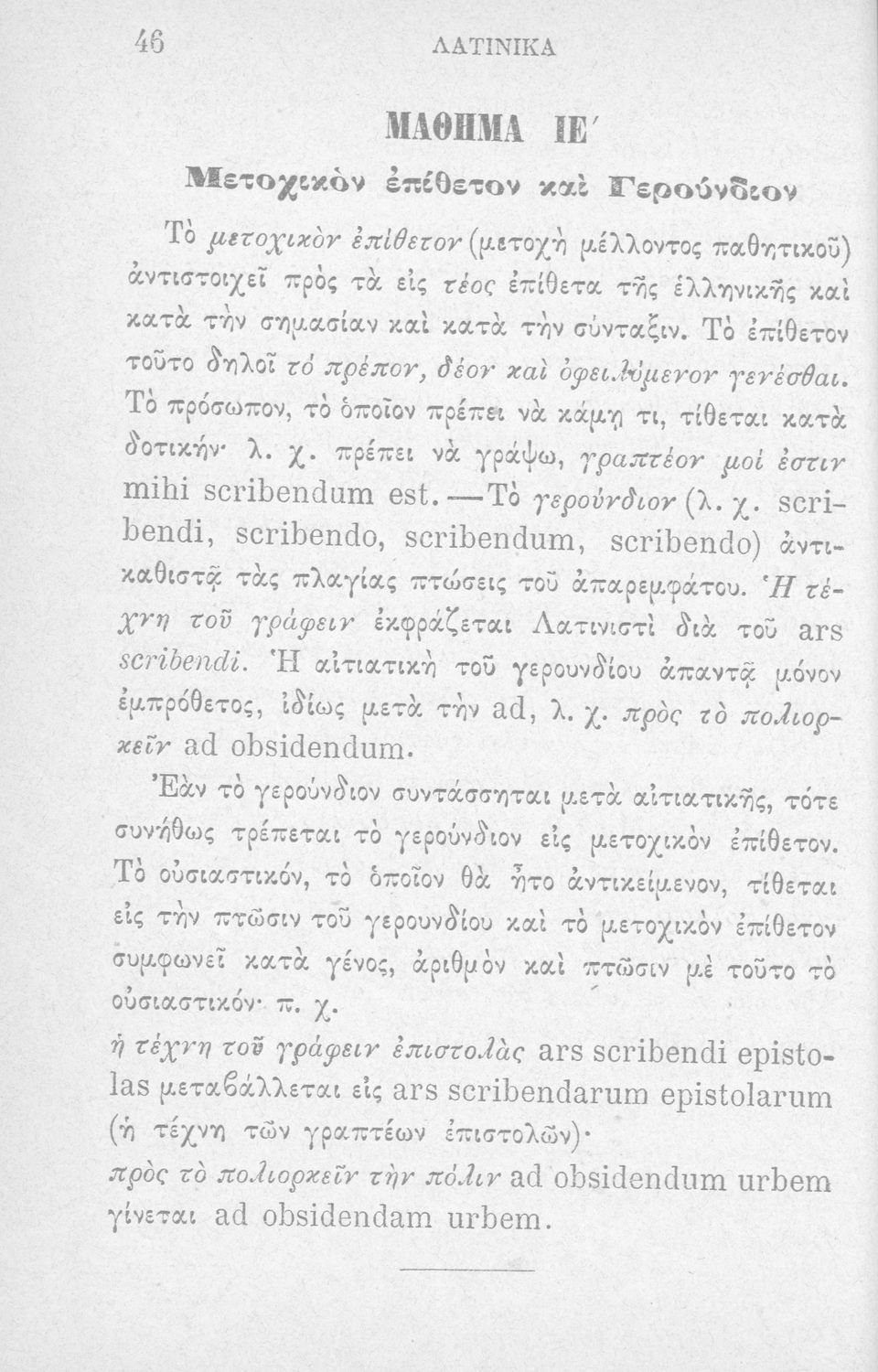 Σχολικό εγχειρίδιο Λατινικών που περιλαμβάνει γραμματική, συντακτικό, κείμενα και λεξιλόγιο.