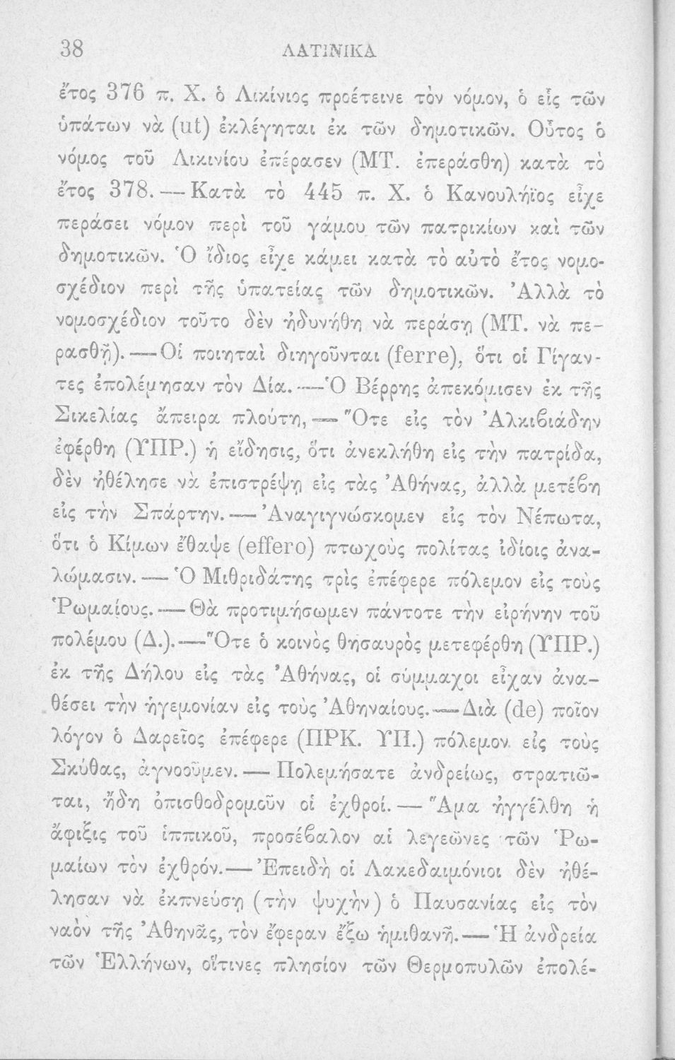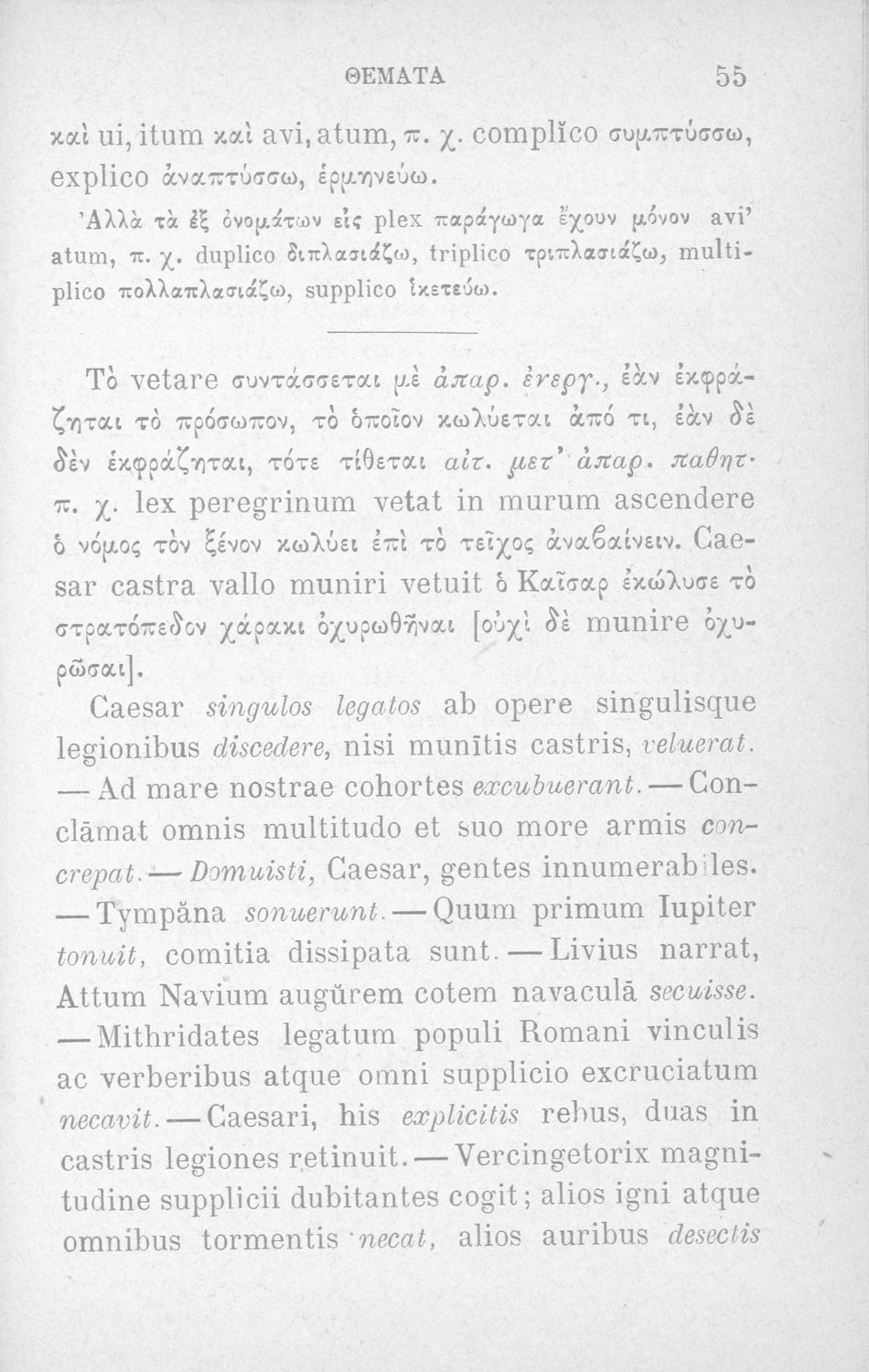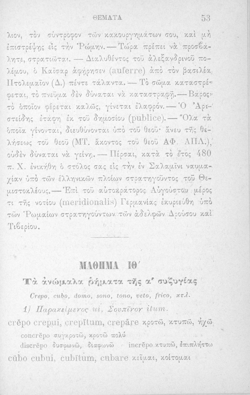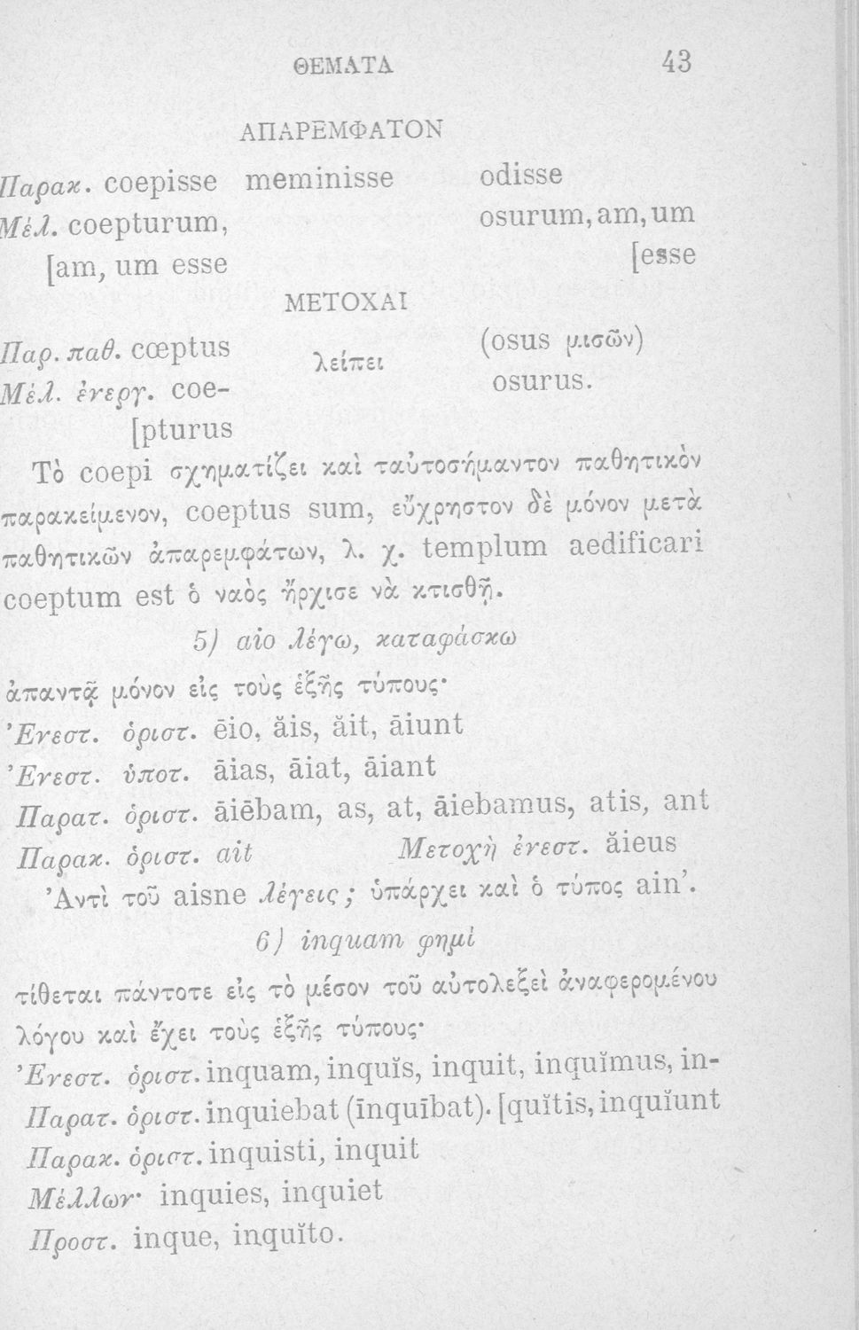 Σχολικό εγχειρίδιο Λατινικών Α΄, Β΄, Γ' Γυμνασίου που περιλαμβάνει γραμματική και συντακτικό και είναι χωρισμένο σε φθογγολογικό, τυπολογικό και ετυμολογικό μέρος.