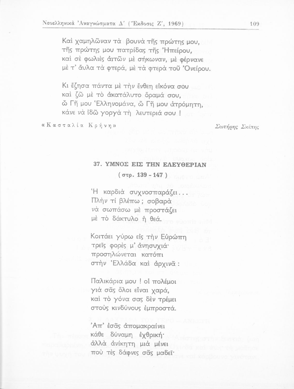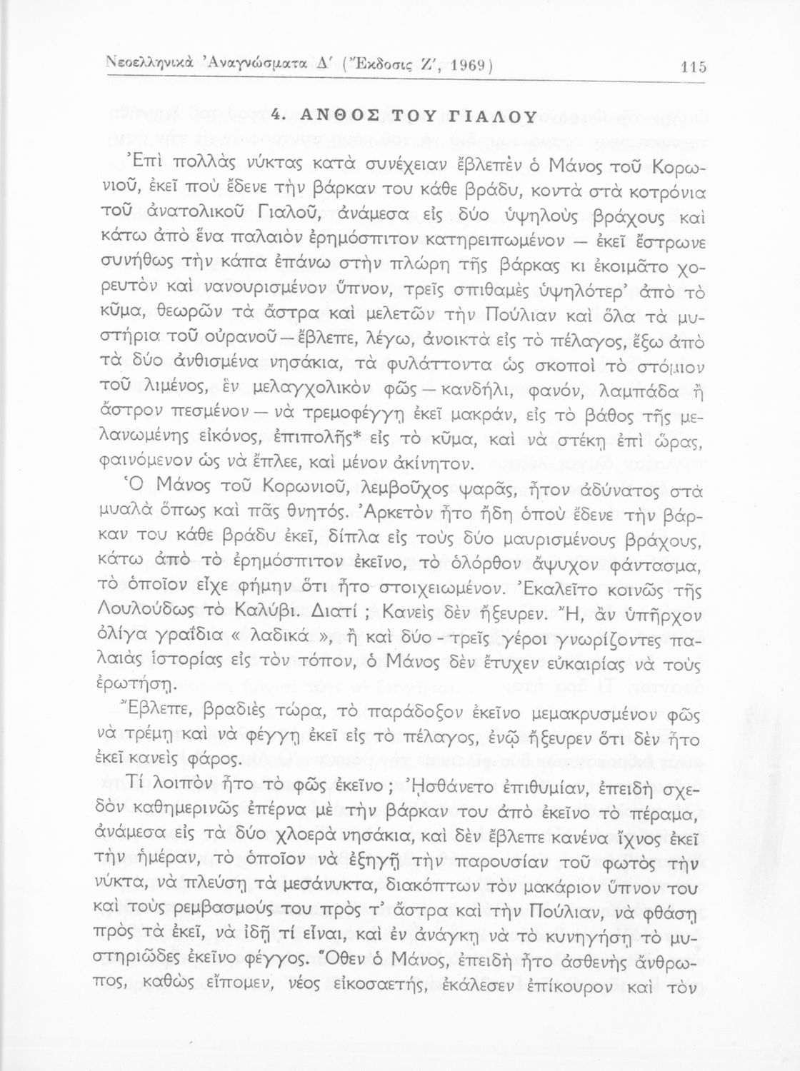 Σχολικό εγχειρίδιο Νέων Ελληνικών Δ' Γυμνασίου που περιλαμβάνει πεζά, ποιήματα και παροιμίες Ελλήνων συγγραφέων εμπνευσμένα από την θρησκευτική και κοινωνική ζωή, τη βυζαντινή ιστορία, την αρχαία και σύγχρονη ελληνική ιστορία, και την ελληνική φύση. Περιέχει παράρτημα με βιογραφίες των συγγραφέων και λεξιλόγιο.