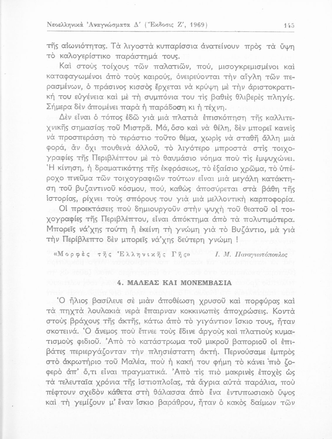 Σχολικό εγχειρίδιο Νέων Ελληνικών Δ' Γυμνασίου που περιλαμβάνει πεζά, ποιήματα και παροιμίες Ελλήνων συγγραφέων εμπνευσμένα από την θρησκευτική και κοινωνική ζωή, τη βυζαντινή ιστορία, την αρχαία και σύγχρονη ελληνική ιστορία, και την ελληνική φύση. Περιέχει παράρτημα με βιογραφίες των συγγραφέων και λεξιλόγιο.