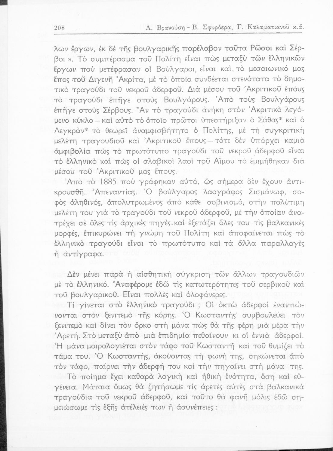 LDR 01532 2200205 4500 035 ## _a01-42291 040 ## _aΙνστιτούτο Εκπαιδευτικής Πολιτικής 041 ## _ael 100 ## _aΛ. Βρανούσης _aΒ. Σφυρόερας _aΓ. Καλαματιανός _aΚ. Ρωμαίος _aΠ. Πάρρης 110 ## _a42291 245 0# _aΝεοελληνικά αναγνώσματα Δ΄ Γυμνασίου 260 ## _aΑθήνα _bΟργανισμός Εκδόσεως Διδακτικών Βιβλίων _c1969 300 ## _a272 _bΦωτογραφίες και σκίτσα (ασπρόμαυρα) 520 ## _aΣχολικό εγχειρίδιο Νέων Ελληνικών Δ' Γυμνασίου που περιλαμβάνει πεζά, ποιήματα και παροιμίες Ελλήνων συγγραφέων εμπνευσμένα από την θρησκευτική και κοινωνική ζωή, τη βυζαντινή ιστορία, την αρχαία και σύγχρονη ελληνική ιστορία, και την ελληνική φύση. Περιέχει παράρτημα με βιογραφίες των συγγραφέων και λεξιλόγιο. 521 ## _aΔ' Γυμνασίου 522 ## _aΕλλάδα 546 ## _aΚαθαρεύουσα / Απλή καθαρεύουσα / Δημοτική 563 ## _aΜαλακό Εξώφυλλο 650 #4 _aΠαλαμάς _aΠαπαδιαμάντης _aΠαπαρρηγόπουλος _aΣολωμός 700 ## _aΚ. Σταυρίδης