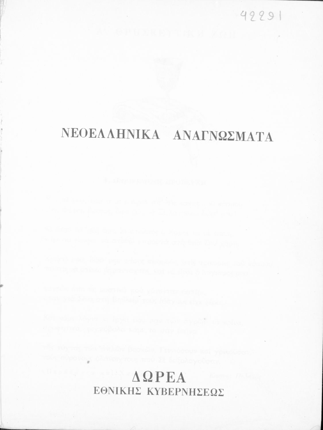 Κωδικός αναγνώρισης: 01-42291 Τίτλος: Νεοελληνικά αναγνώσματα Δ΄ Γυμνασίου Συγγραφέας: Λ. Βρανούσης, Β. Σφυρόερας, Γ. Καλαματιανός, Κ. Ρωμαίος, Π. Πάρρης Εικονογράφος: Κ. Σταυρίδης Μέγεθος και υπόστρωμα: Σχολικό εγχειρίδιο, μαλακό εξώφυλλο, 272 σελίδες. Φωτογραφίες και σκίτσα (ασπρόμαυρα). |