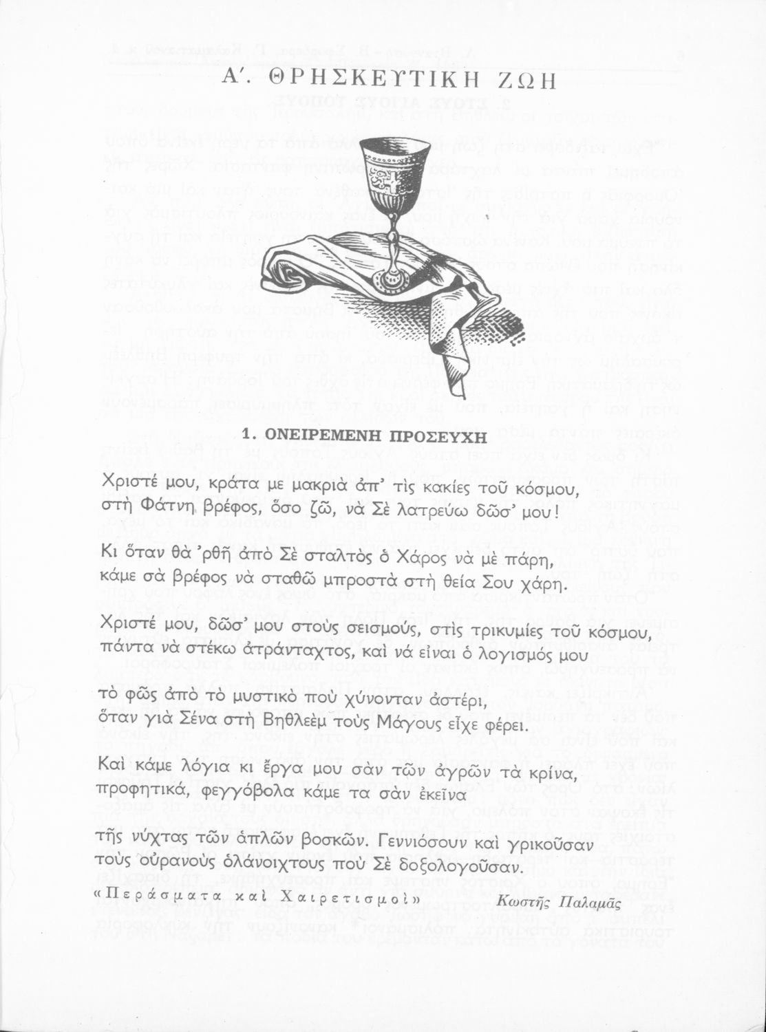 Σχολικό εγχειρίδιο Νέων Ελληνικών Δ' Γυμνασίου που περιλαμβάνει πεζά, ποιήματα και παροιμίες Ελλήνων συγγραφέων εμπνευσμένα από την θρησκευτική και κοινωνική ζωή, τη βυζαντινή ιστορία, την αρχαία και σύγχρονη ελληνική ιστορία, και την ελληνική φύση. Περιέχει παράρτημα με βιογραφίες των συγγραφέων και λεξιλόγιο.