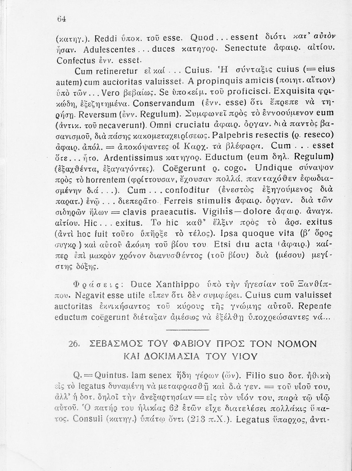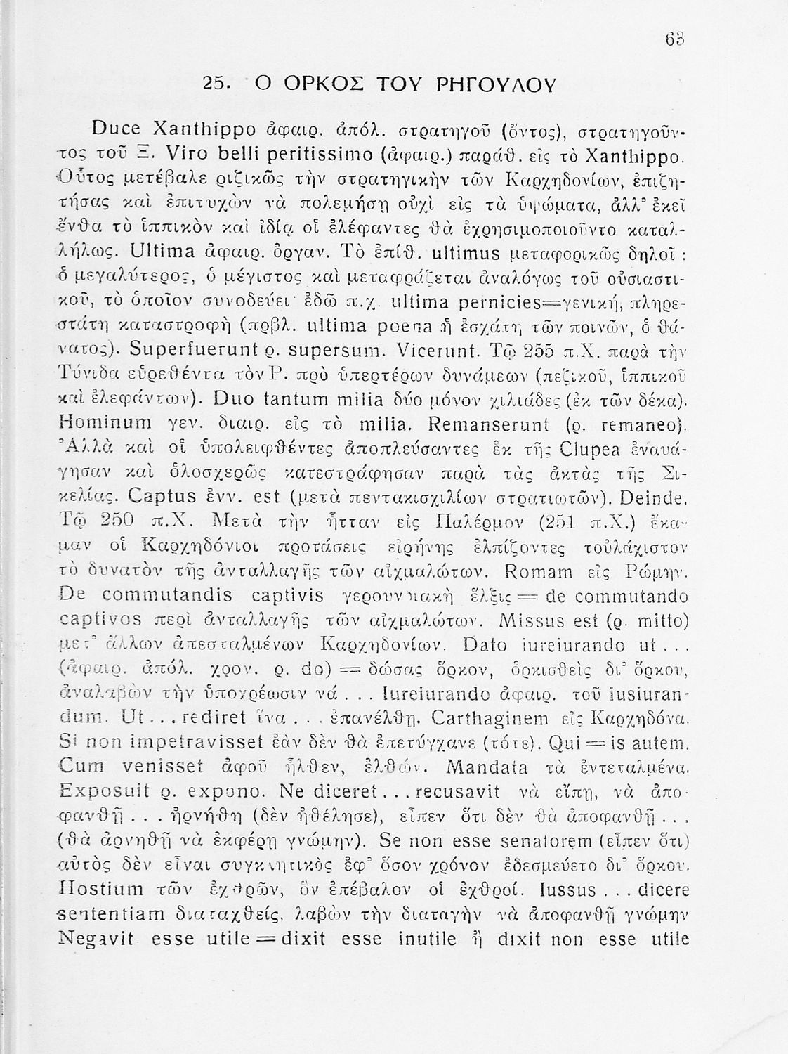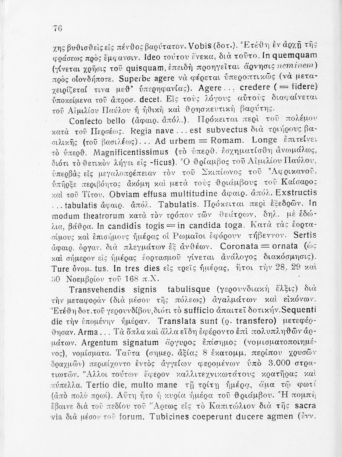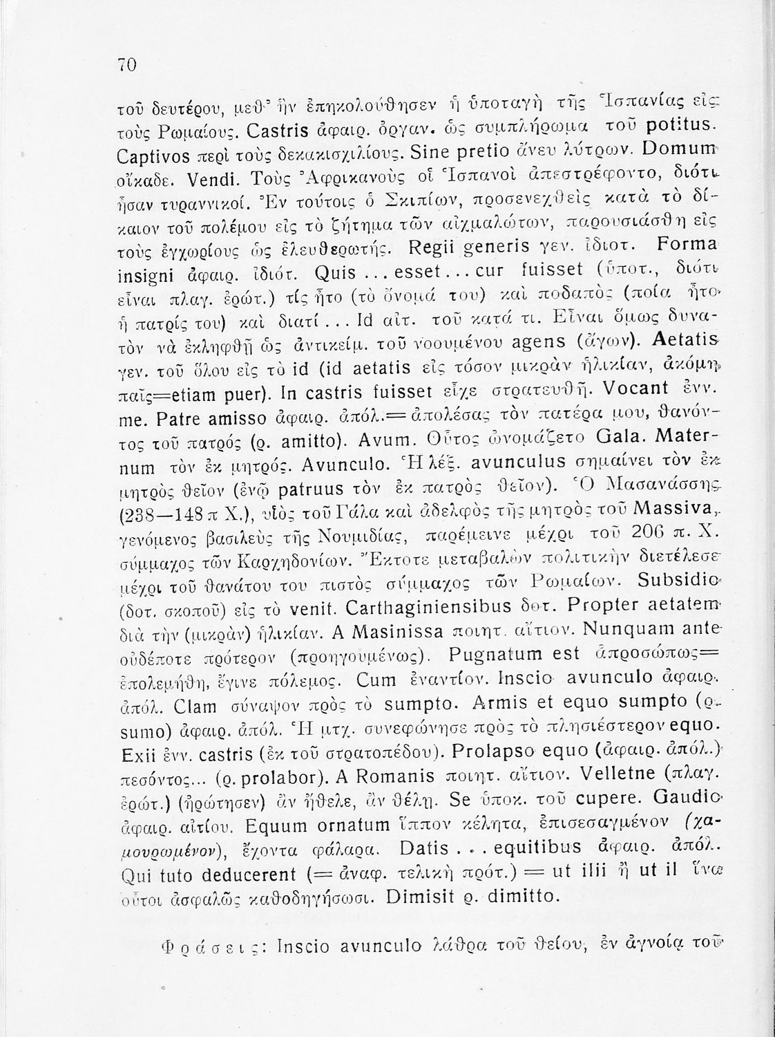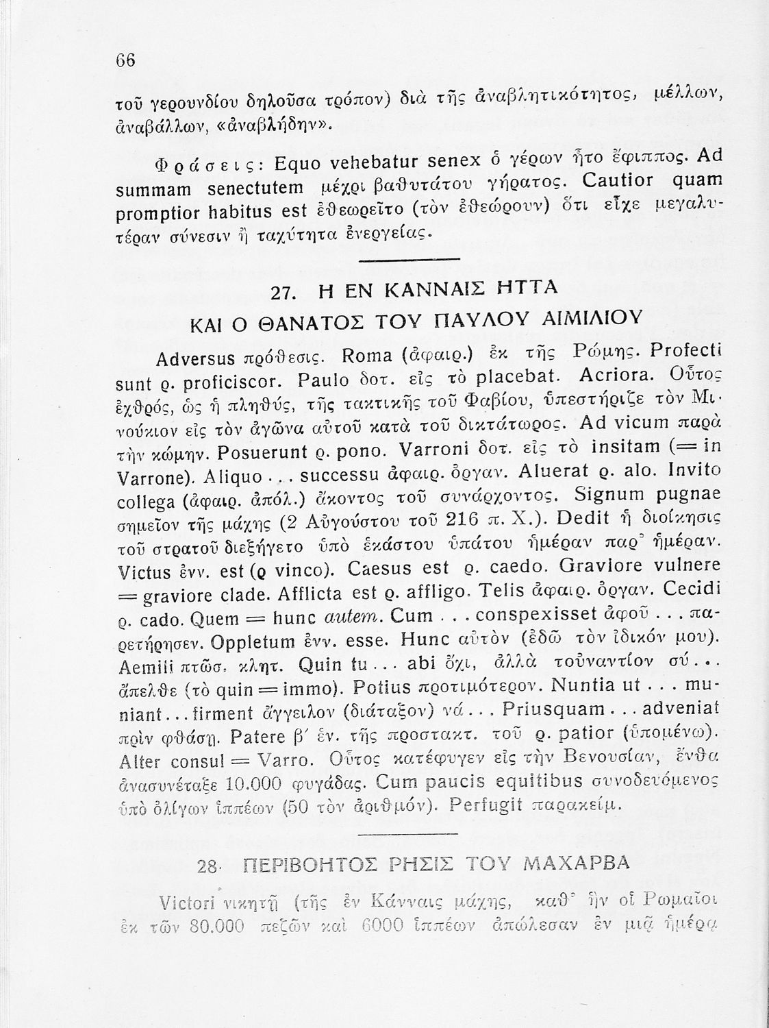 Βαθμίδα εκπαίδευσης: Δευτεροβάθμια Μάθημα: Λατινικά Γλώσσα: Καθαρεύουσα Παρουσίαση περιεχομένου: Σχολικό εγχειρίδιο Λατινικών που περιέχει σύντομο βιογραφικό σημείωμα του Lhomond, 64 αποσπάσματα από το βιβλίο του, ερμηνευτικές σημειώσεις και λεξιλόγιο. Παρουσιάζει βίους επιφανών Ρωμαίων από το 753 π.Χ μέχρι το 14 μ.Χ. Ο επιμελητής ήταν καθηγητής της Λατινικής Φιλολογίας στο Πανεπιστήμιο Αθηνών. |