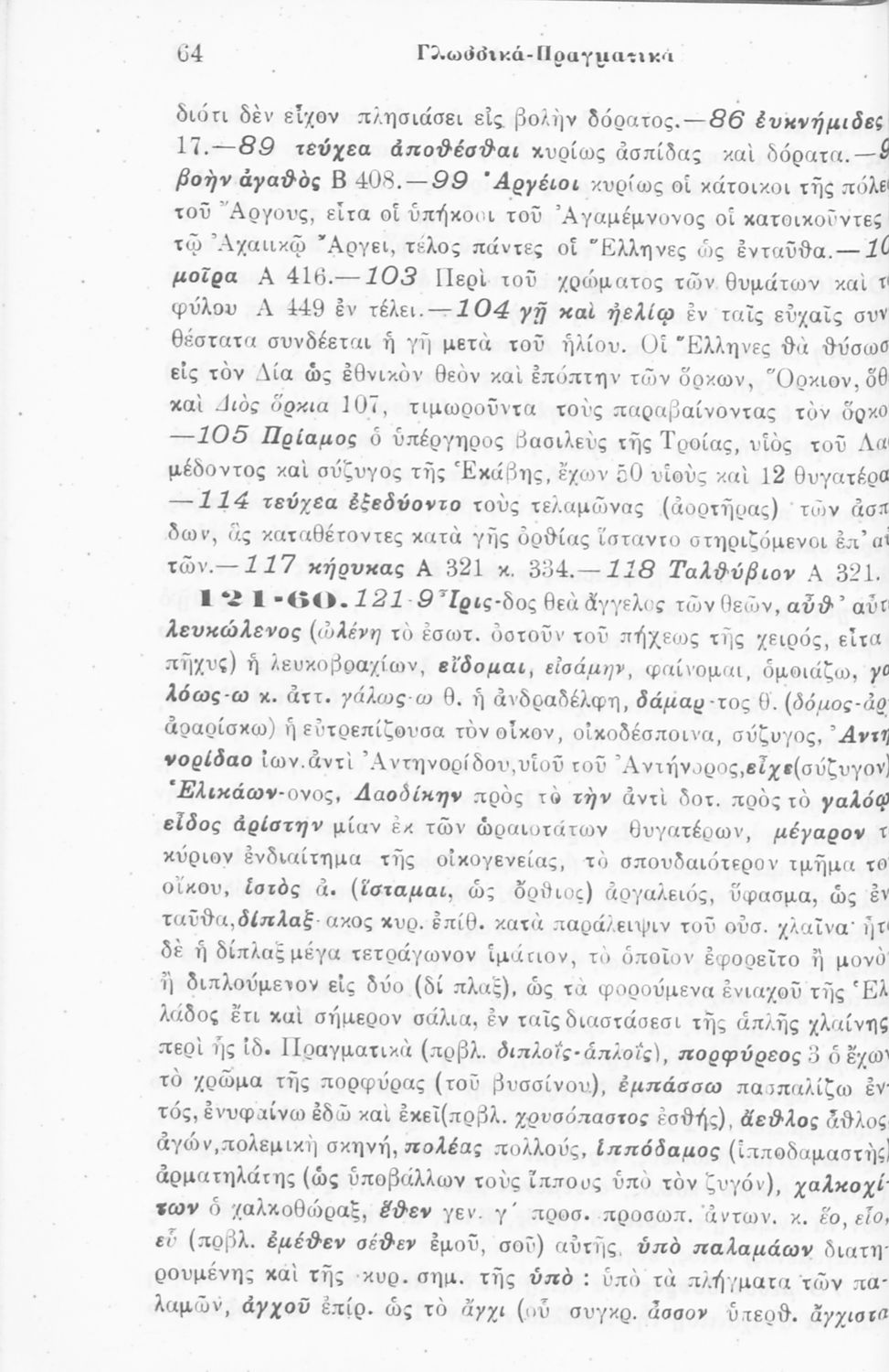 Σχολικό εγχειρίδιο της Δευτεροβάθμιας Εκπαίδευσης για το μάθημα των Αρχαίων Ελληνικών. Πρόκειται για το κείμενο της Ιλιάδας μεταφρασμένο, με πραγματολογικές παρατηρήσεις. Στο τέλος περιλαμβάνει λεξιλόγιο.