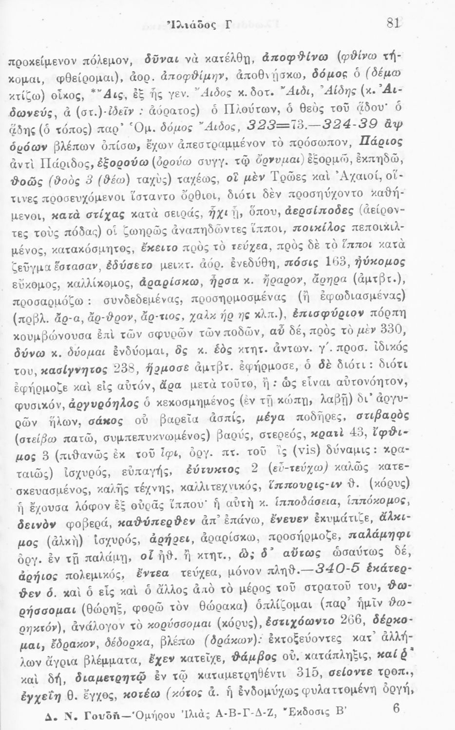 Μαθητικό βοήθημα του Γυμνασίου για το μάθημα των Αρχαίων Ελληνικών. Περιλαμβάνει τις ραψωδίες Α΄, Β΄, Γ΄, Δ΄, Ε΄, ερμηνευτικά σχόλια και πραγματολογικές παρατηρήσεις. Ο συγγραφέας ήταν Διευθυντής στην Βαρβάκειο πρότυπο σχολή.