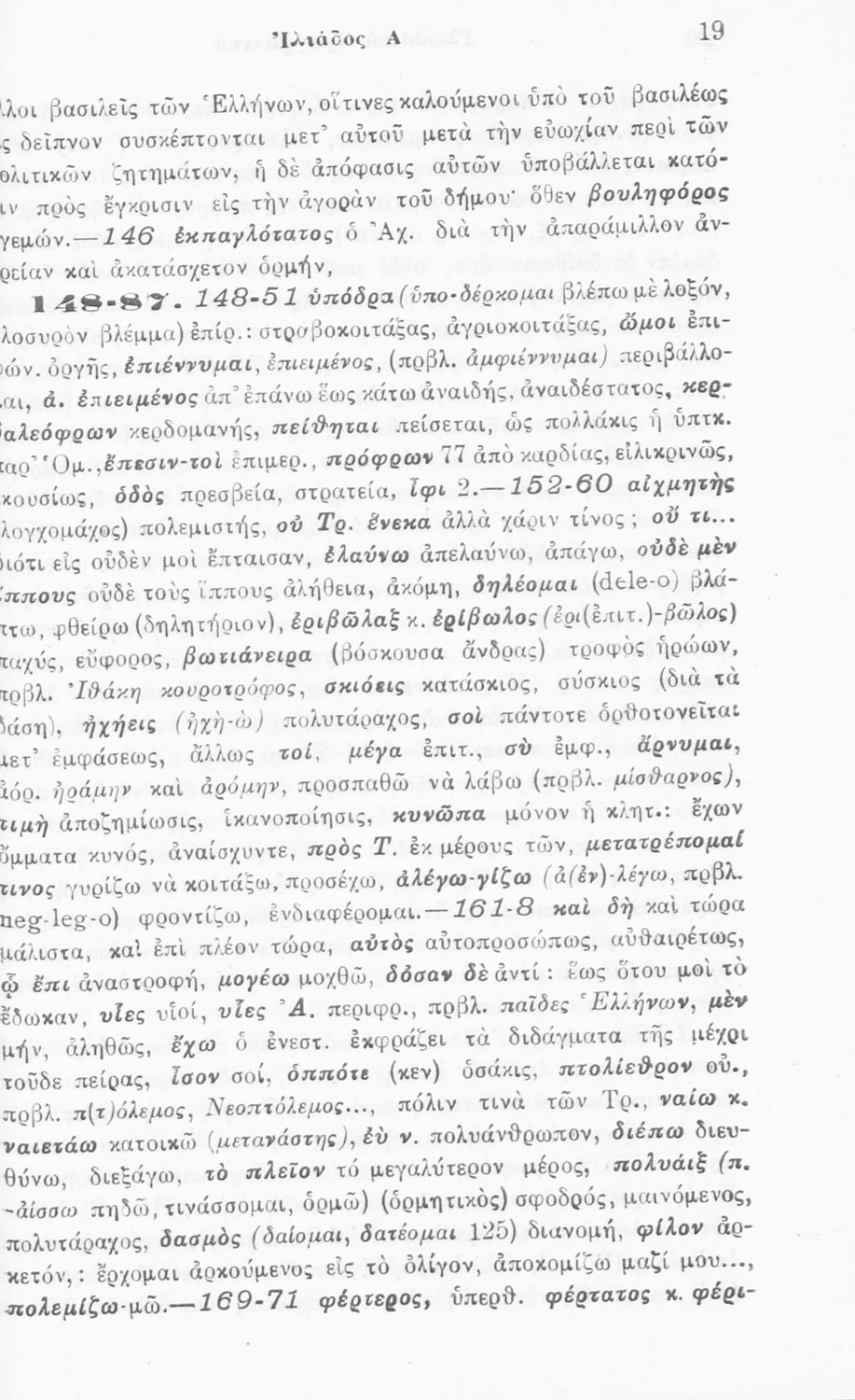 Μαθητικό βοήθημα του Γυμνασίου για το μάθημα των Αρχαίων Ελληνικών. Περιλαμβάνει τις ραψωδίες Α΄, Β΄, Γ΄, Δ΄, Ε΄, ερμηνευτικά σχόλια και πραγματολογικές παρατηρήσεις. Ο συγγραφέας ήταν Διευθυντής στην Βαρβάκειο πρότυπο σχολή.