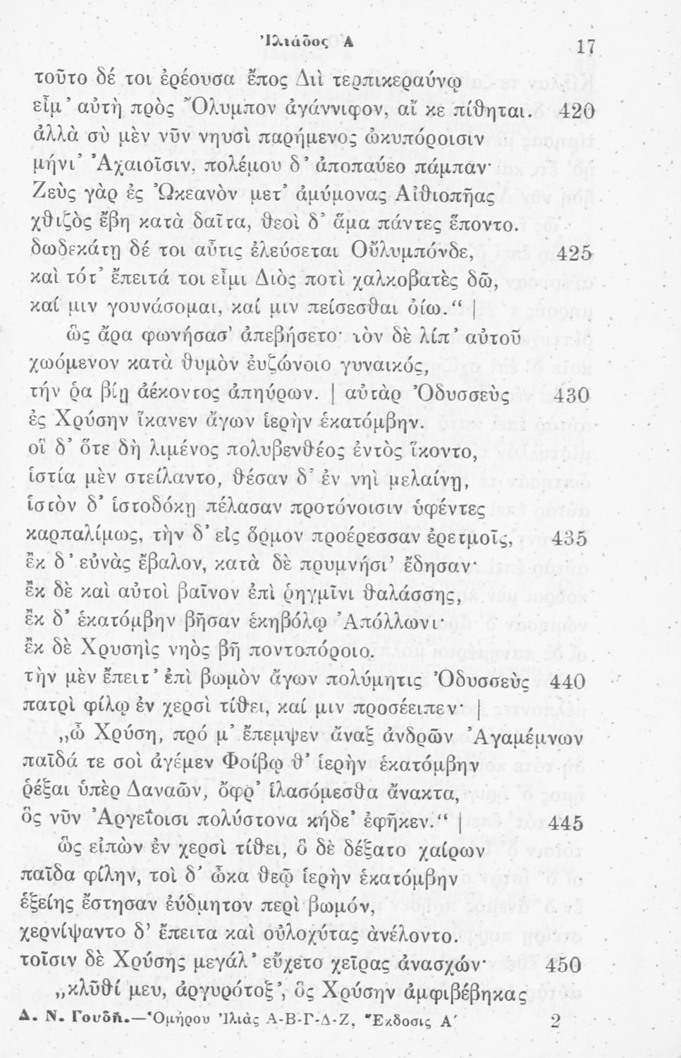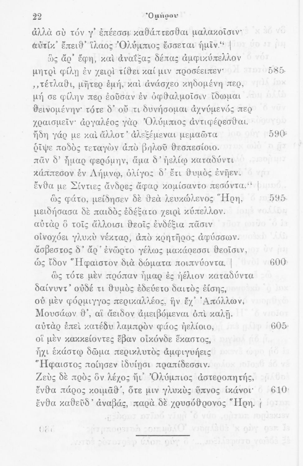 Μαθητικό βοήθημα του Γυμνασίου για το μάθημα των Αρχαίων Ελληνικών. Περιλαμβάνει τις ραψωδίες Α΄, Β΄, Γ΄, Δ΄, Ε΄, ερμηνευτικά σχόλια και πραγματολογικές παρατηρήσεις. Ο συγγραφέας ήταν Διευθυντής στην Βαρβάκειο πρότυπο σχολή.
