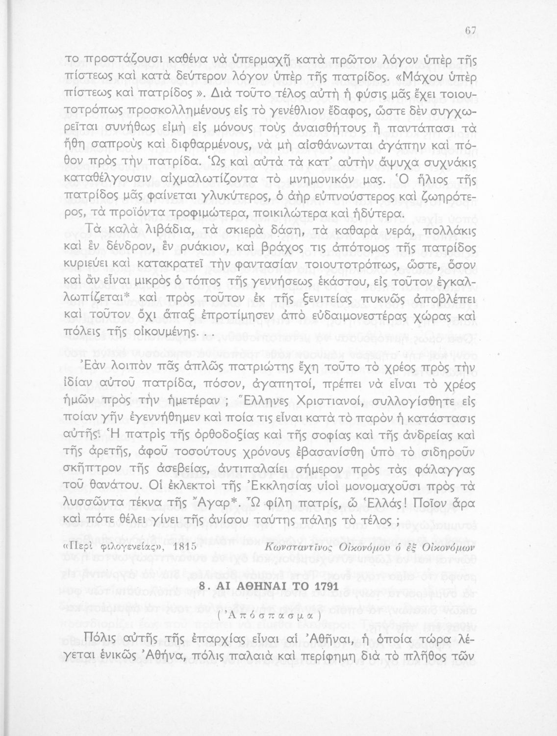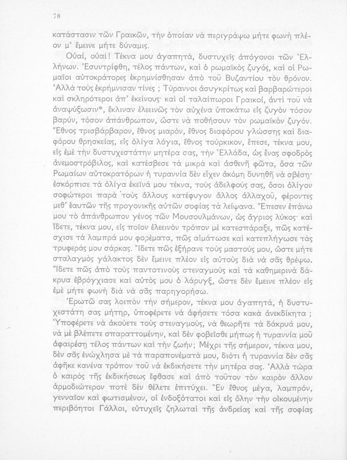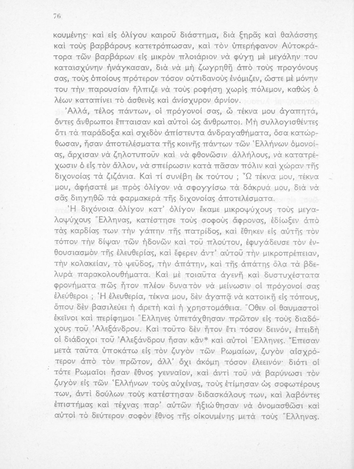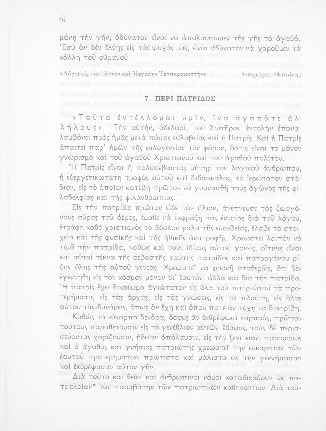 Σχολικό εγχειρίδιο Νέων Ελληνικών Ε΄ Γυμνασίου που περιέχει πεζά και ποιήματα συγγραφέων της βυζαντινής και μεταβυζαντινής περιόδου πατριωτικού και θρησκευτικού περιεχομένου. Περιλαμβάνει και κείμενα Ελλήνων συγγραφέων και δημοτικά τραγούδια πατριωτικού περιεχομένου και παράρτημα με βιογραφίες των συγγραφέων και λεξιλόγιο.
