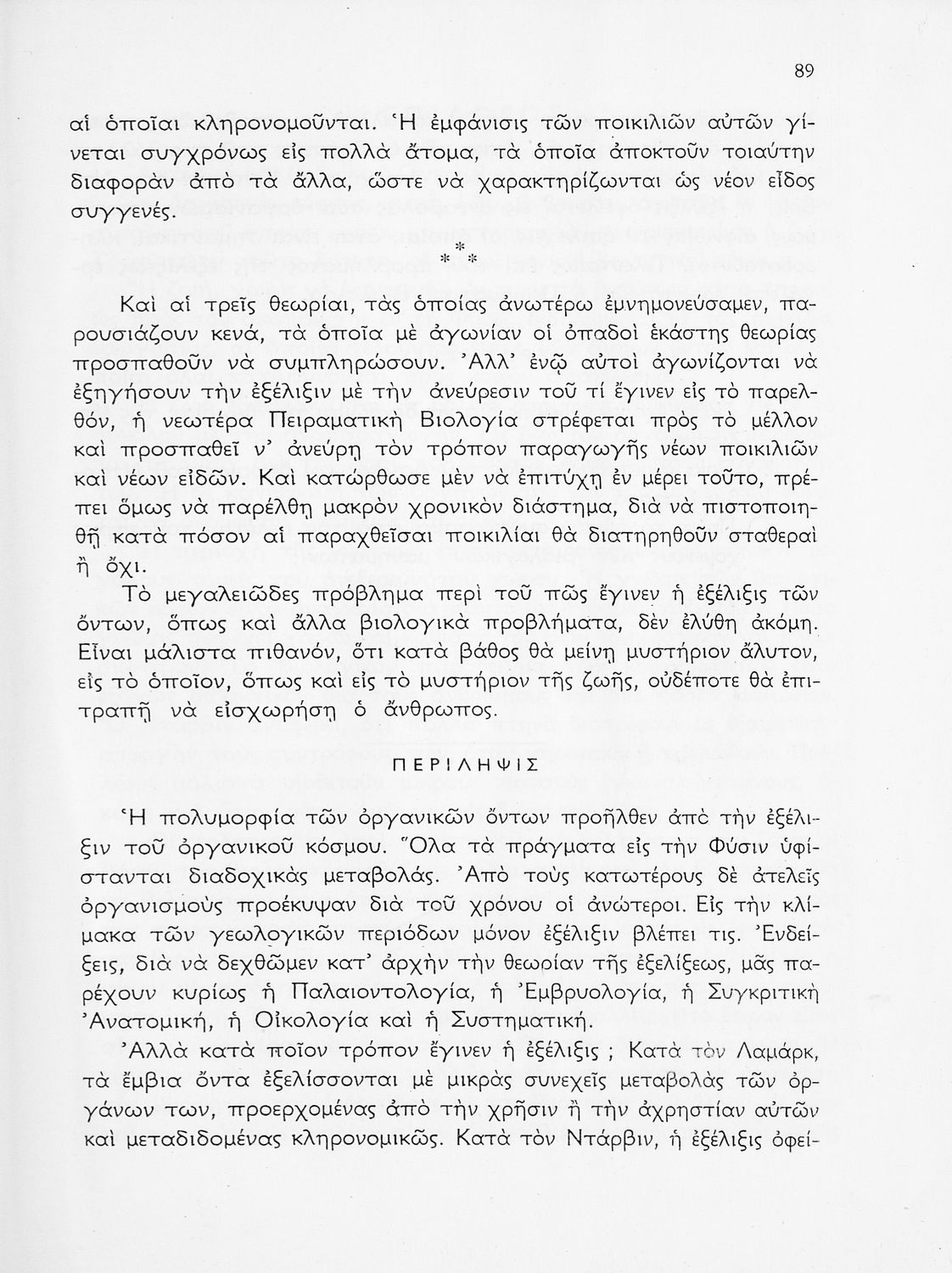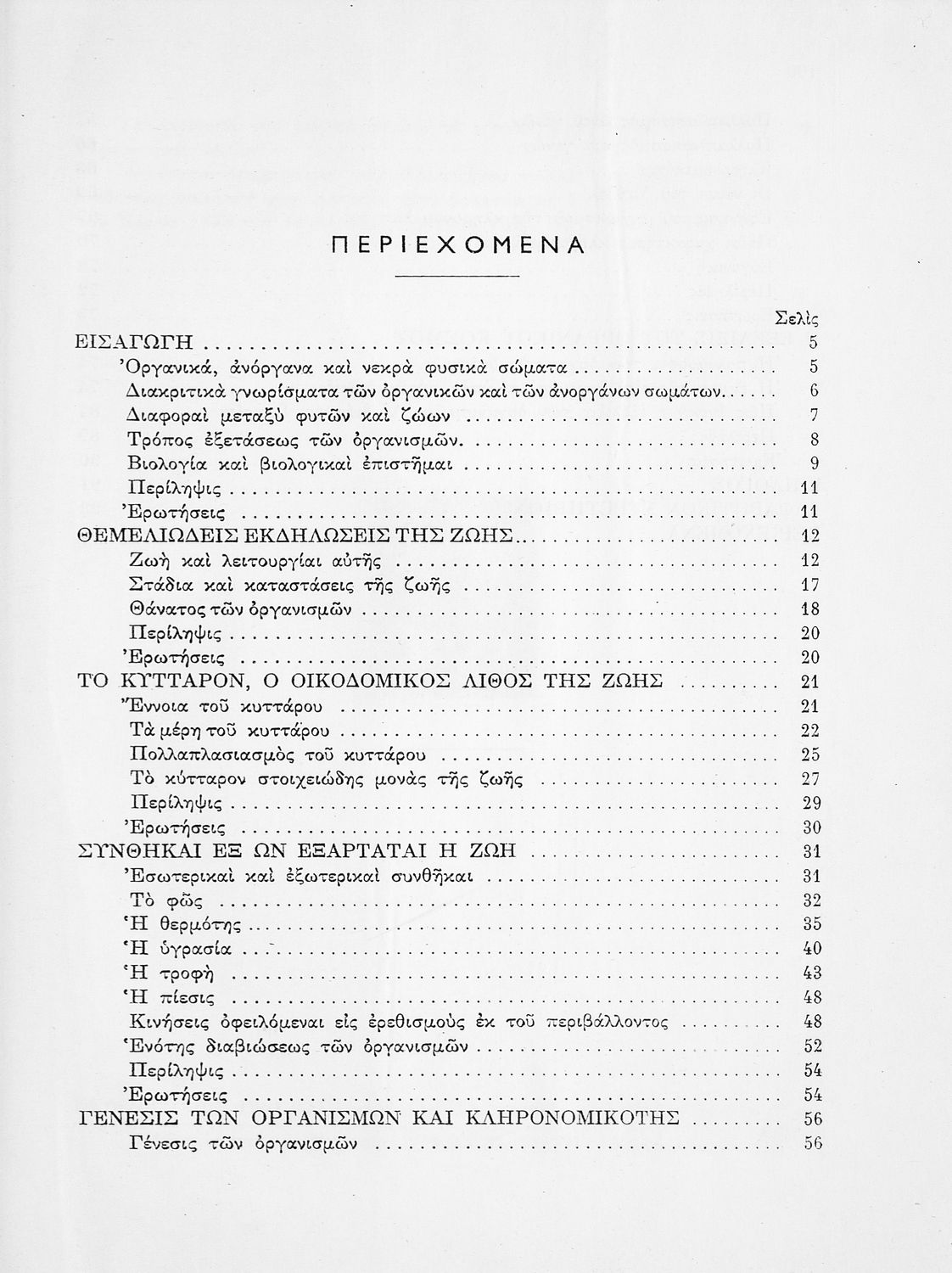 Σχολικό εγχειρίδιο Βιολογίας Δ΄ Γυμνασίου που εστιάζει στις συνθήκες γέννησης, μεταβολής και θανάτου των έμβιων οργανισμών. Ο συγγραφέας ήταν καθηγητής της γενικής Βιολογίας στο Πανεπιστήμιο Αθηνών.