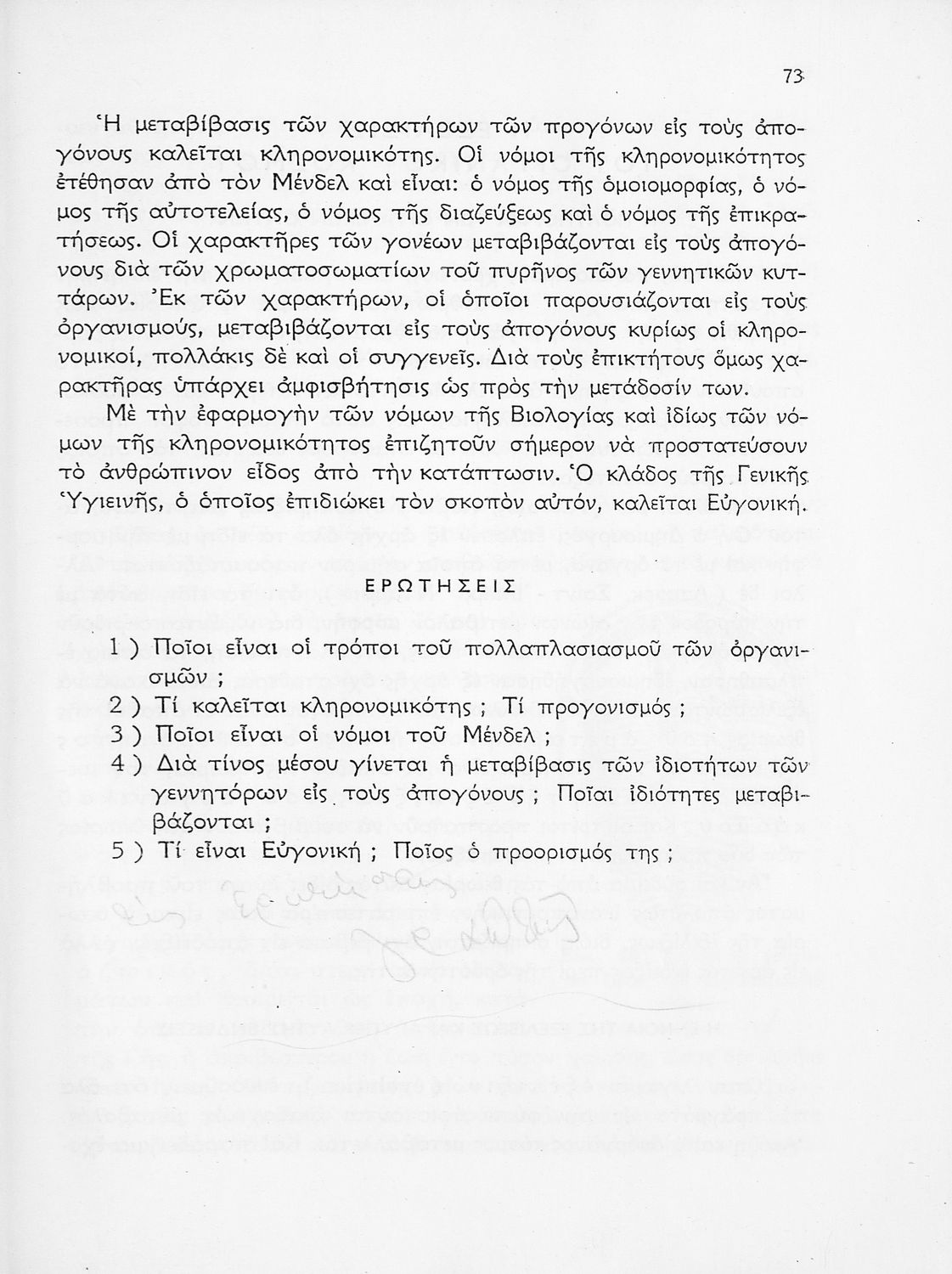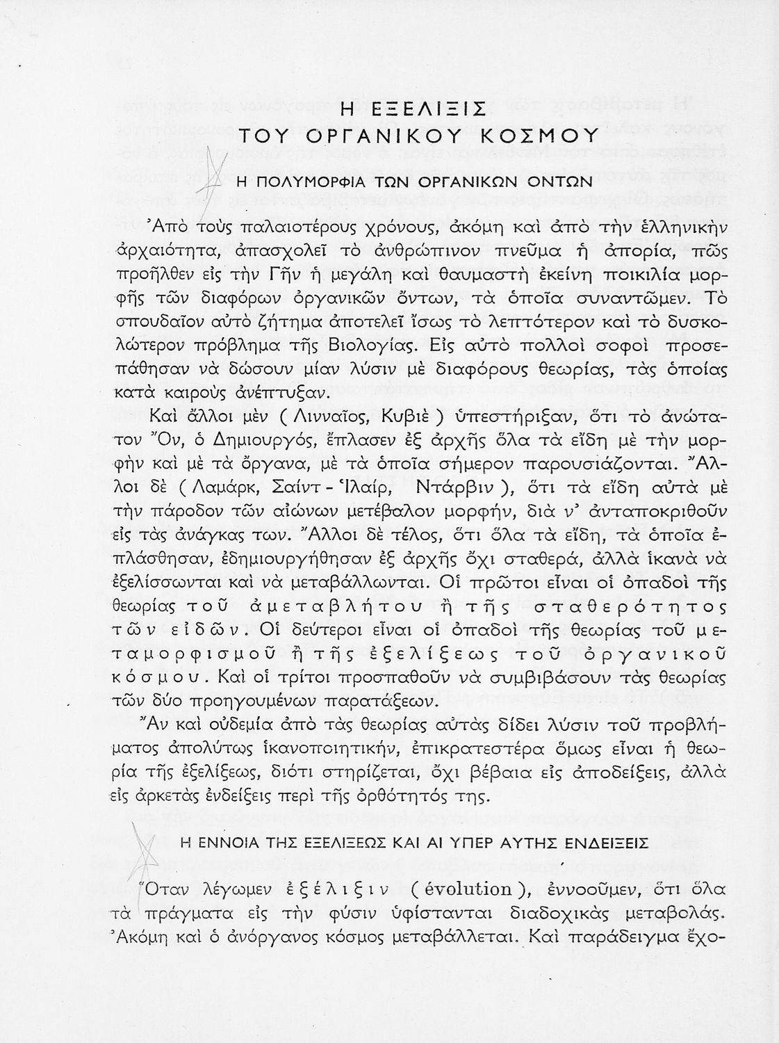 Σχολικό εγχειρίδιο Βιολογίας Δ΄ Γυμνασίου που εστιάζει στις συνθήκες γέννησης, μεταβολής και θανάτου των έμβιων οργανισμών. Ο συγγραφέας ήταν καθηγητής της γενικής Βιολογίας στο Πανεπιστήμιο Αθηνών.