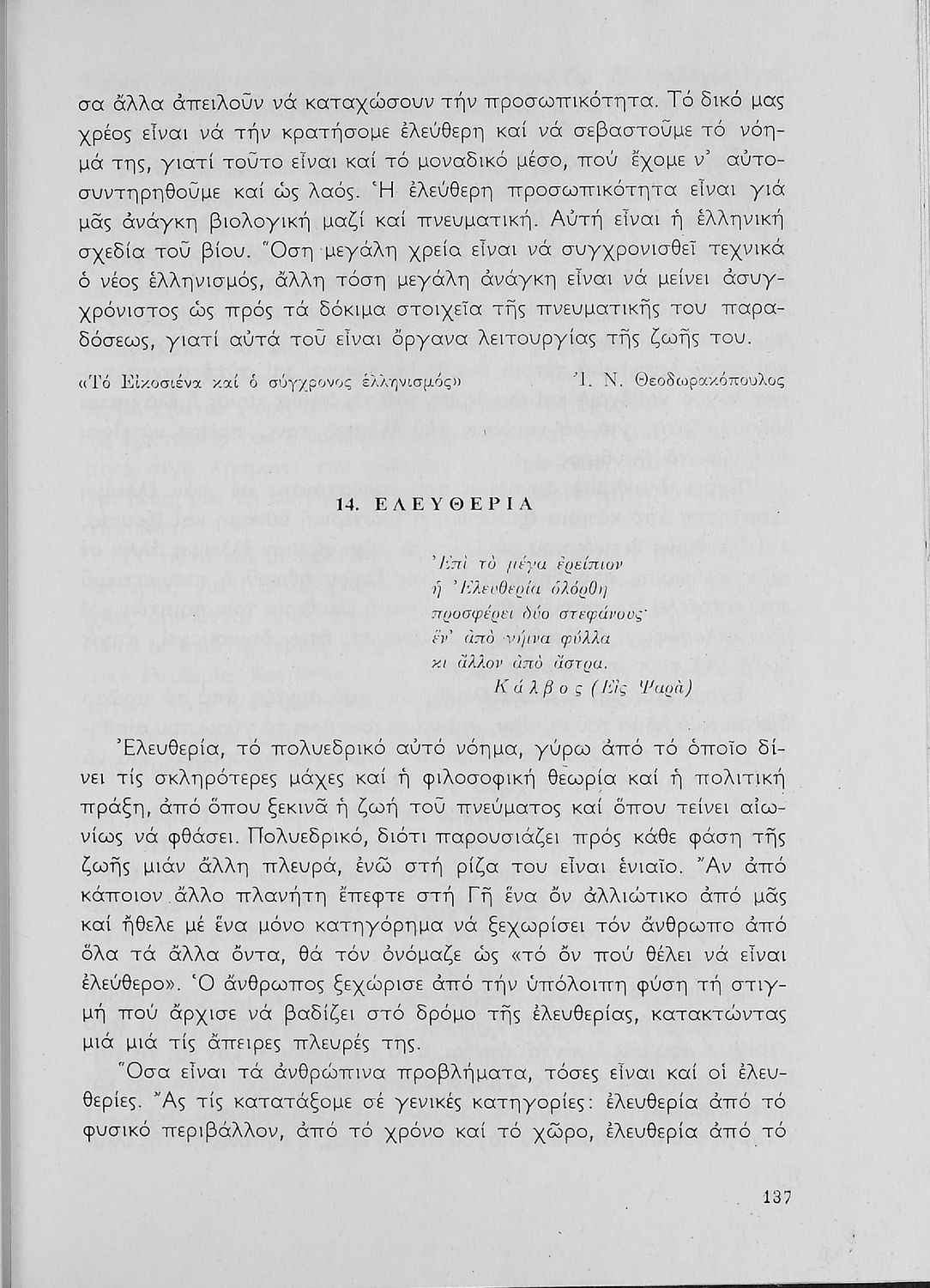 Σχολικό εγχειρίδιο Νέων Ελληνικών Γ' Λυκείου που περιλαμβάνει πεζά και ποιήματα Ελλήνων και ξένων συγγραφέων εμπνευσμένα από τη θρησκευτική παράδοση, την αρχαία και σύγχρονη ελληνική ιστορία, και τις ηθικές ...