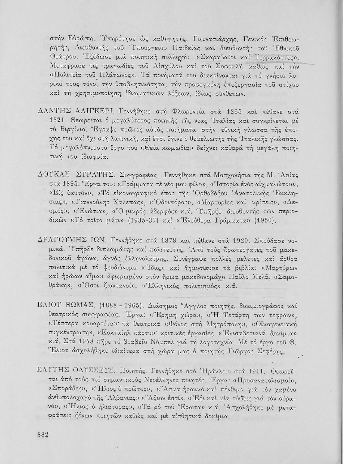 Σχετιζόμενοι όροι:  Λάμπρος, Παπάγος, Σουρής, Έλιοτ, Δάντε