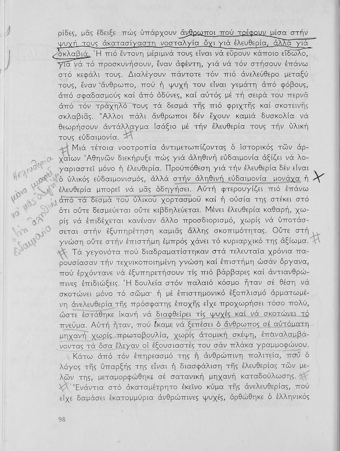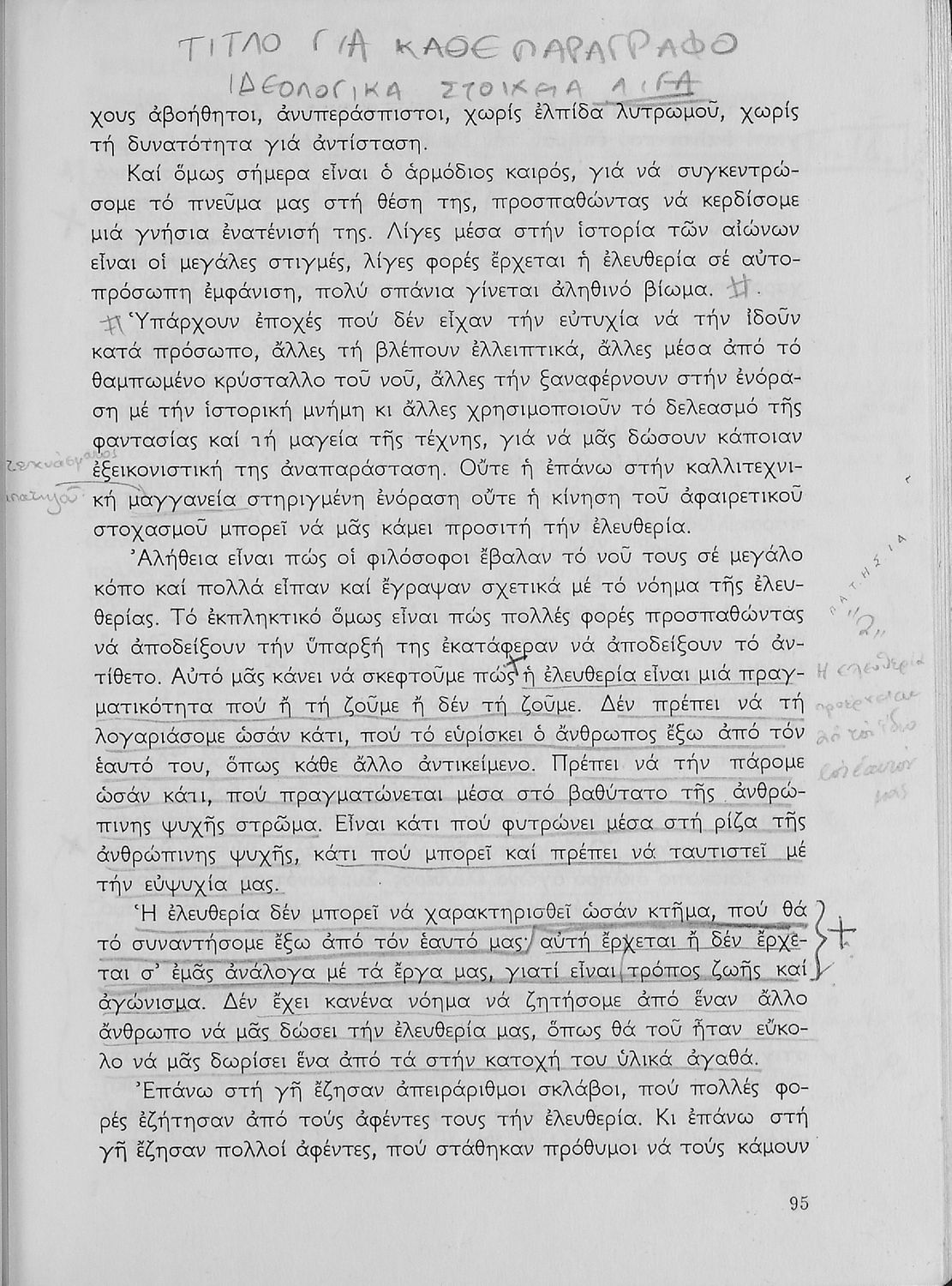 Σχολικό εγχειρίδιο Νέων Ελληνικών ΣΤ΄ Γυμνασίου και Λυκείου που περιλαμβάνει κείμενα Ελλήνων και ξένων συγγραφέων με θέματα από την σύγχρονη ελληνική ιστορία και την οικογενειακή και θρησκευτική ζωή, και ...
