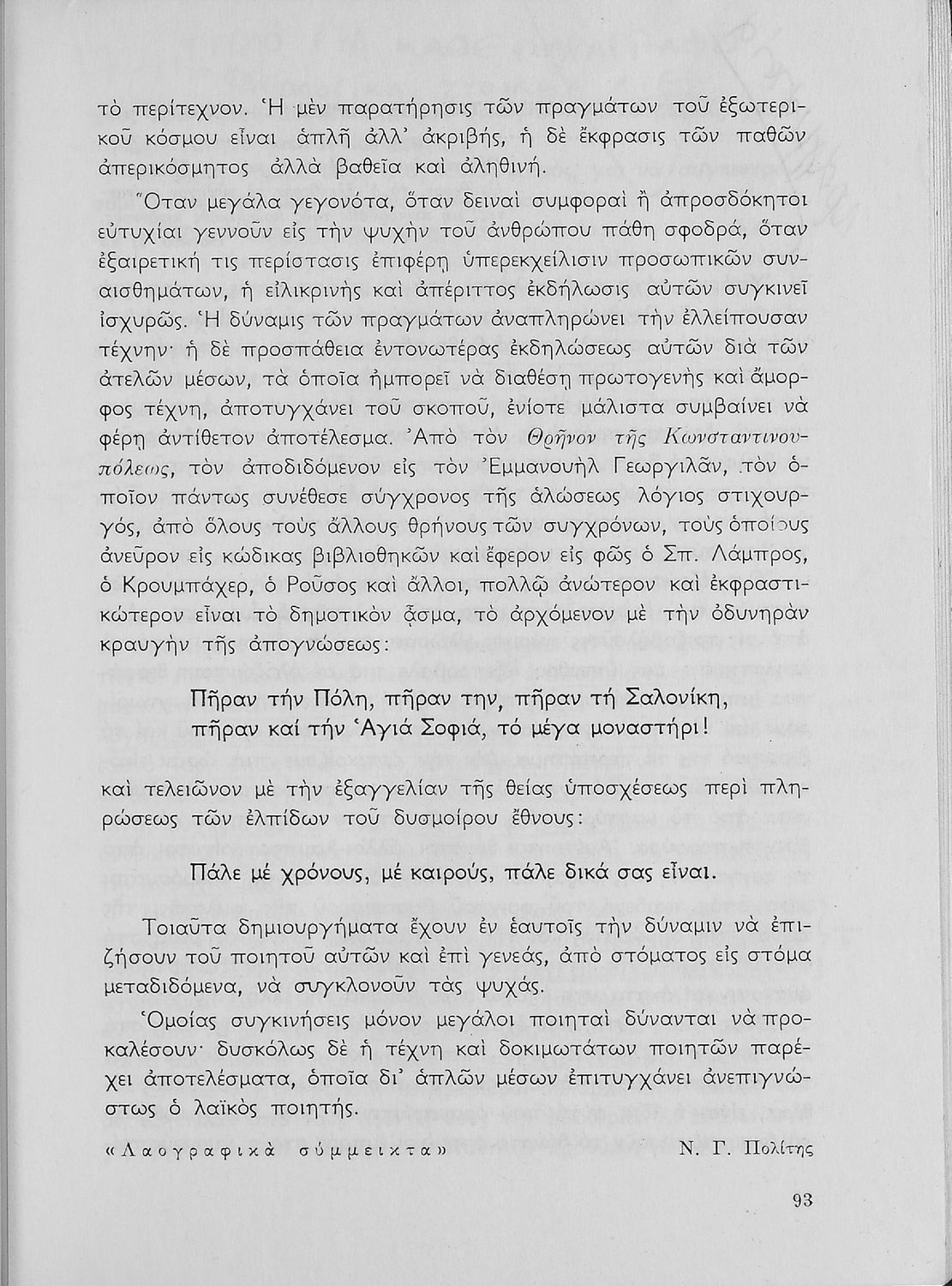 Σχολικό εγχειρίδιο Νέων Ελληνικών Γ' Ελληνικού Σχολείου που περιλαμβάνει ποιήματα και πεζά Ελλήνων συγγραφέων και δημοτικά τραγούδια εμπνευσμένα από την σύγχρονη ελληνική ιστορία, τη βυζαντινή ιστορία, την ...