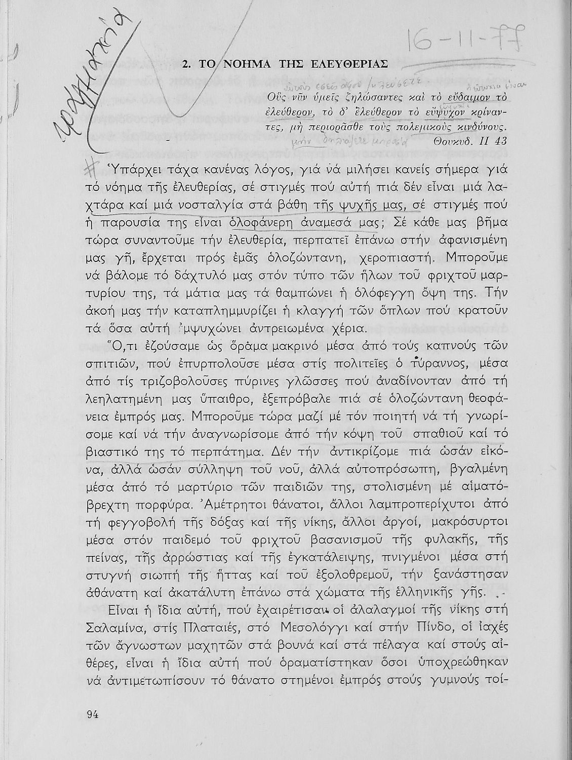 Σχολικό εγχειρίδιο Νέων Ελληνικών για τις Α΄ και Β΄ Λυκείου που περιέχει πεζά και ποιήματα Ελλήνων και ξένων συγγραφέων εμπνευσμένα από την σύγχρονη ελληνική ιστορία, τη θρησκευτική παράδοση και την ελληνική ...
