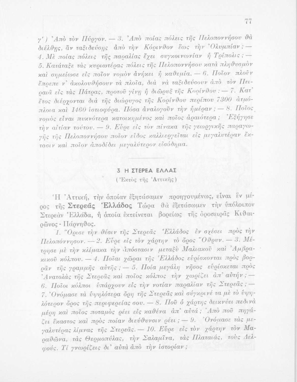 Σχολικό εγχειρίδιο Γεωγραφίας Α' Γυμνασίου που εξετάζει την Ελλάδα ανά διαμέρισμα και νομό από γεωφυσική, οικονομική και πολιτική άποψη.