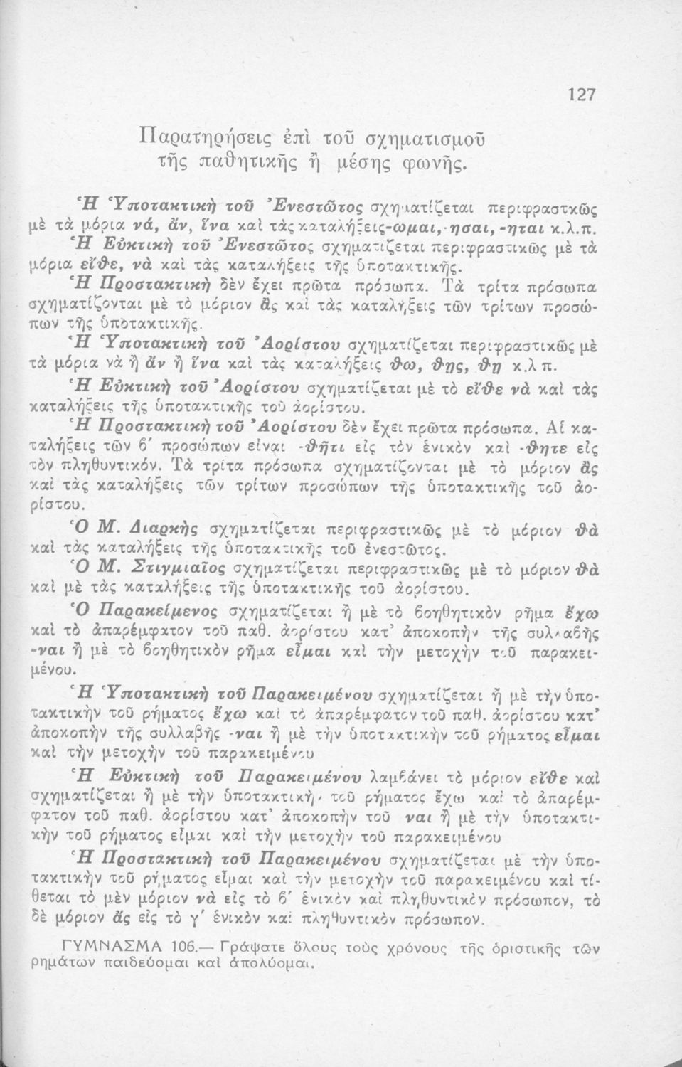 Μαθητικό βοήθημα Γραμματικής για τους μαθητές της Ε΄ και ΣΤ΄ τάξης του Δημοτικού. Περιέχει τη διδασκαλία της γραμματικής της καθαρεύουσας.