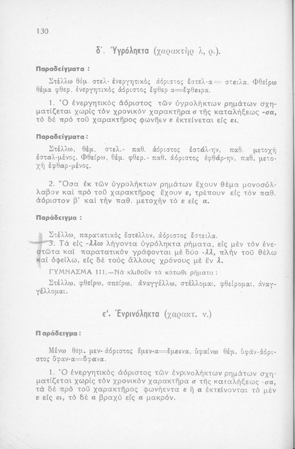 Σχολικό εγχειρίδιο γραμματικής για τους μαθητές της Ε΄ και ΣΤ΄ τάξης του Δημοτικού. Περιέχει τη διδασκαλία της γραμματικής της καθαρεύουσας με κανόνες και παραδείγματα.