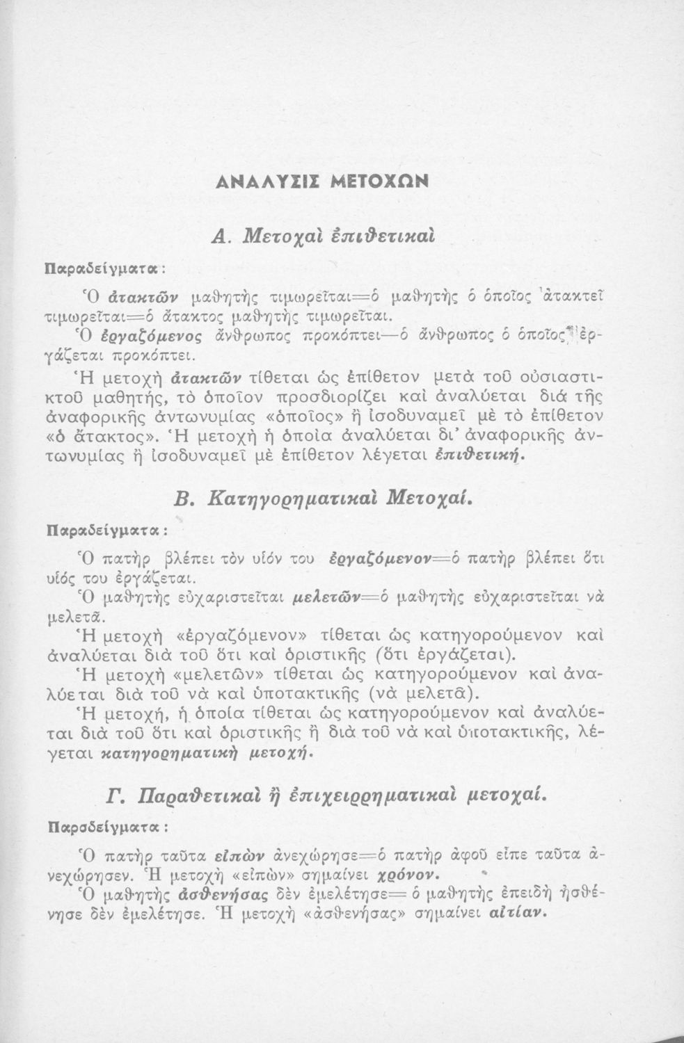 Μαθητικό βοήθημα Γραμματικής για τους μαθητές της Ε΄ και ΣΤ΄ τάξης του Δημοτικού. Περιέχει τη διδασκαλία της γραμματικής της καθαρεύουσας.
