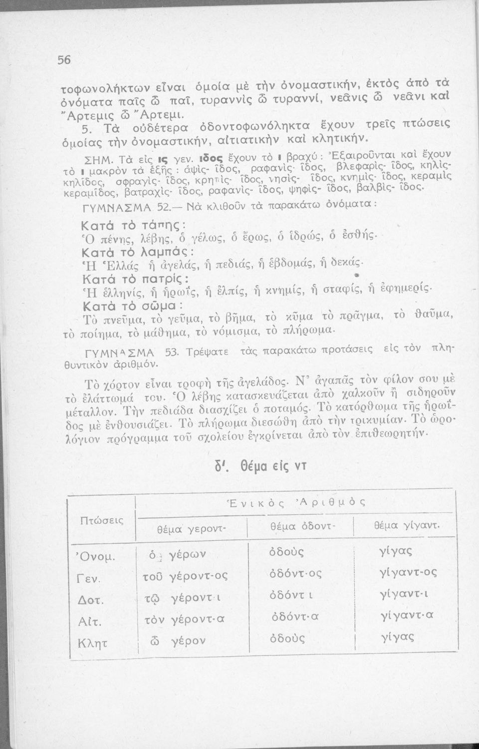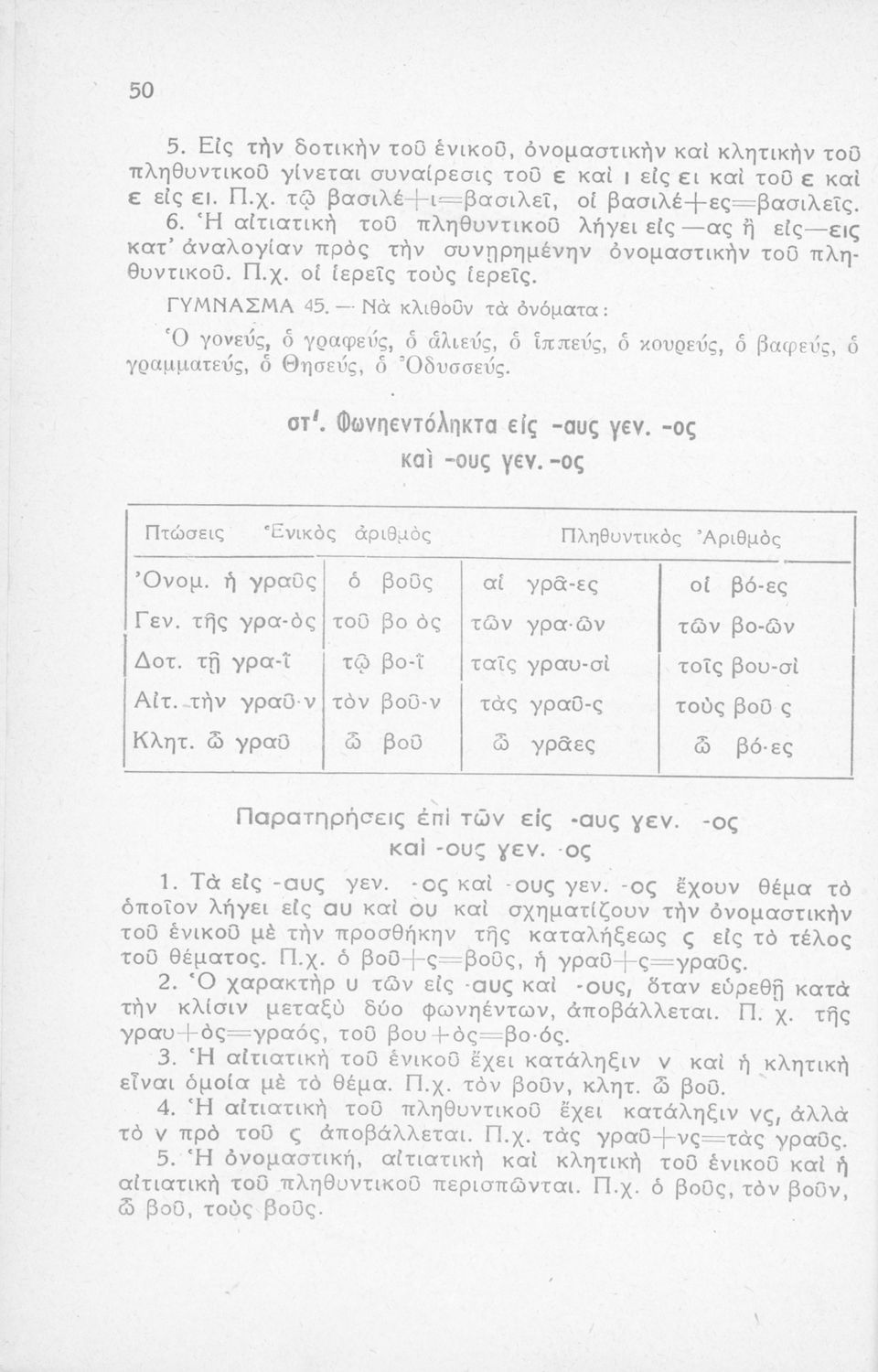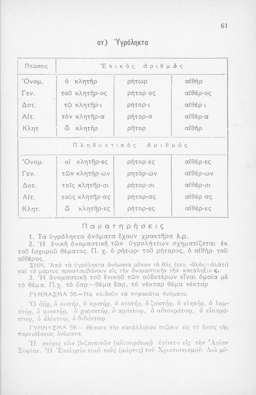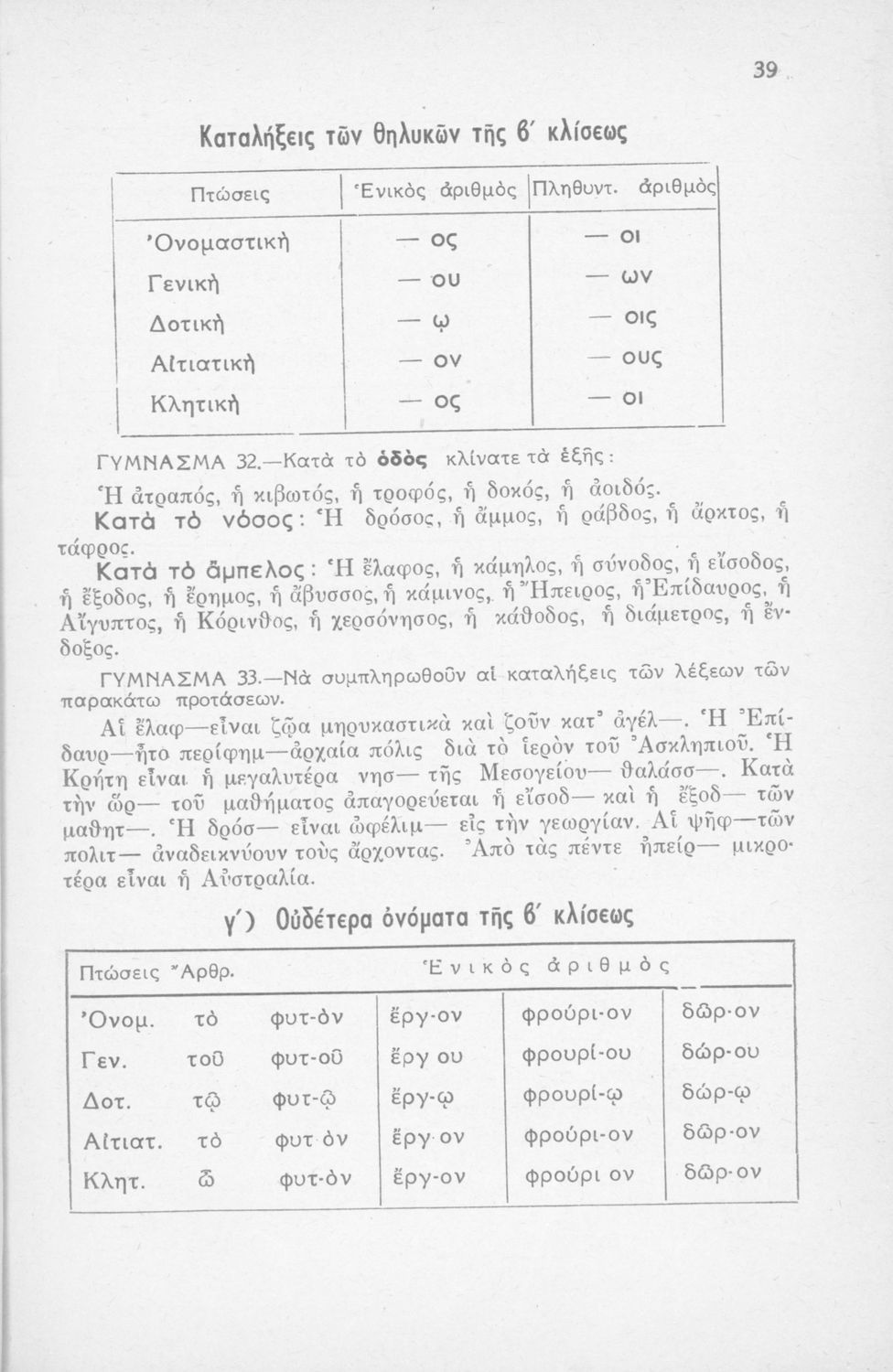 Μαθητικό βοήθημα Γραμματικής για τους μαθητές της Ε΄ και ΣΤ΄ τάξης του Δημοτικού. Περιέχει τη διδασκαλία της γραμματικής της καθαρεύουσας.