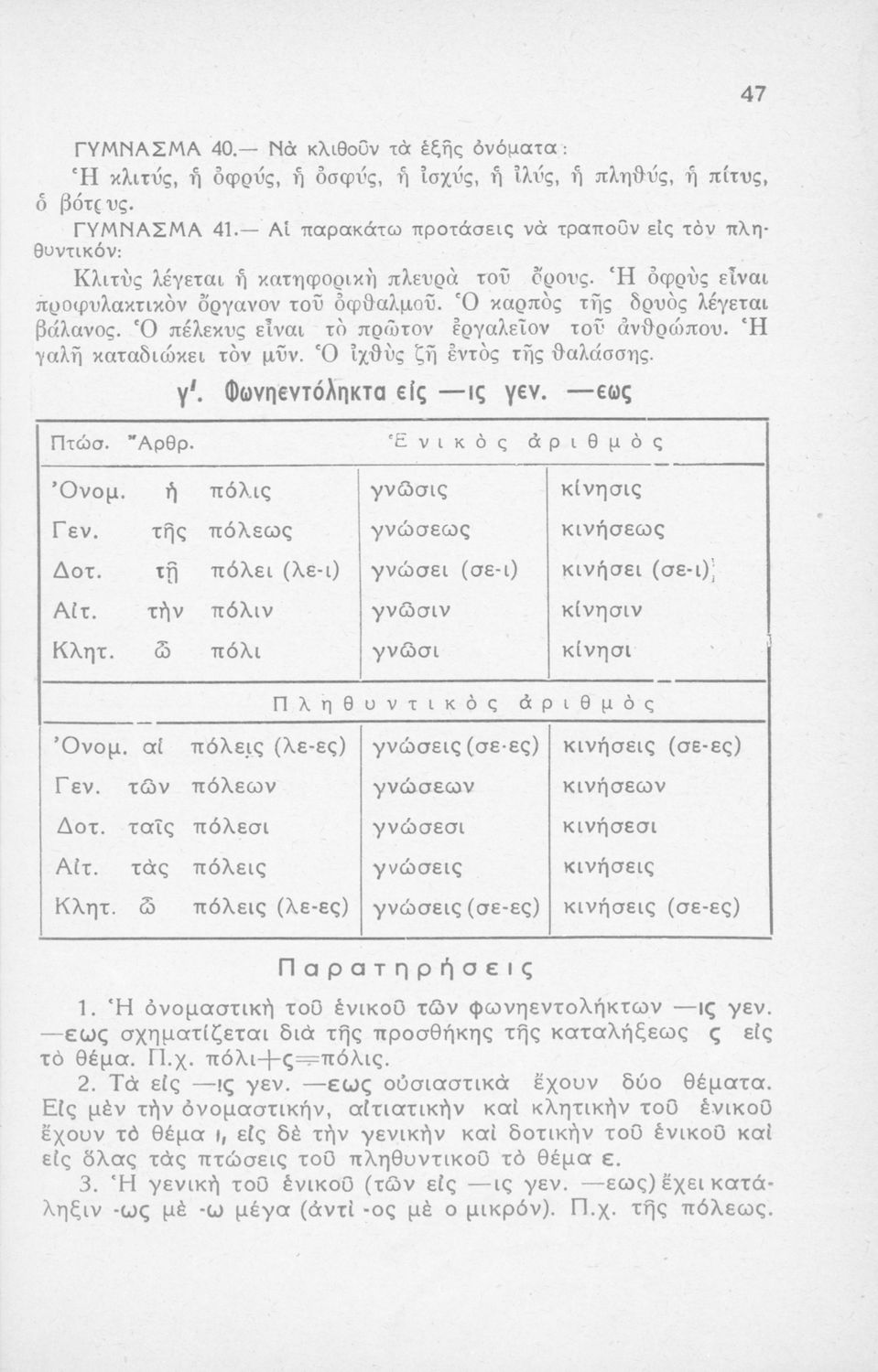 Σχετιζόμενοι όροι:  πτώσεις, ουσιαστικά, επίθετα, ρήματα