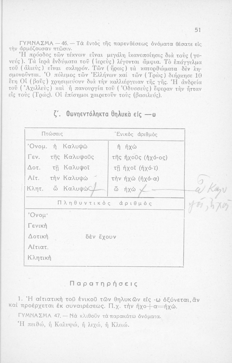 Μαθητικό βοήθημα Ε΄ και ΣΤ΄ Δημοτικού που περιέχει τη γραμματικής της απλής Καθαρεύουσας.