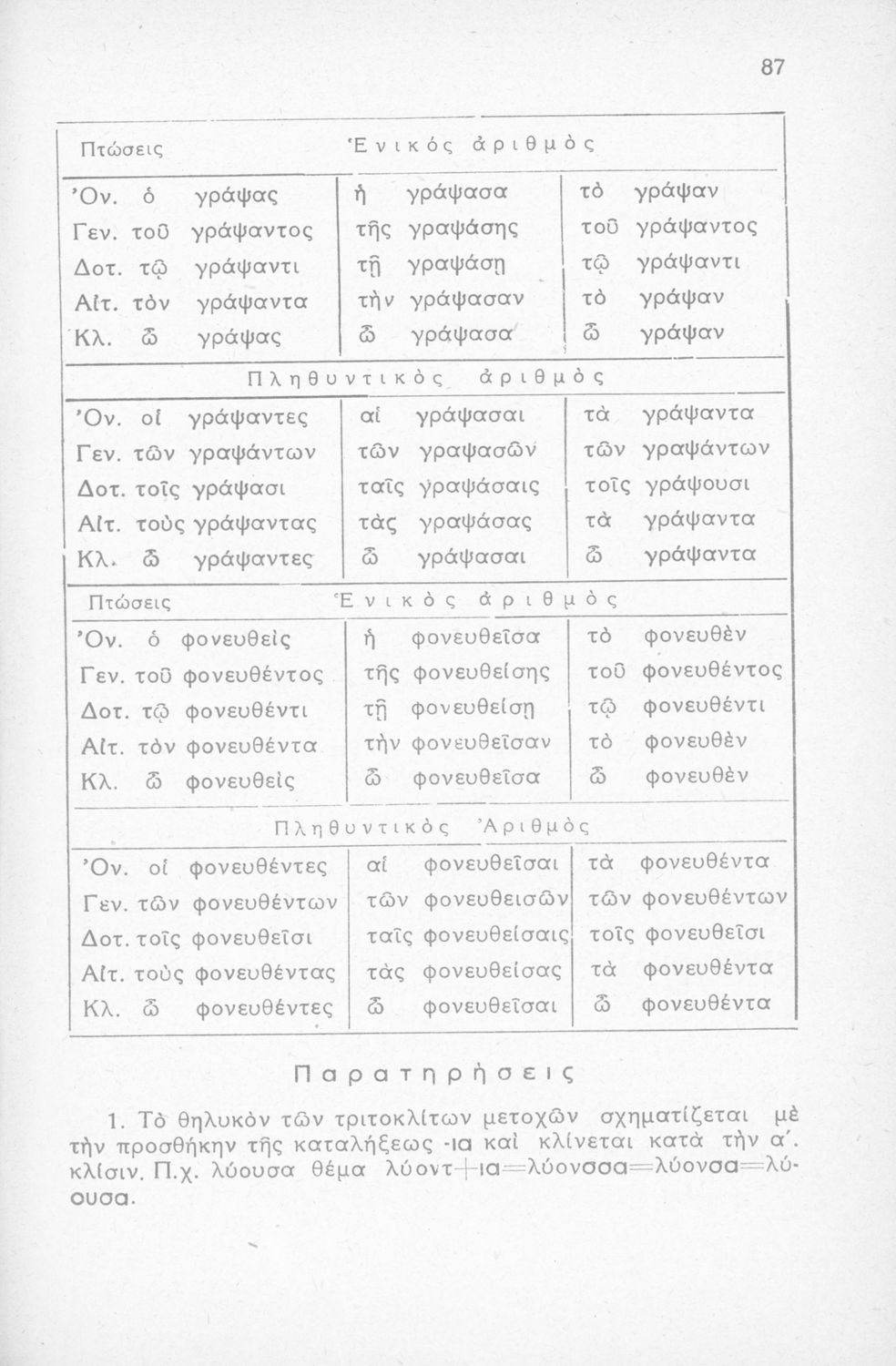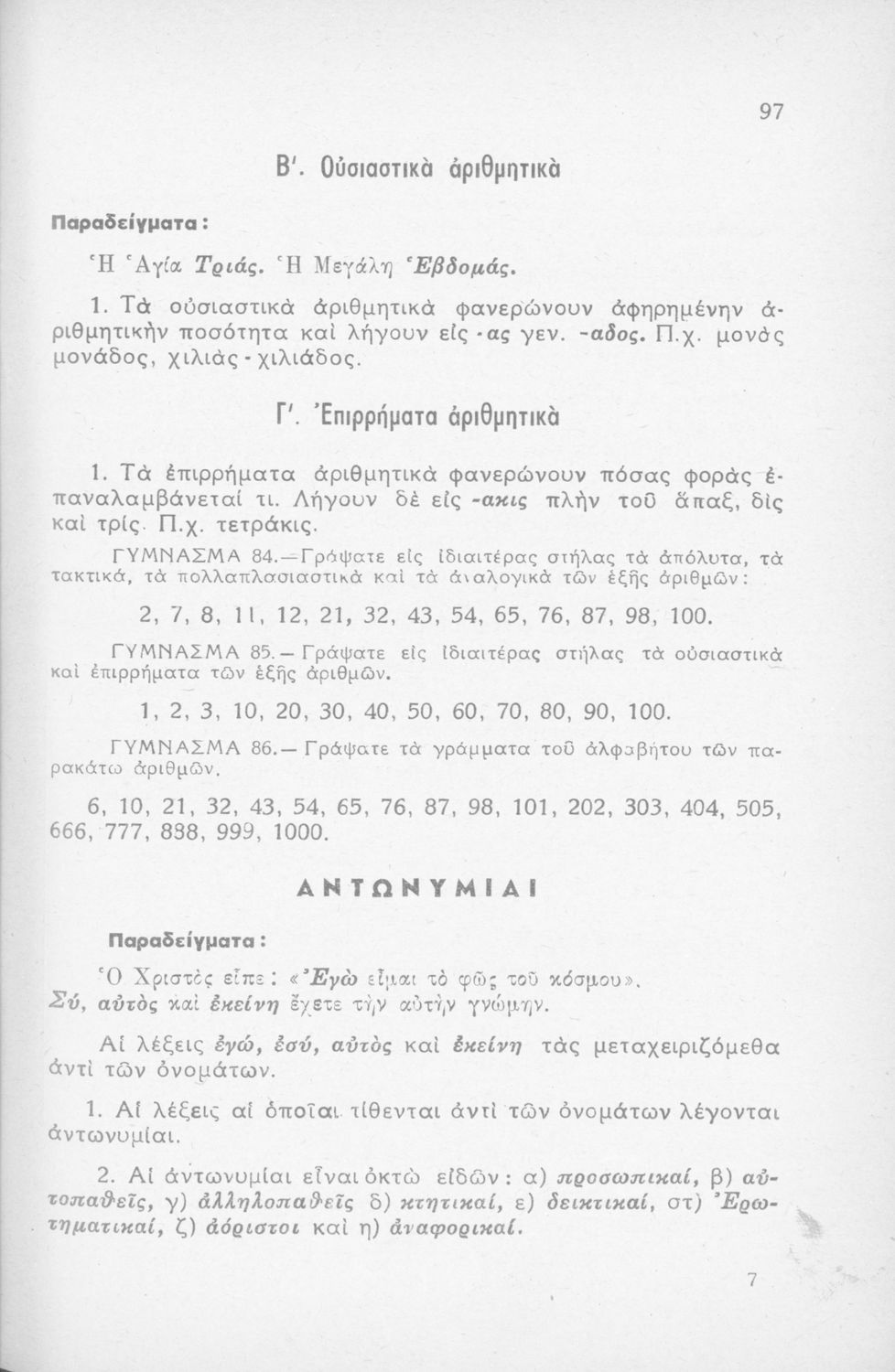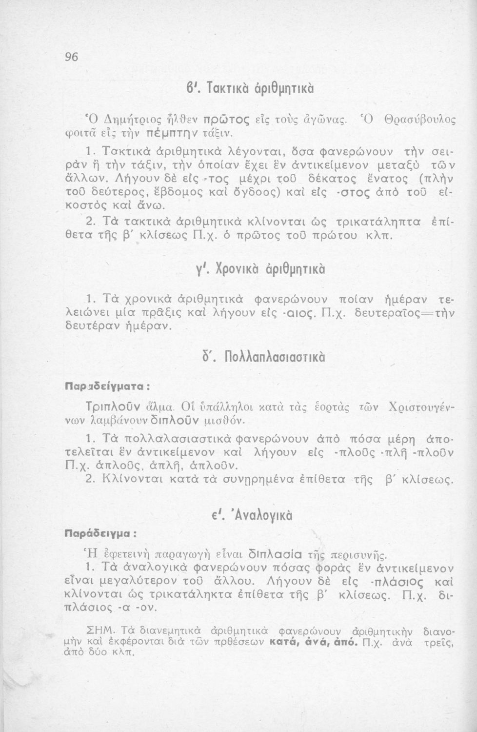 Μαθητικό βοήθημα Γλώσσας ΣΤ΄ Δημοτικού που περιλαμβάνει τους κανόνες γραμματικής της καθαρεύουσας.