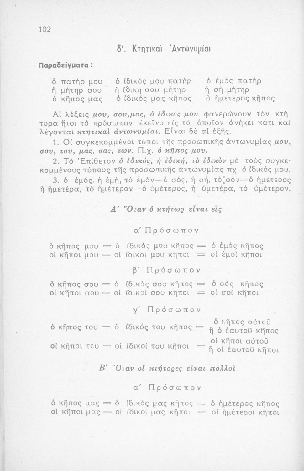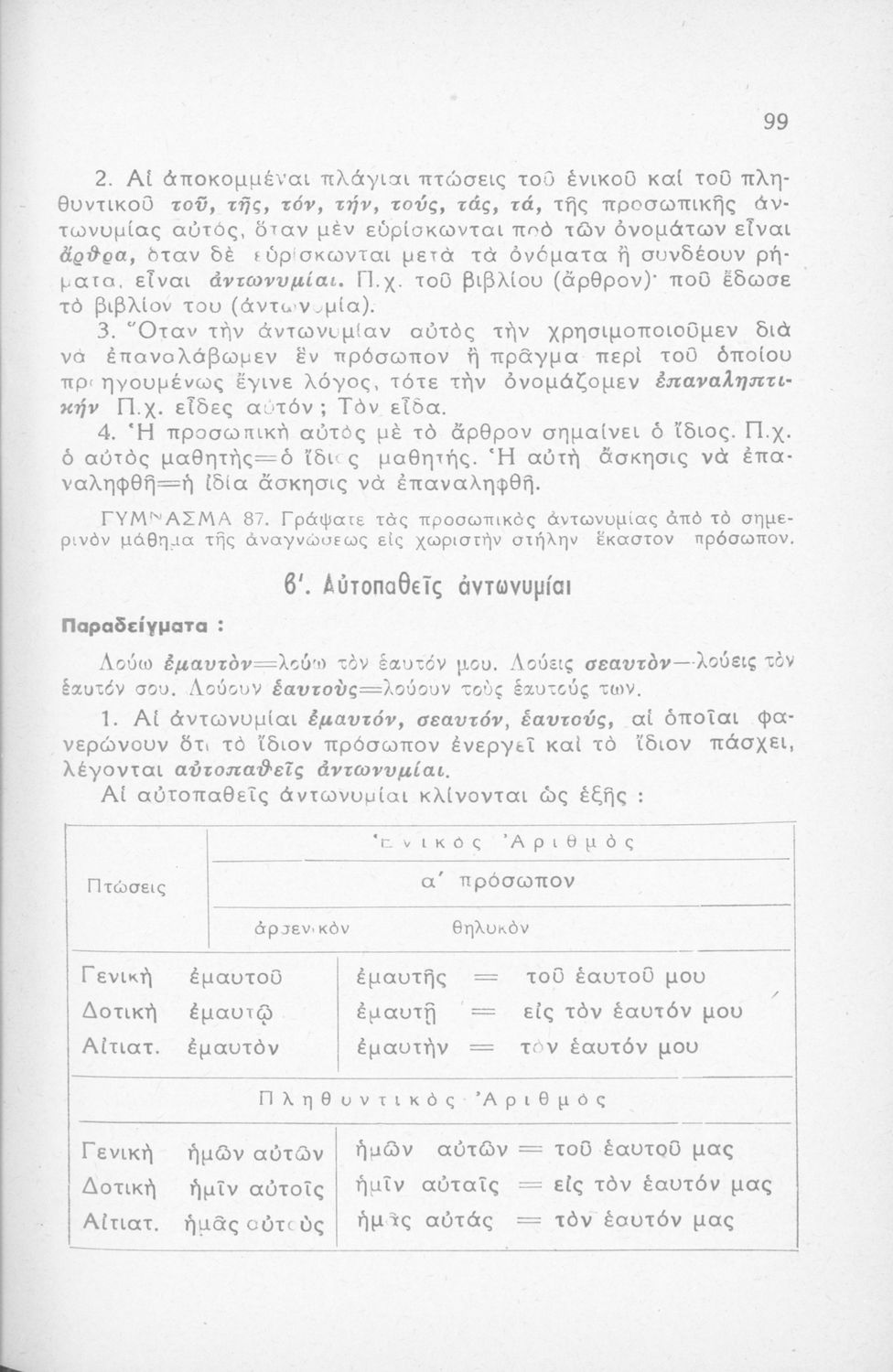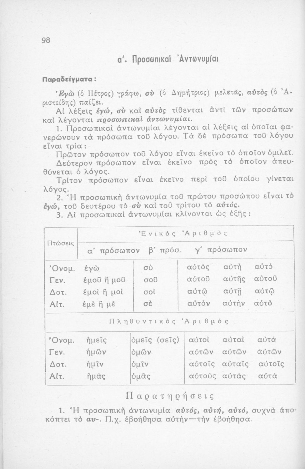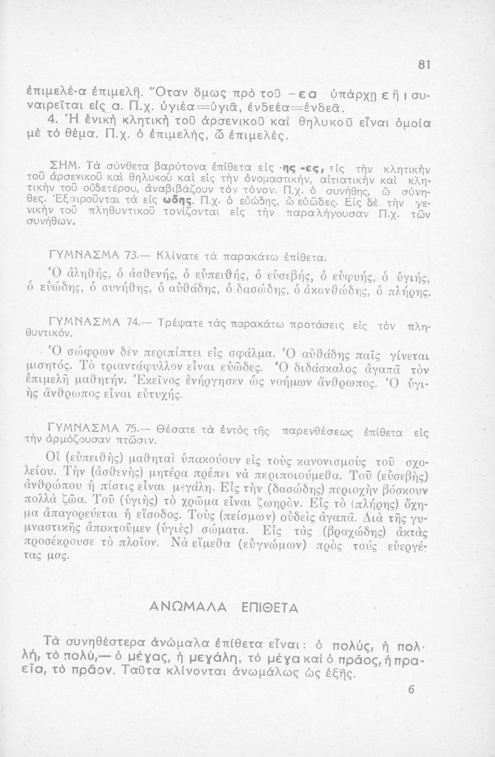 Μαθητικό βοήθημα Γλώσσας ΣΤ΄ Δημοτικού που περιλαμβάνει τους κανόνες γραμματικής της καθαρεύουσας.