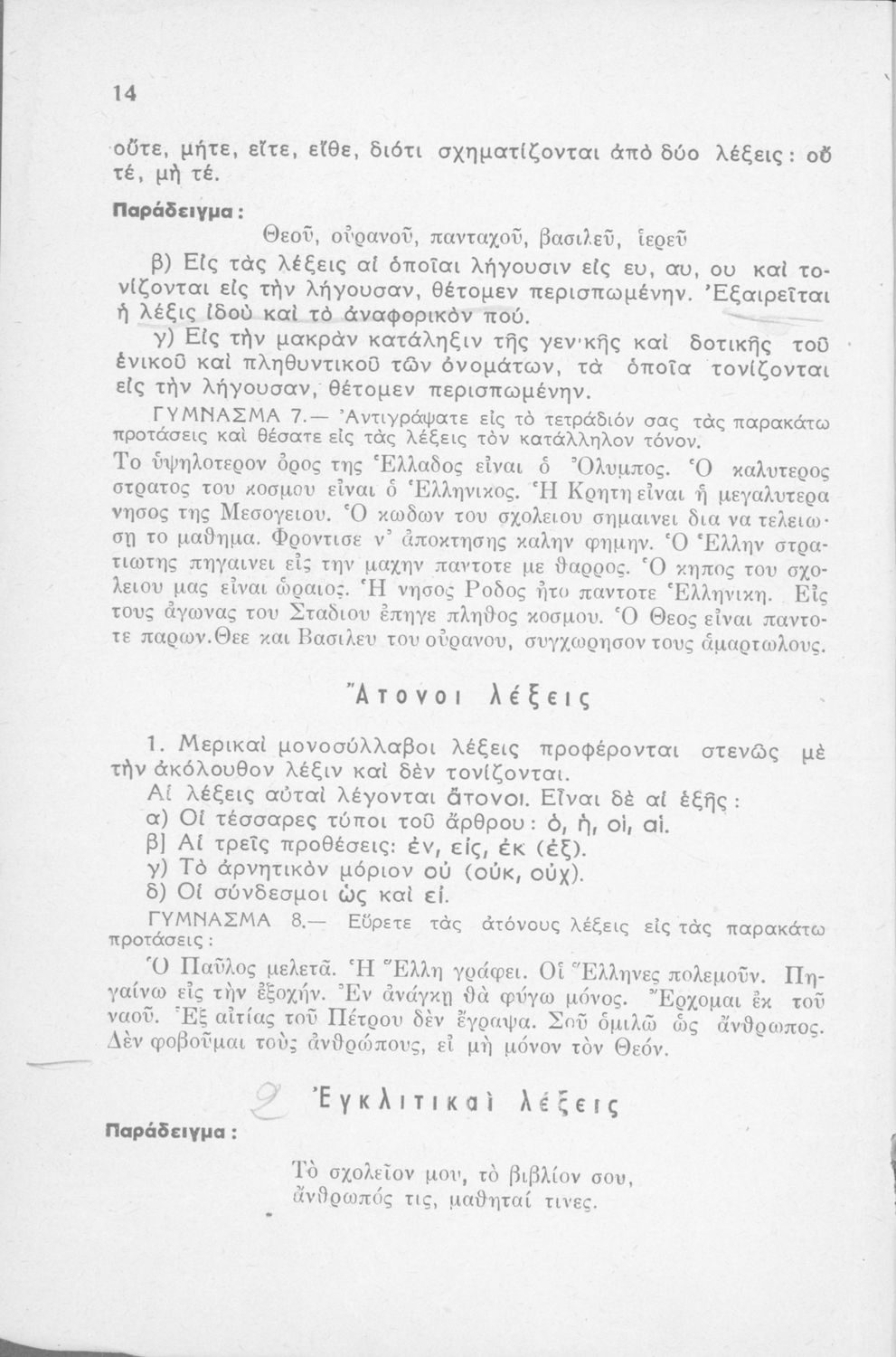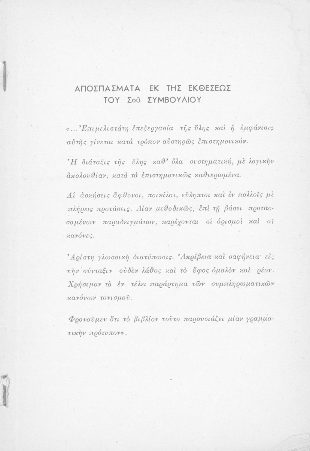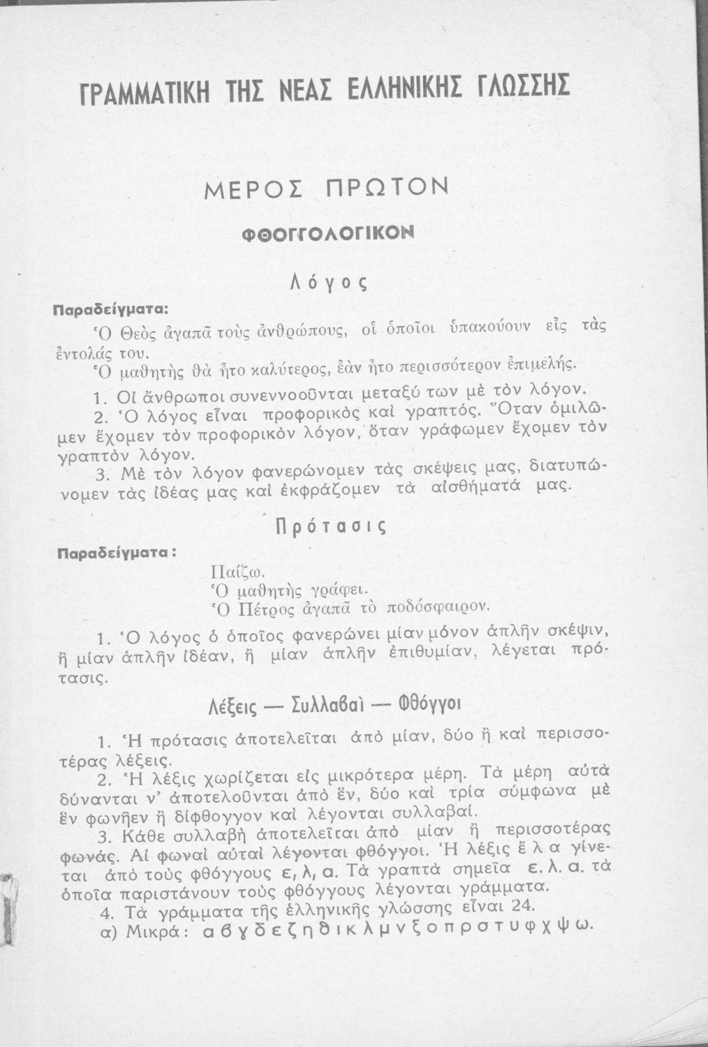 Μαθητικό βοήθημα Γλώσσας ΣΤ΄ Δημοτικού που περιλαμβάνει τους κανόνες γραμματικής της καθαρεύουσας.